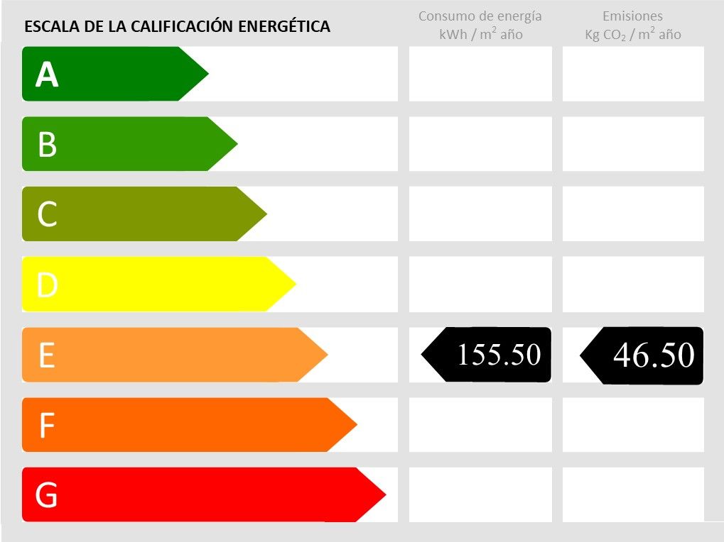 • CO2 emission: 46.5 kg/m2 • CO2 Emission Rating: E • Energy efficiency rating: E