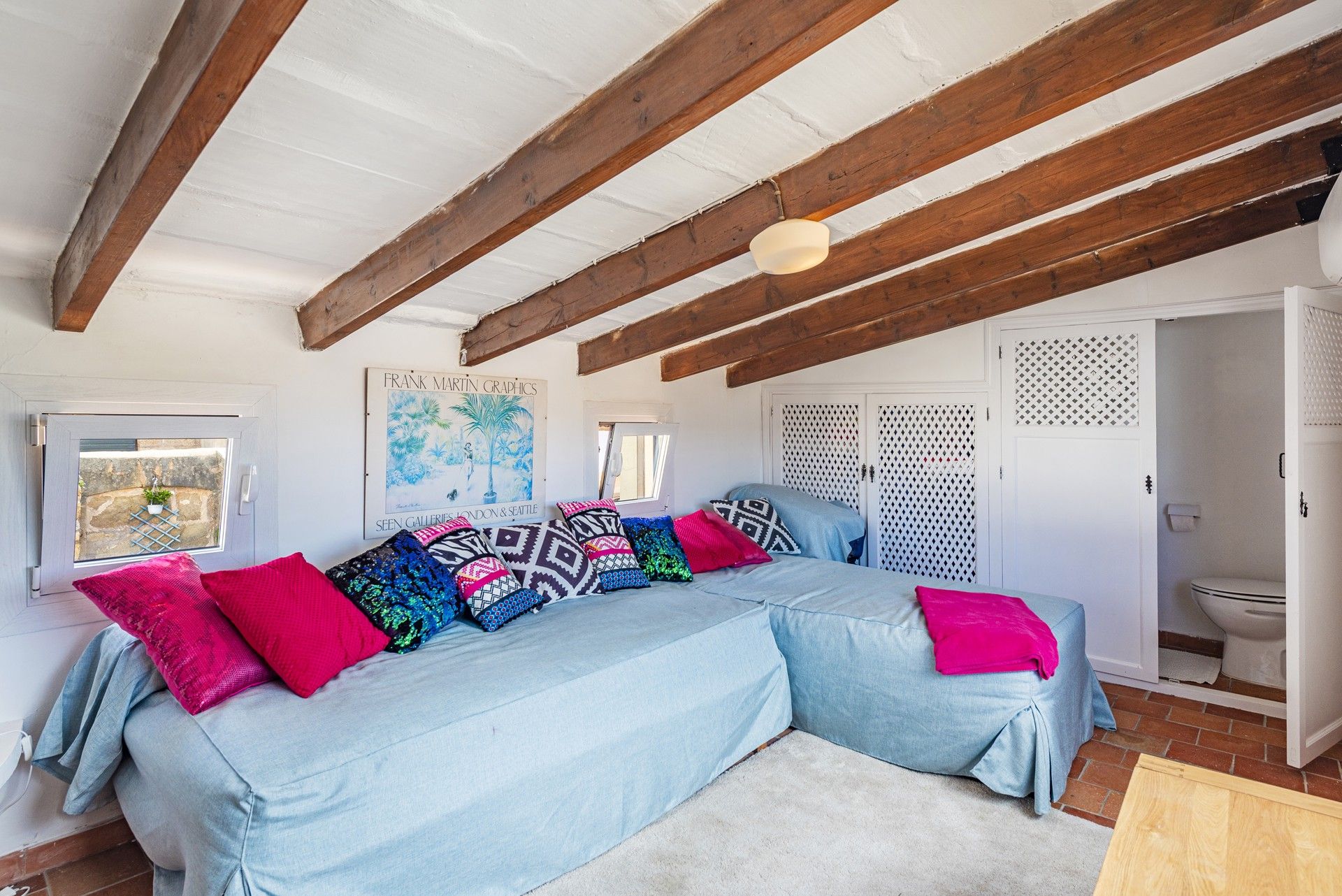 The first floor features a spacious master bedroom with an en-suite bathroom and private access to a fabulous terrace. On the same floor, there is a second bedroom, also with its own en-suite bathroom. Finally, on the second floor, there is a third room with a private toilet and breathtaking views of Calvario and the Tramuntana mountains—an ideal choice for those seeking an inspiring workspace.