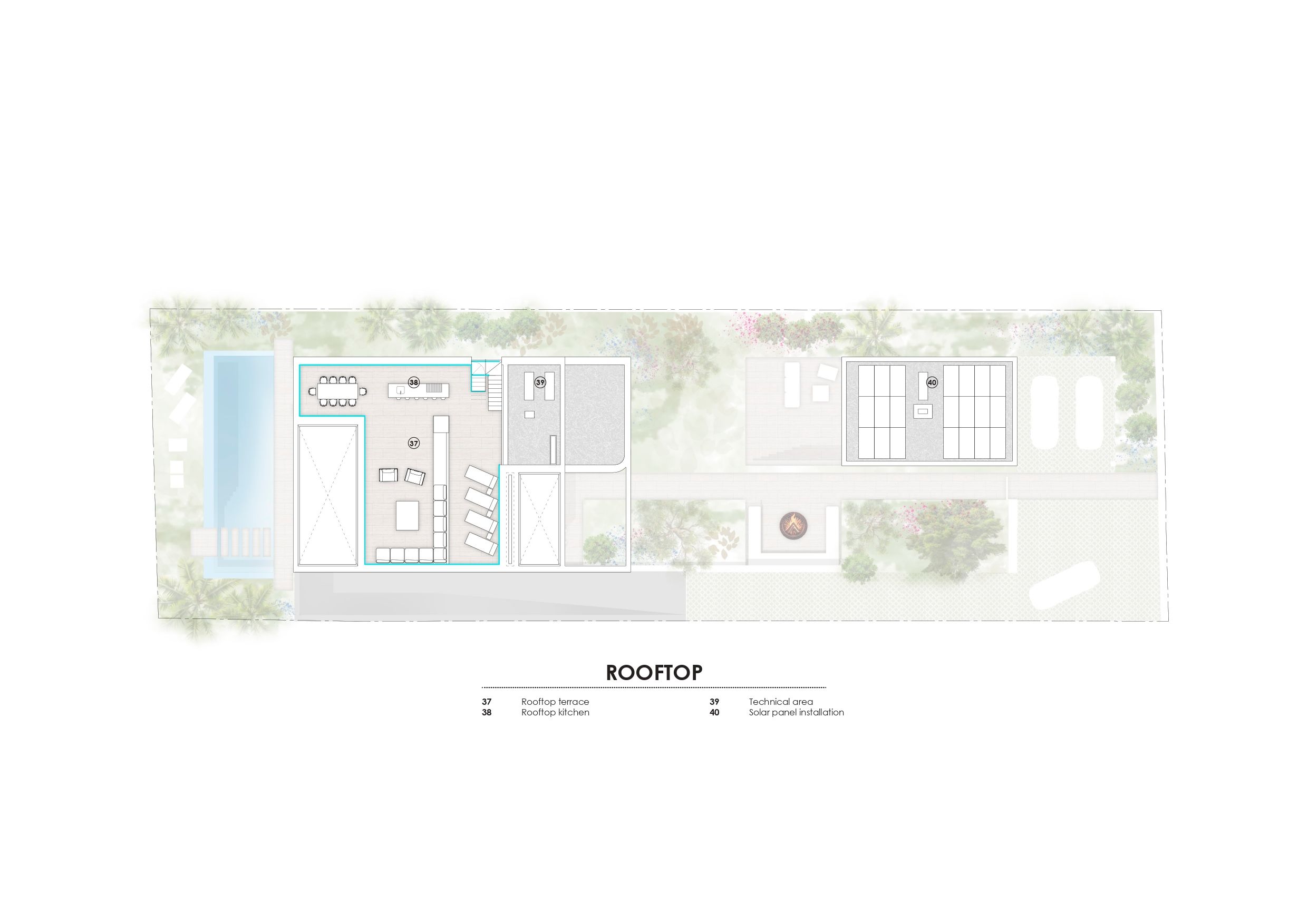 Outside, a beautifully landscaped Mediterranean garden, a private swimming pool, and a rooftop terrace with a barbecue area invite you to enjoy the exceptional climate and surroundings.