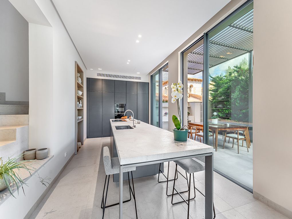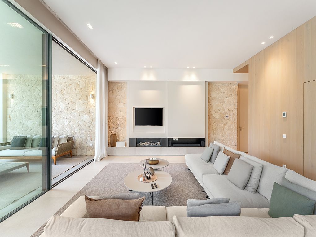 Mar i Cel (Sea and Sky) is much more than just a house – it is a way of life. An exclusive project in Cala Figuera, where craftsmanship, nature, and luxury unite in perfect harmony to create a true masterpiece of design and authenticity. Every detail has been crafted with utmost care to offer comfort, quality, and beauty in perfect harmony with the surroundings. Inspired by craftsmanship, nature, and authenticity, Mar i Cel redefines the concept of contemporary Mediterranean living. The solid oak floors in the bedrooms, walls and ceilings painted with lime paint, and hand-crafted natural stone floors give each room a unique sense of warmth and purity. The luxury kitchen, equipped with the latest appliances, combines functionality and design. The ICONICO fixtures and handcrafted cabinetry with frameless doors and magnetic closures reflect the attention to detail that characterizes the entire house. The double glazing with air chamber, tilt and slide windows with concealed profiles, as well as the traditional brick construction, guarantee excellent thermal and sound insulation as well as maximum durability. An internal elevator conveniently connects the three floors of the house, ensuring maximum comfort. Outside, an outdoor kitchen with a barbecue area invites you to social moments, while the saltwater pool perfectly integrates into the natural surroundings. The finely crafted plaster surfaces and the Mortex coating in the bathrooms and TV area lend the interior structure, elegance, and a modern character. Mar i Cel is the result of a vision: to create a home that breathes craftsmanship, authenticity, and natural luxury – in one of the most beautiful places in Mallorca. And all this is crowned by a breathtaking sea view from the rooftop terrace, equipped with a whirlpool, gym, and sauna – a place where you can fully enjoy our coveted Mediterranean lifestyle.