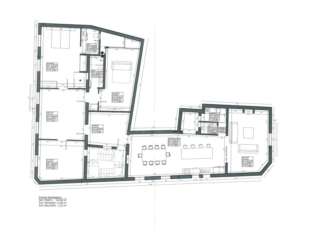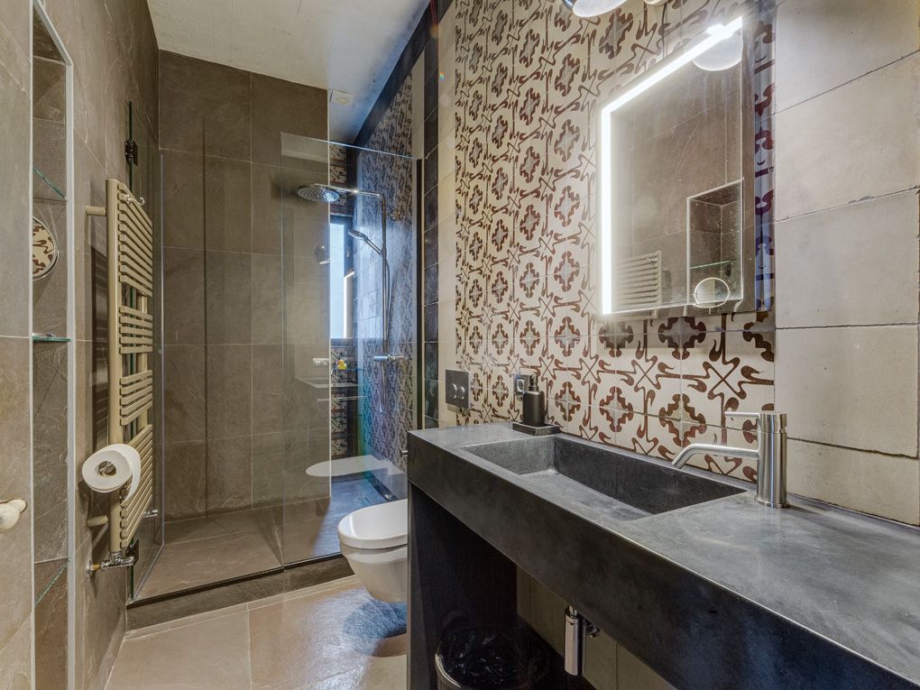 Type: Penthouse • Region: Palma • Construction year: 1900 • Last restoration: 2016 • Total surface: 218 ㎡ • Bedrooms: 3 • Bathrooms: 3 • Living space: 215 ㎡ • Balconies: 2 • Kitchen • Fireplace • Guest toilet • Heating: Central heating, Central air-conditioned • Heating type: Gas • Floor type: Tiles, Stone