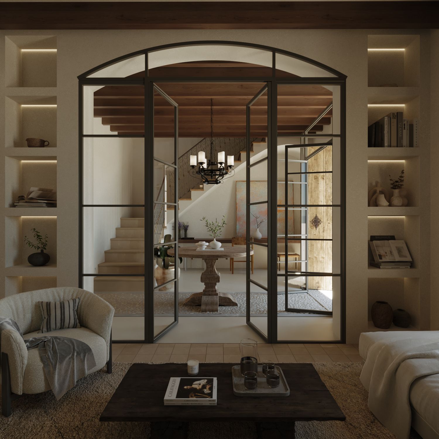 The first floor is planned to feature two generous bedrooms, each with its own en-suite bathroom. The master suite boasts a lovely terrace with direct access to the patio, while a second sitting room—perfect as a reading nook, TV lounge, or office—along with a laundry room, completes this level.