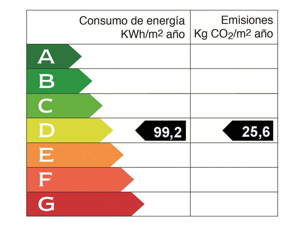 Year of construction: 1998 • Energy consumption value: 99.2 kWh/(m2*a) • CO2 emission: 25.6 kg/m2 • CO2 Emission Rating: D • Energy efficiency rating: D