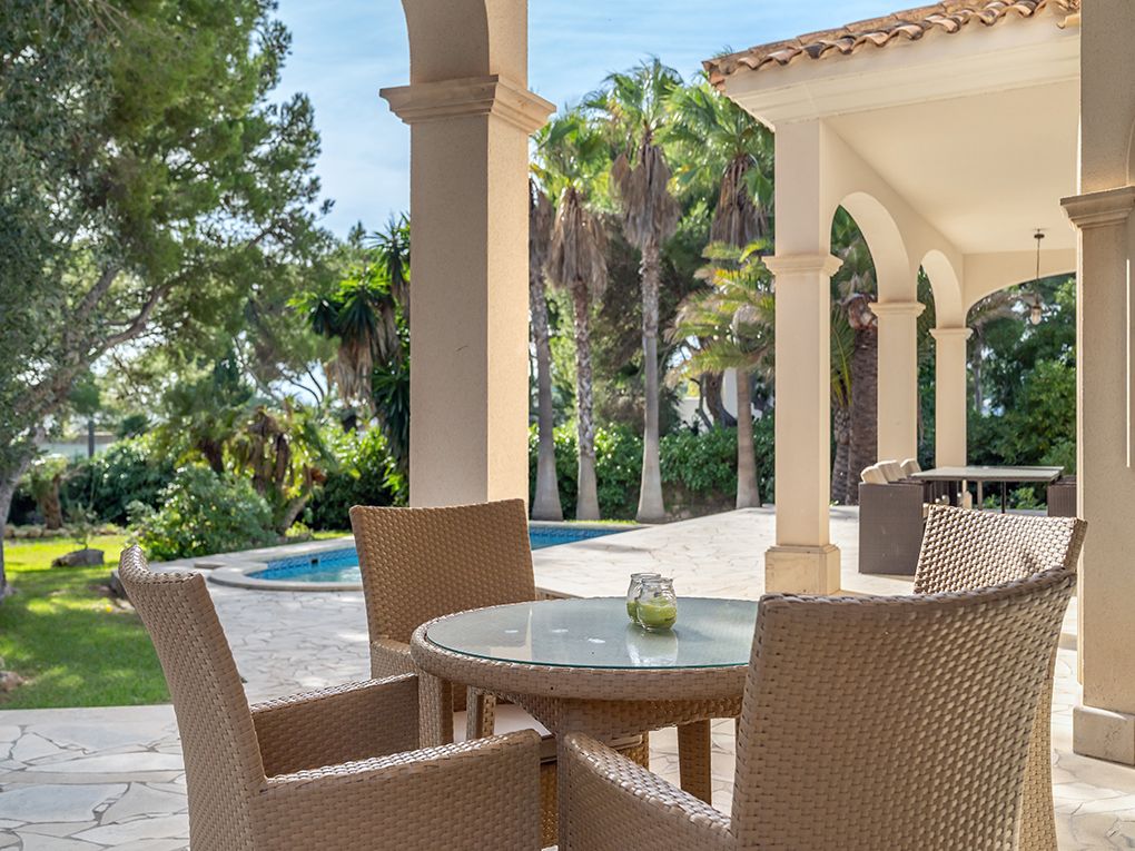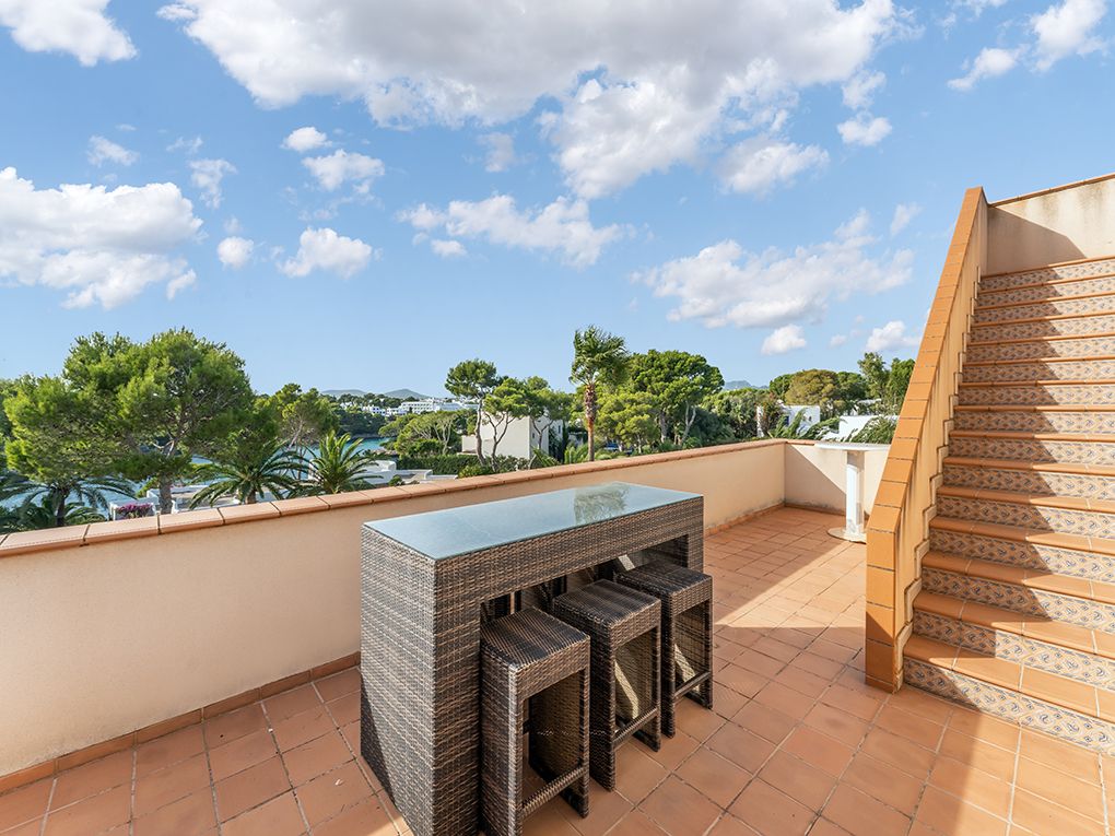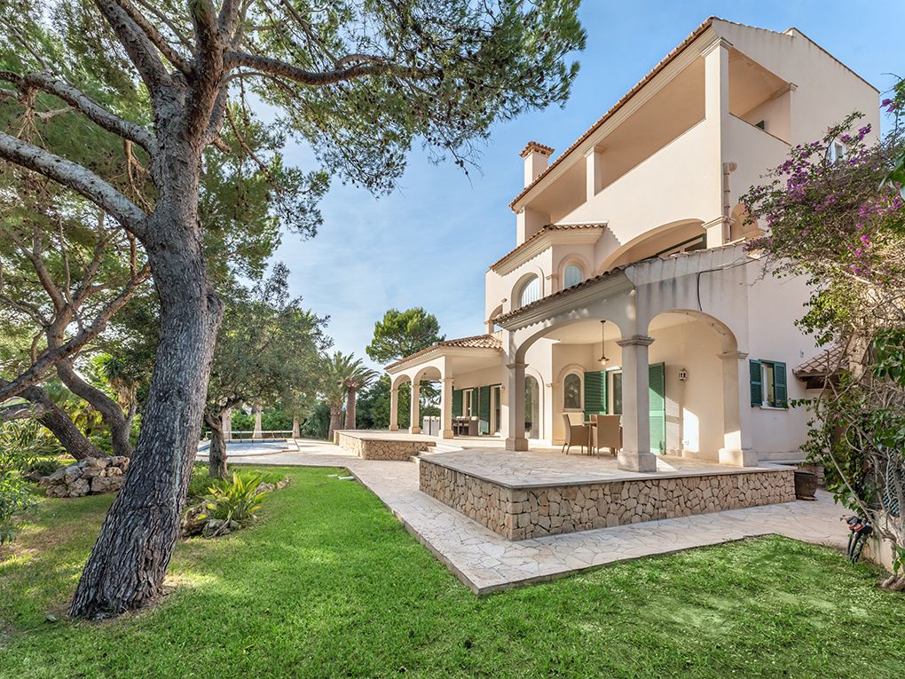 On a plot of approximately 1,400 m², not far from the popular Cala Gran bathing bay, this elegant Mediterranean villa is situated in a quiet yet central location of Cala d'Or. The property impresses with its Mediterranean charm, spacious layout, and immediate proximity to the sea. On the ground floor, you are welcomed by the light-flooded living and dining area with access to the covered terraces and the well-maintained garden. The fully equipped kitchen seamlessly adjoins. On this level, there is also a bedroom and a bathroom – ideal for guests or as an office. The first floor offers two more bedrooms, each with its own en-suite bathroom, and access to a sunny terrace with a beautiful view of the garden and the sea, as well as a sauna providing additional comfort. On the second floor lies the master bedroom with an en-suite bathroom. From here, access leads to a spacious rooftop terrace, offering a magnificent panoramic view over Cala d'Or and the sea. The outdoor area features extensive terrace spaces, a well-maintained garden with a private heated pool, and a garage. From the first floor, you can already enjoy the sea view, and the sea access is just a few steps away. The beach of Cala Gran is reachable in only a five-minute walk. The property also has one of the coveted holiday rental licenses for 8 sleeping places (ETV), making it not only an ideal retreat but also an attractive investment. This villa combines Mediterranean style, comfort, and prime location – a perfect home to fully enjoy the lifestyle of the southeast coast of Mallorca.