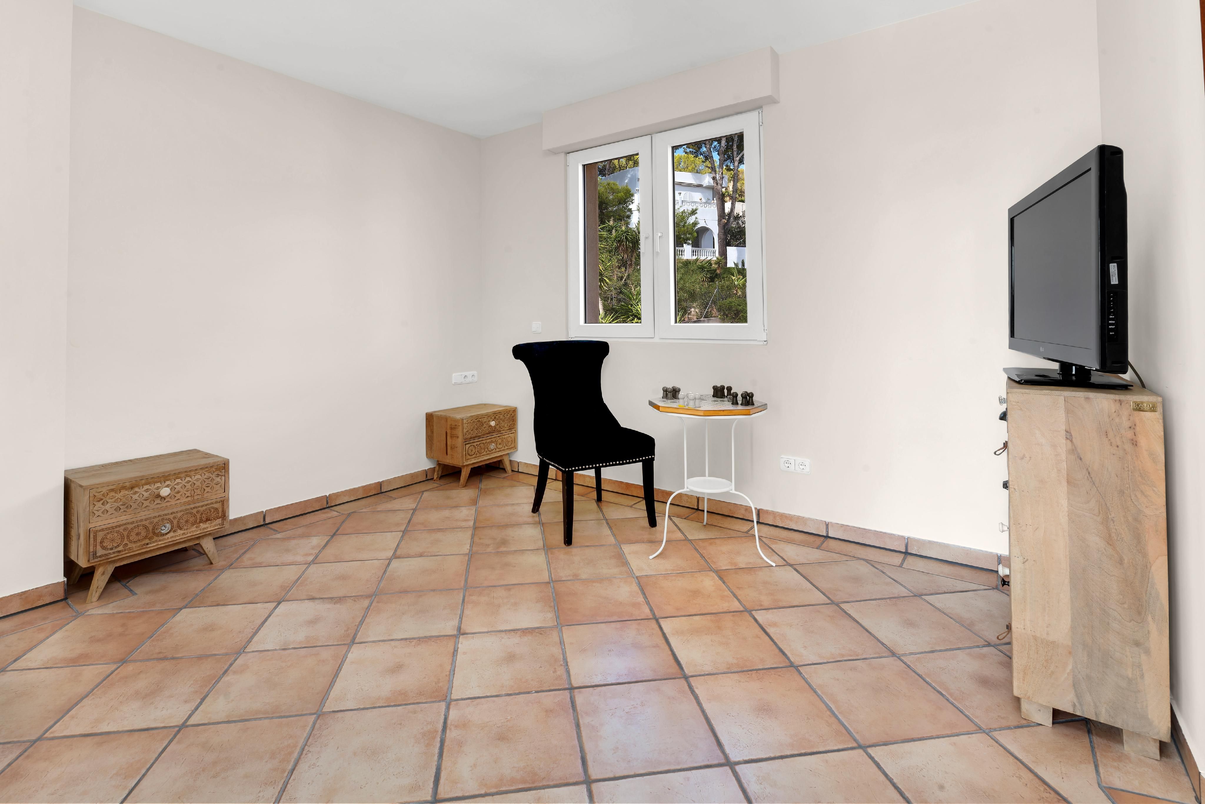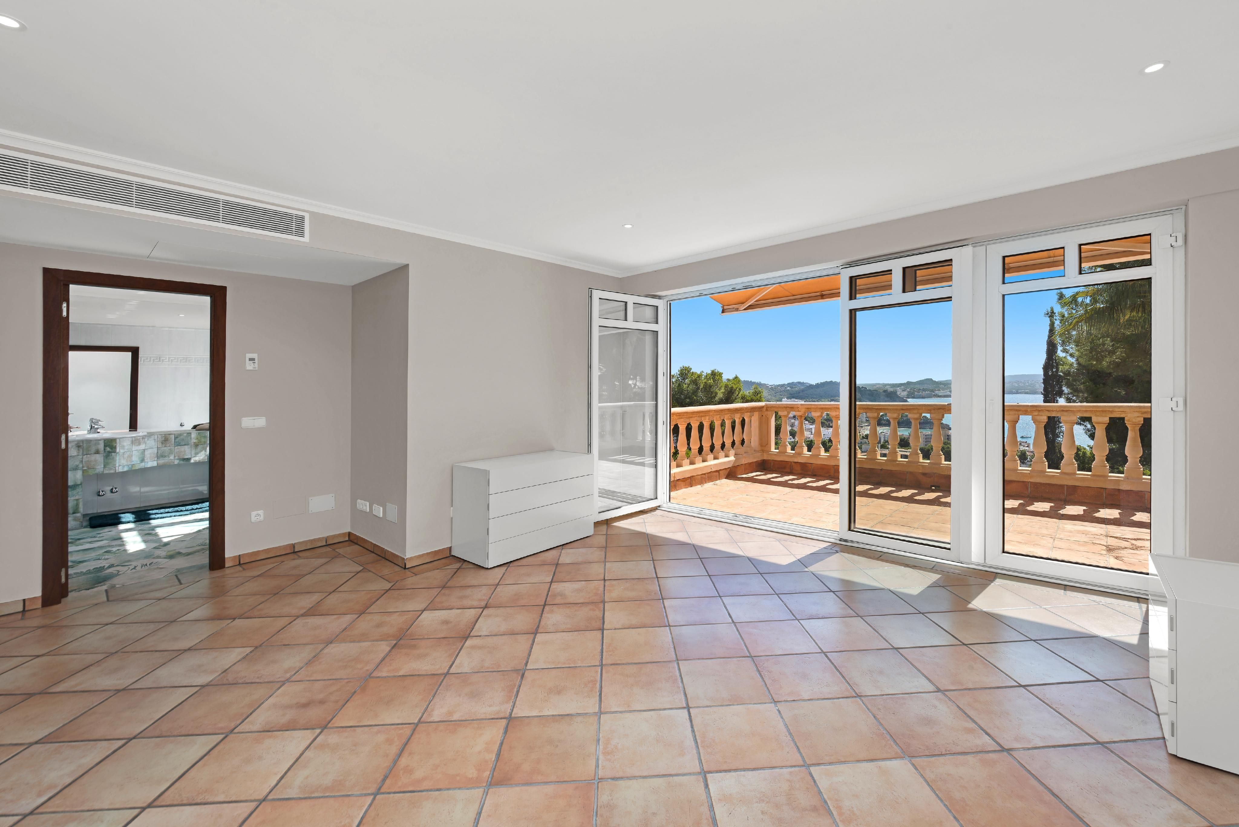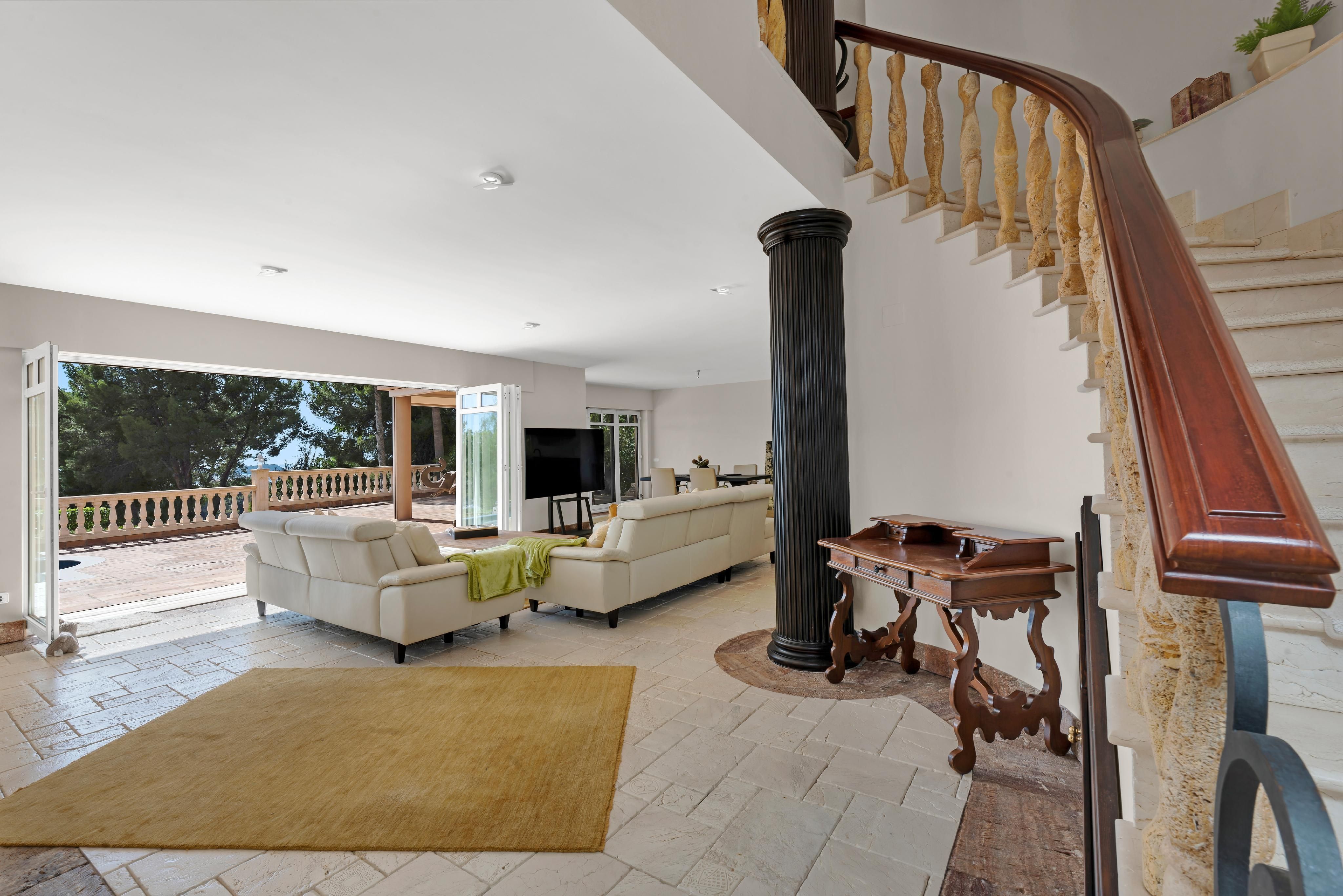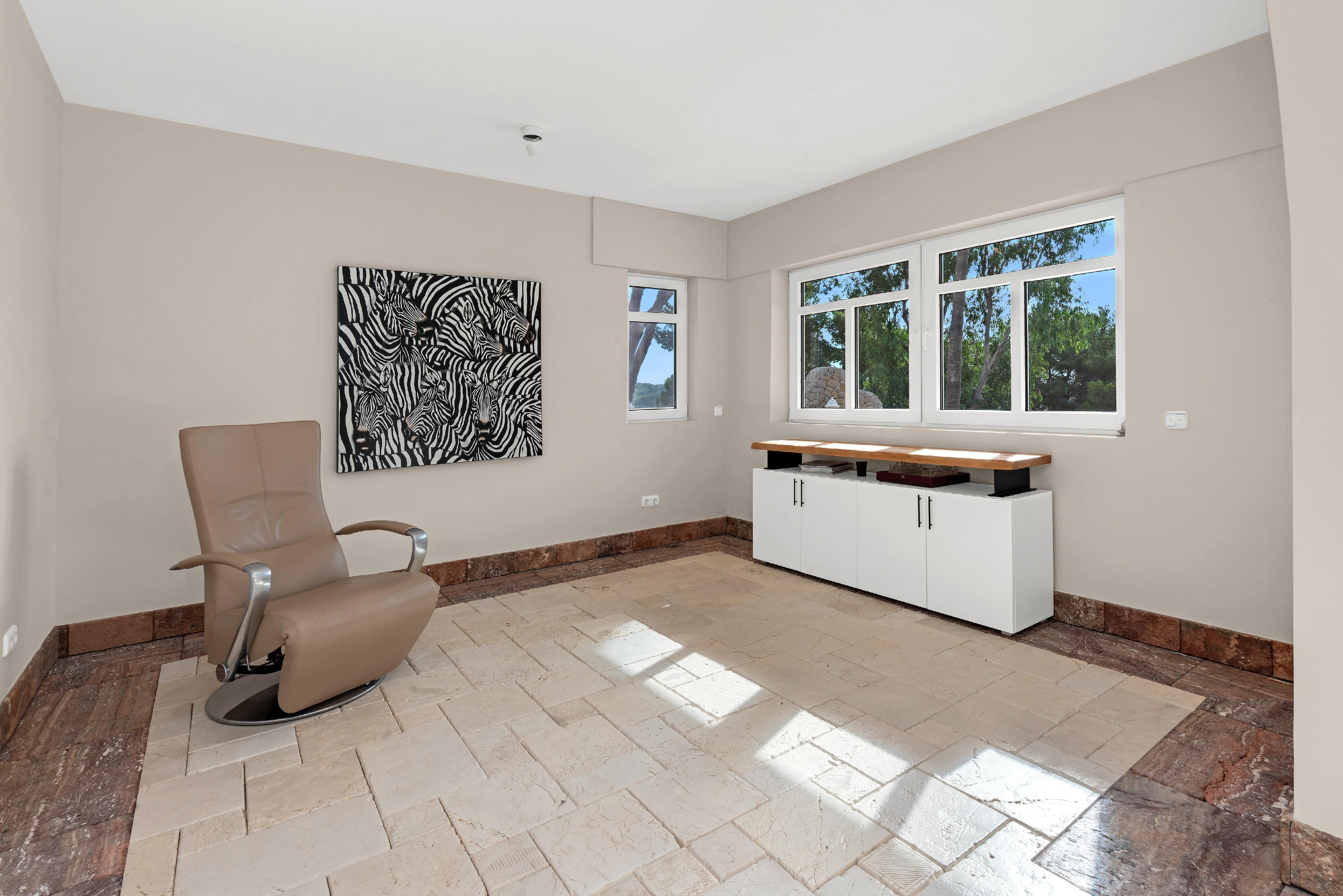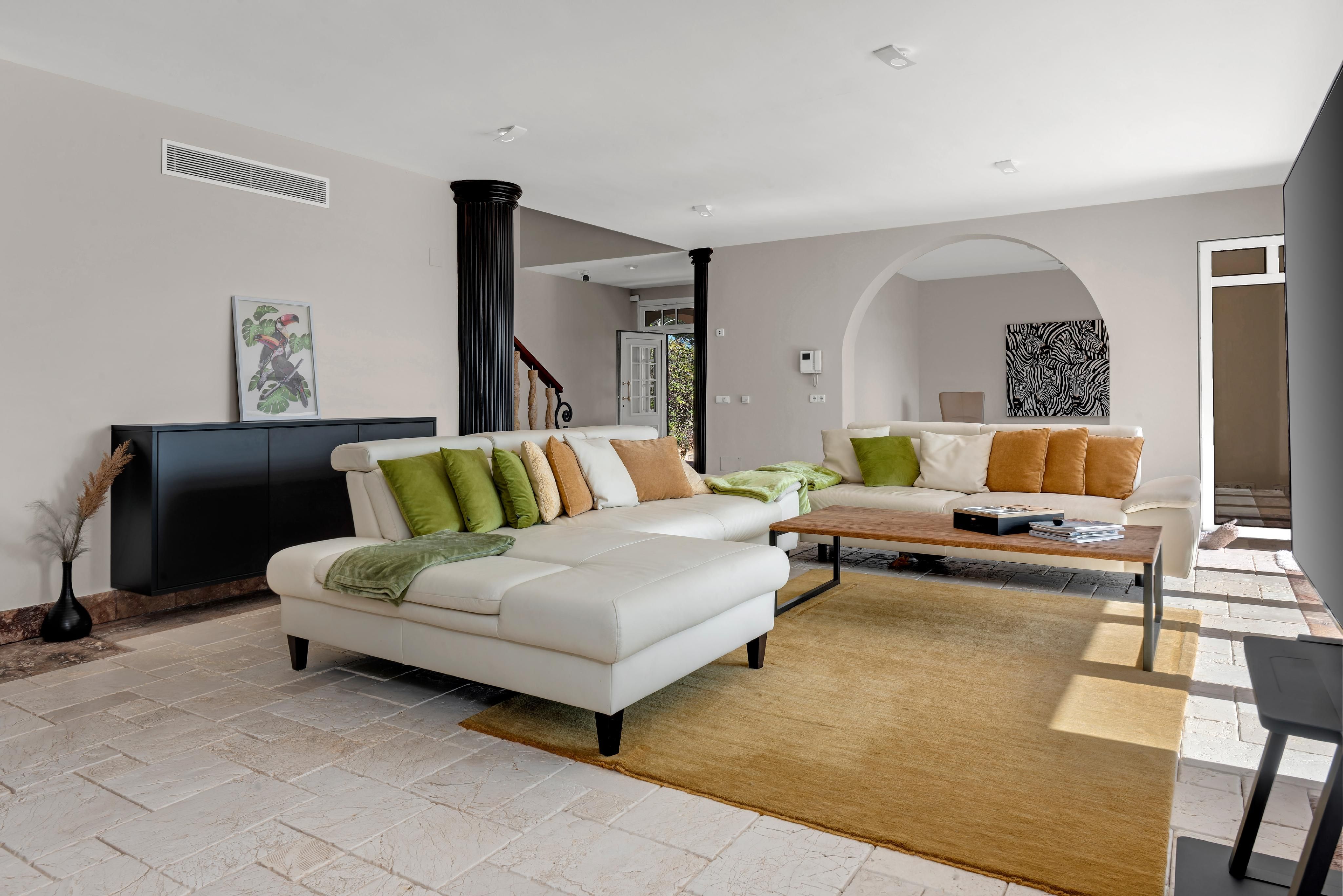 This Mediterranean villa in Paguera is situated on an elevated hillside location and offers beautiful sea and panoramic views. It is located in a quiet residential area with plenty of privacy and has excellent connections to Palma, the airport, and Puerto de Andratx. The house is spread over two levels. On the upper floor, there are 2 bedrooms, each with an en-suite bathroom and a terrace with sea views. In addition, there is a separate guest apartment with its own entrance. On the ground floor, you will find a modern, fully equipped open kitchen, a bright living room, an office, as well as a large and sunny terrace. The outdoor area features a heated pool, a garden with irrigation system, a garage, and 2 parking spaces. Air conditioning, underfloor heating, double glazing, and marble floors ensure a high level of comfort.