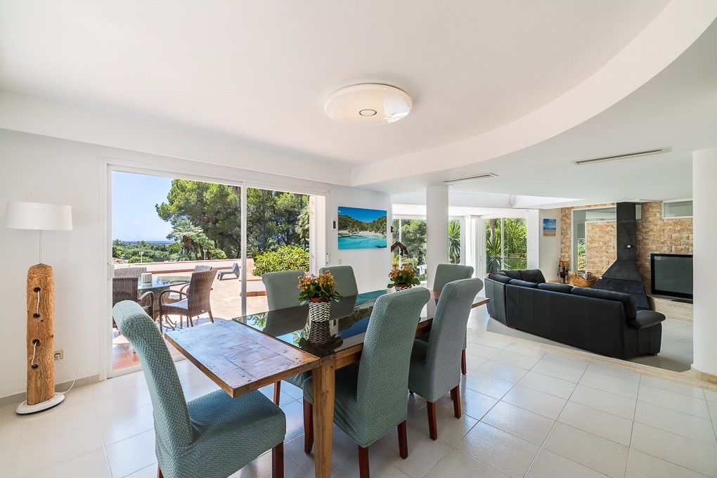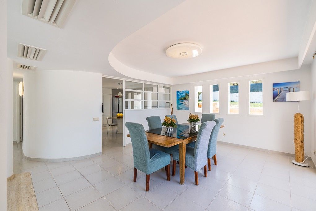 This villa is situated in a very exclusive residential area of S’Aranjassa, approximately 20 min. away from Palma. It has six bedrooms, each of them with a view over the beautiful garden. Furthermore this villa offers five bathrooms, three living areas and a completely equipped kitchen with dining room. The light-flooded villa is embedded in a landscaped garden. The exterior area offers a BBQ with a wooden stove, a large covered terrace, a bodega, a pool, a football field, various fruit-trees and a playground for children and a well.