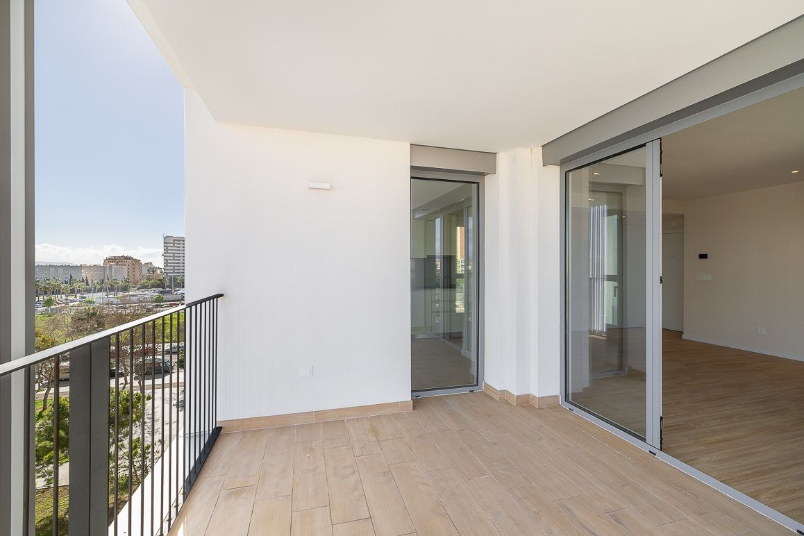 This bright, sunlit, and modern apartment is located in a newly constructed residential complex in the east of Palma and is situated on the 5th floor. Thanks to the elevator, the apartment is easily accessible. The apartment features three spacious bedrooms and two modern bathrooms, one of which is en-suite. The open kitchen, living, and dining area forms the heart of the apartment and opens to an adjoining covered terrace – ideal for relaxing and enjoying.