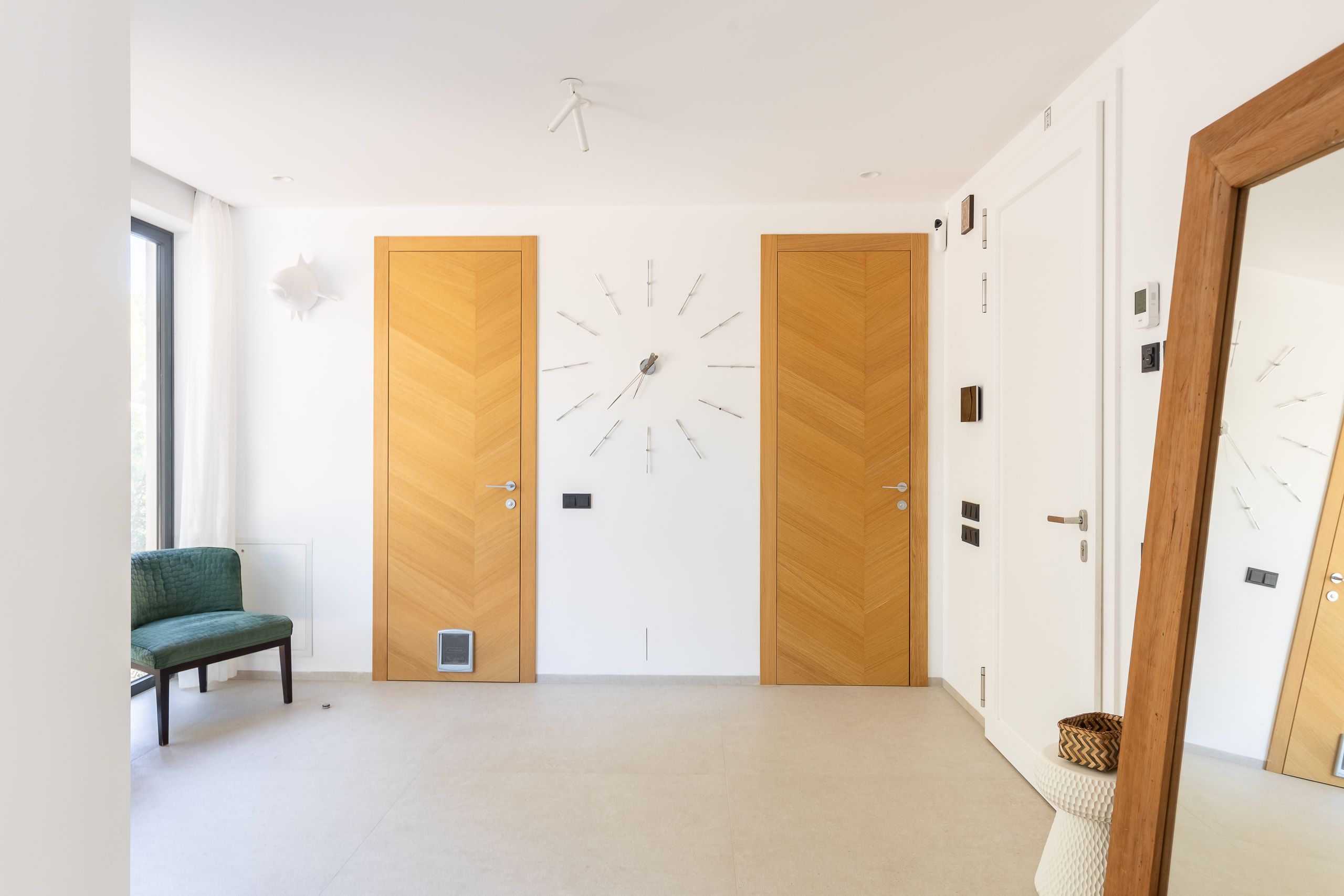 Upon entering the house, you reach the middle floor, where there are two bedrooms and two bathrooms. Both bedrooms offer direct access to the spacious terrace with a pool – the perfect place to relax and enjoy.