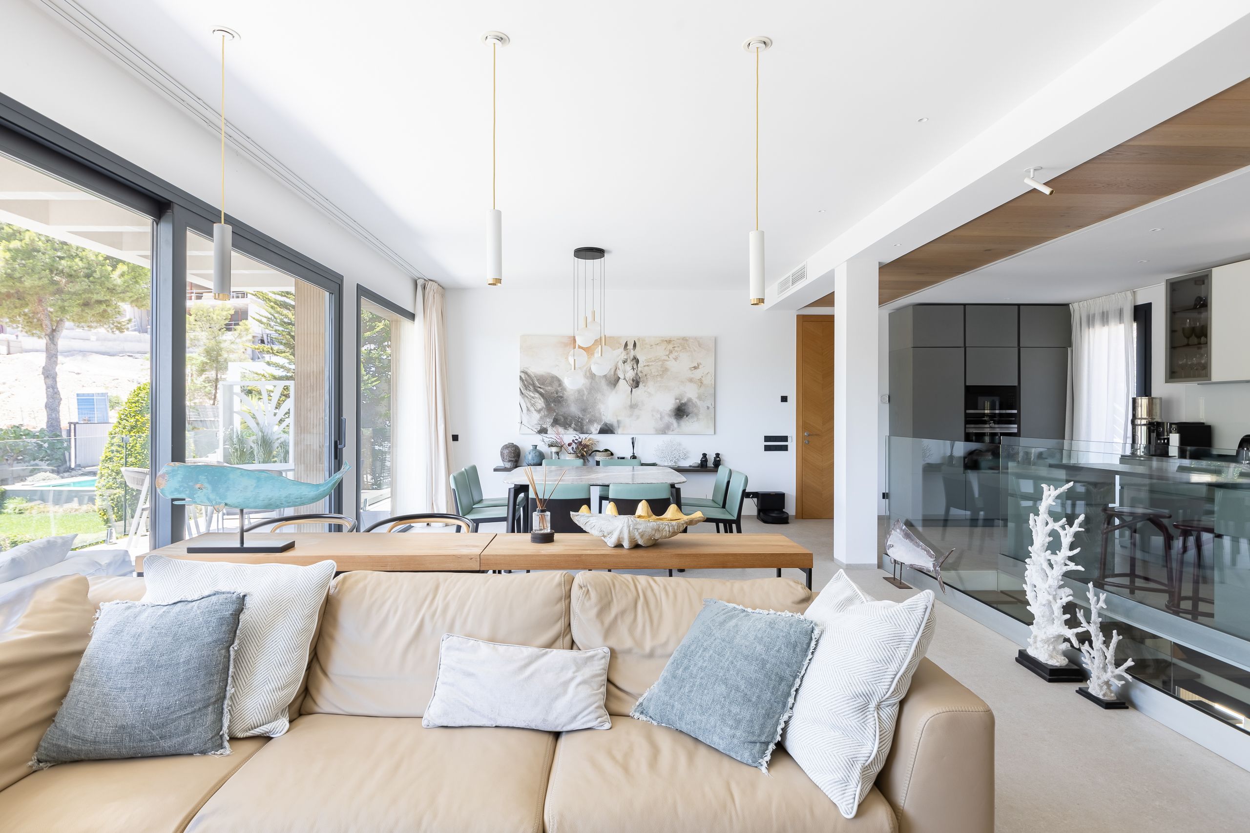This stylish and high-quality equipped house in Camp de Mar spans three levels and impresses with its modern design, spacious layout, and high-quality features.
