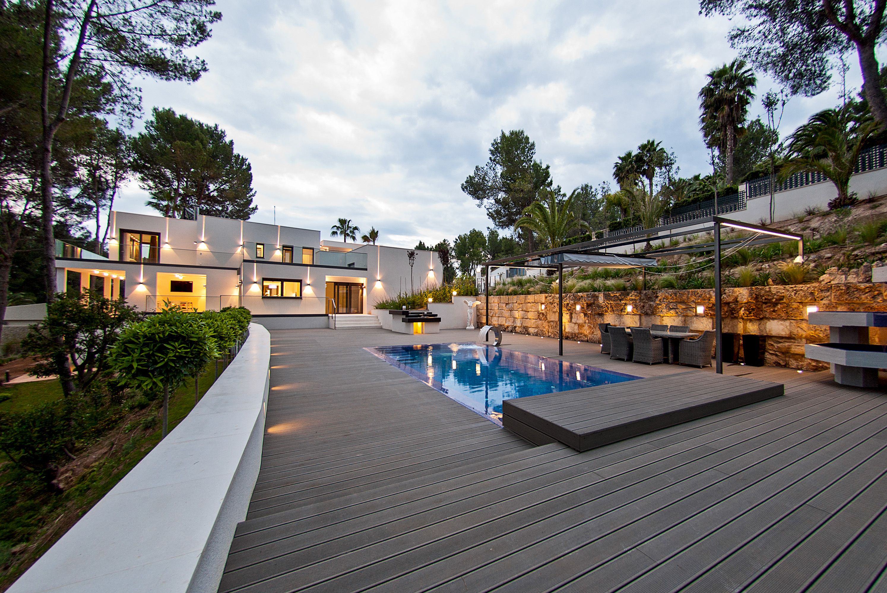 Type: House • Region: Son Vida & Palma Surroundings • Construction year: 2013 • Total surface: 600 ㎡ • Bedrooms: 4 • Bathrooms: 4 • Plot size: 2,000 ㎡ • Parking: 4 • Terrace • Guest Apartment • Kitchen • Fireplace • Air Conditioning • Elevator • Swimmingpool • Guest toilet • Heating: Underfloor heating, Fully air-conditioned • Heating type: Heat Pump • Floor type: Parquet, Marble