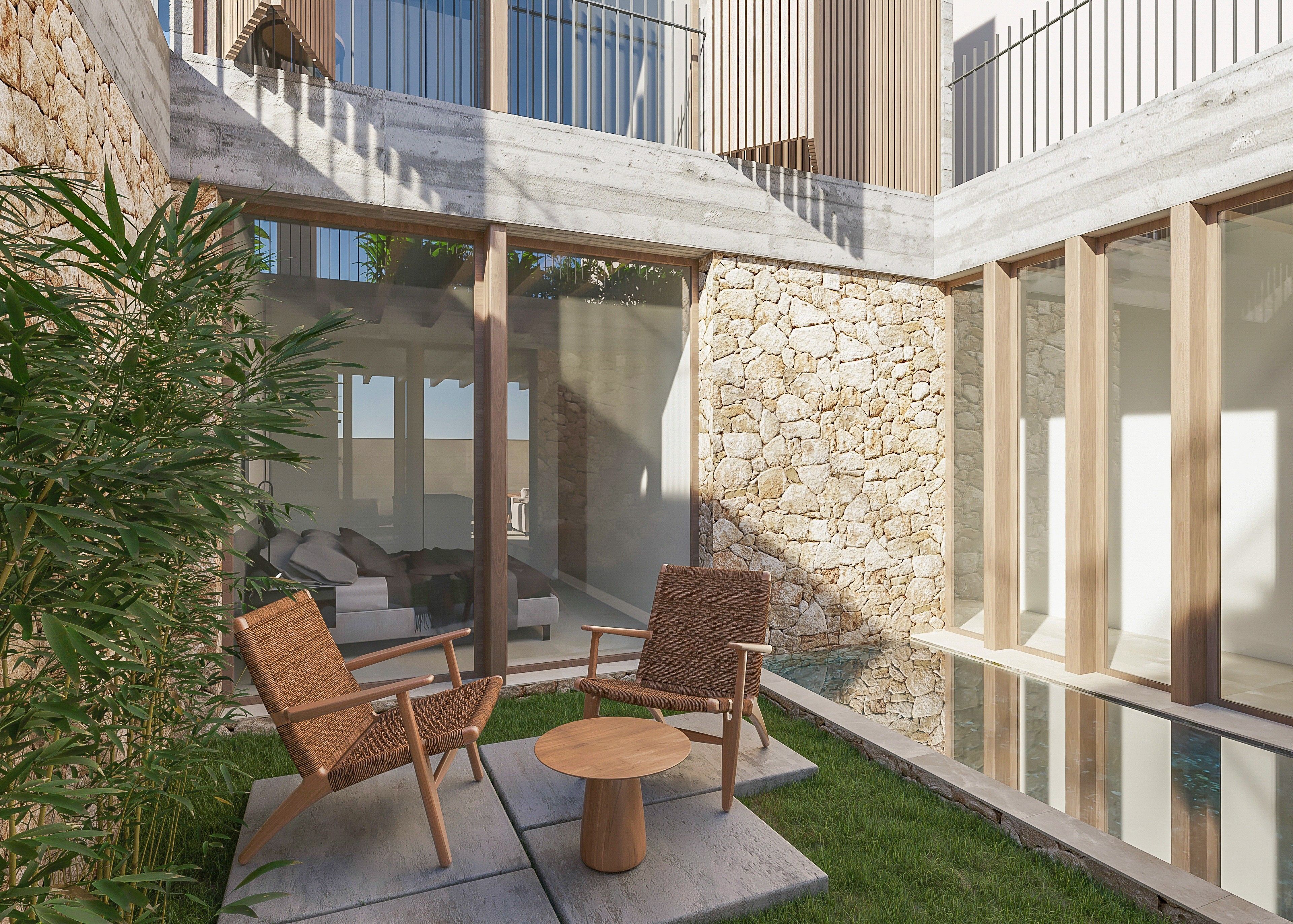 Type: House • Region: Palma • Construction year: 2026 • Total surface: 197 ㎡ • Total rooms: 4 • Bedrooms: 3 • Bathrooms: 3 • Balconies: 1 • Parking: 1 • Terrace • Kitchen • Air Conditioning • Swimmingpool • Guest toilet • Heating: Underfloor heating, Central air-conditioned, Fully air-conditioned • Heating type: Heat Pump • Floor type: Tiles, Wooden