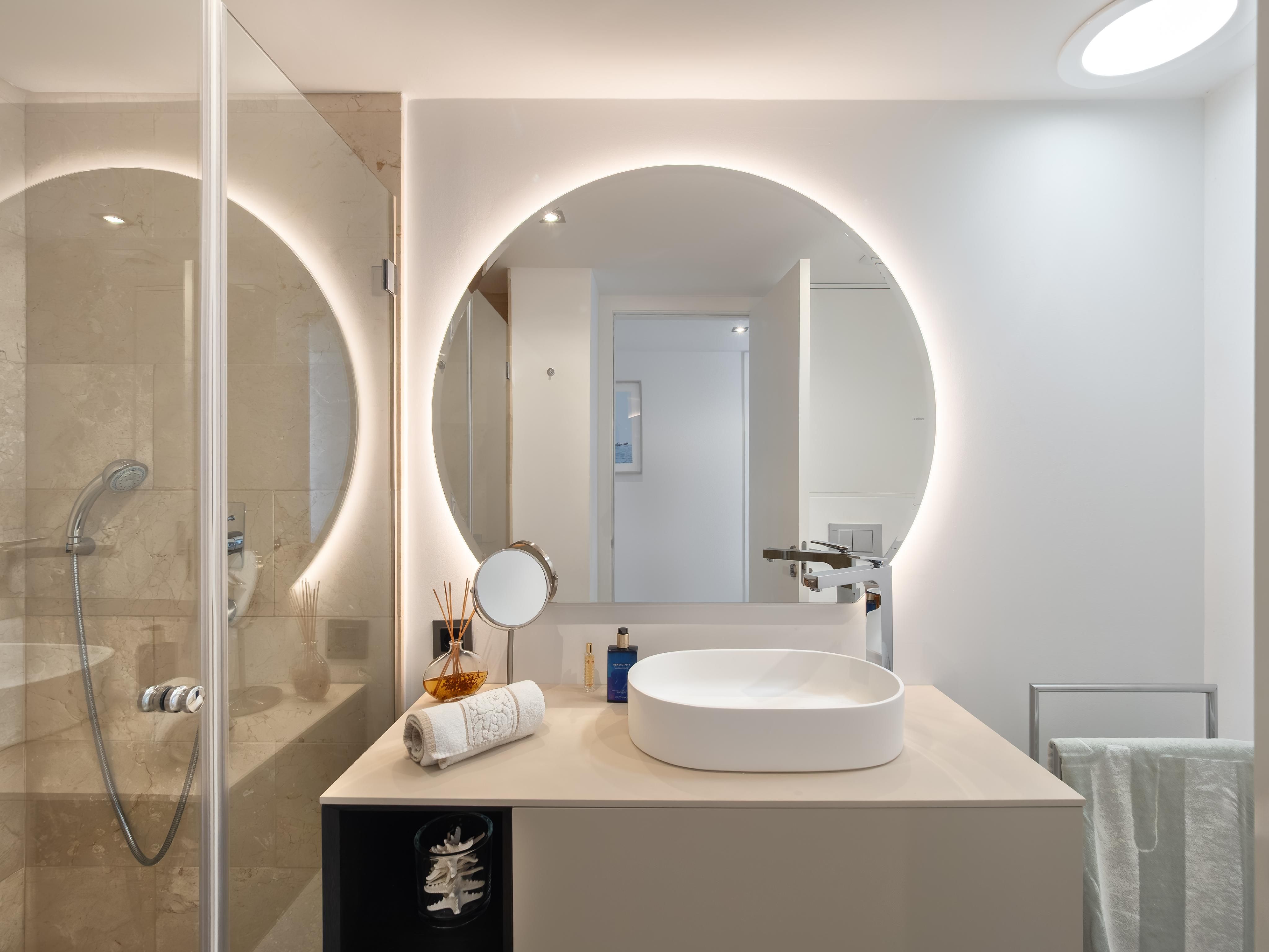 This penthouse is located in Port Andratx, the picturesque fishing and yachting harbor in the exclusive southwest of Mallorca. Situated on the seafront, this modern penthouse offers an exceptional living experience with impressive 360° panoramic views of the open sea, the bay, and the surrounding landscape. The breathtaking view can be enjoyed from almost all areas of the apartment and the spacious terraces. Particularly noteworthy is the spacious roof terrace with teak decking and high-quality outdoor furniture, which offers the perfect place to relax and enjoy. Automatically controlled sun sails provide additional comfort. With approximately 127 m² of living space, the property offers three bedrooms and two luxurious bathrooms. The exclusive kitchen, elegant natural stone floors, and separately controlled underfloor heating and air conditioning in all rooms ensure maximum comfort in every season. Additional features include electric shutters on all windows, fly screens, a separate laundry room, and an elevator for convenient access. The property is part of a small, well-maintained residential complex with only ten units. A large communal pool and a Mediterranean-style garden complete the picture. A parking space for one vehicle is also available. With a total area of approx. 138 m² and approx. 180 m² of terrace space, this penthouse is a rare opportunity – a luxurious retreat in one of Mallorca's most sought-after locations.