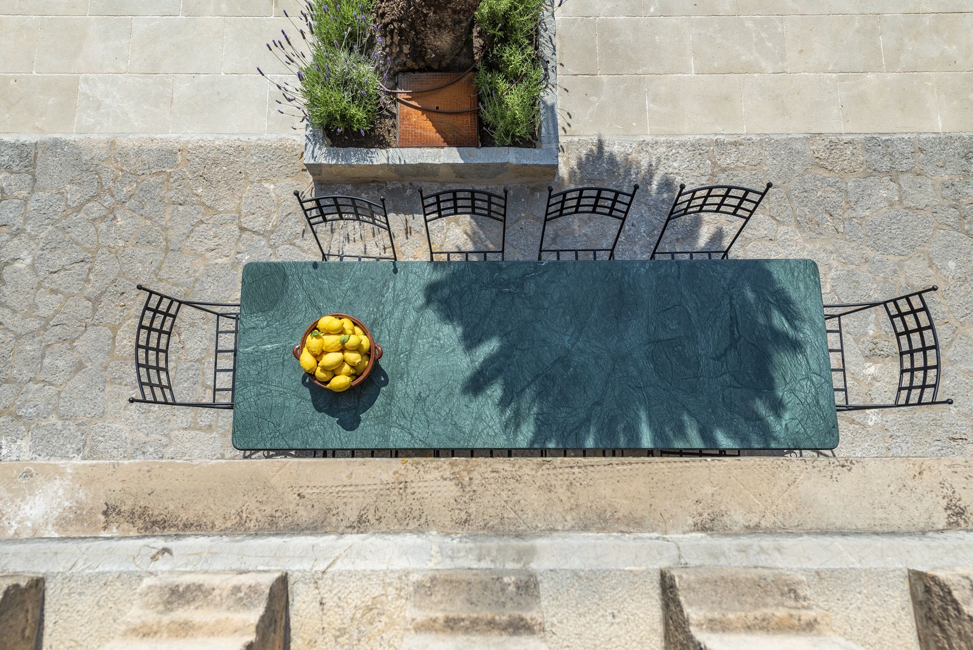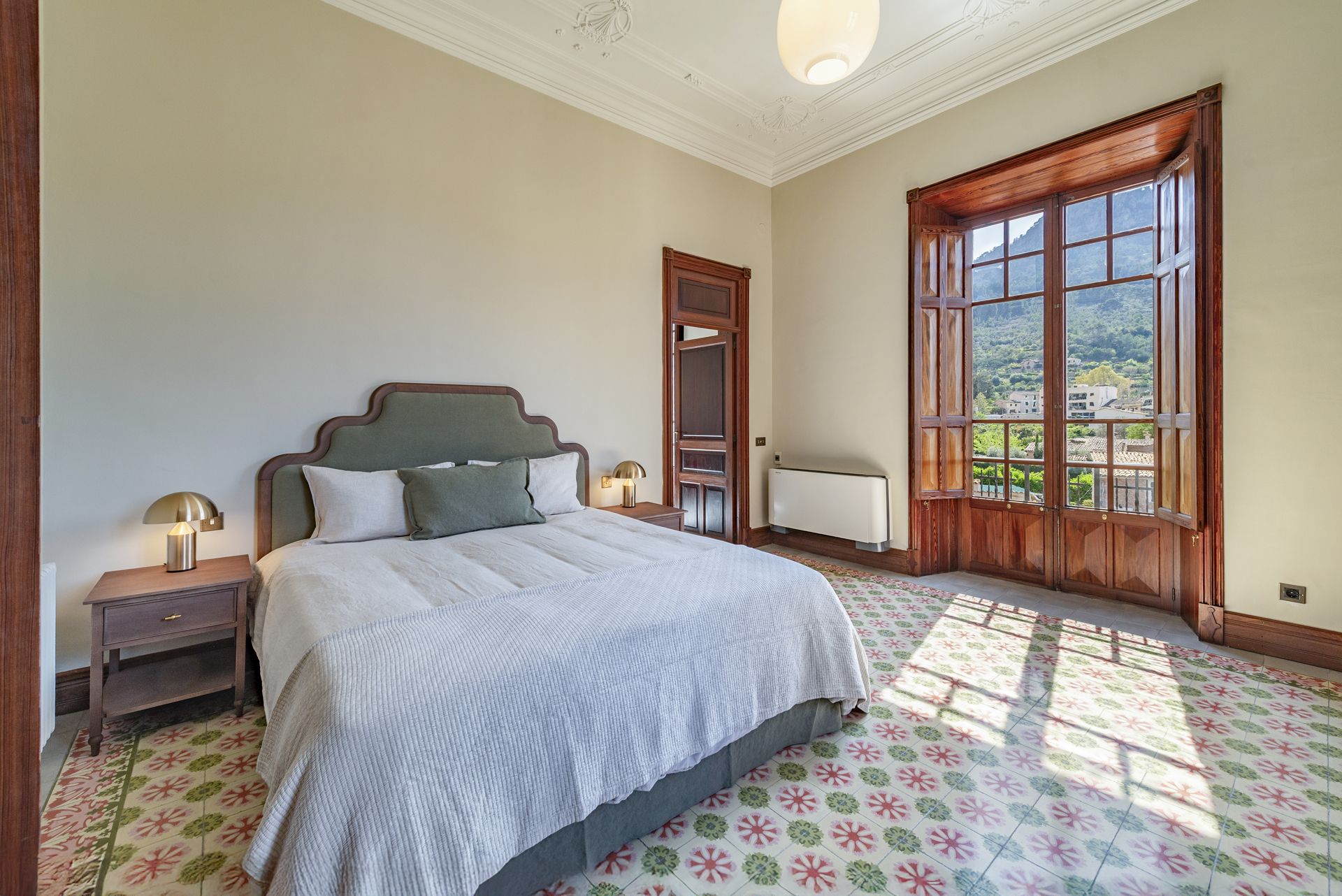 Located on Gran Vía, the town’s most prestigious tree-lined street, the house enjoys exquisite privacy and unobstructed views of the majestic Tramuntana mountains to the south and southwest.