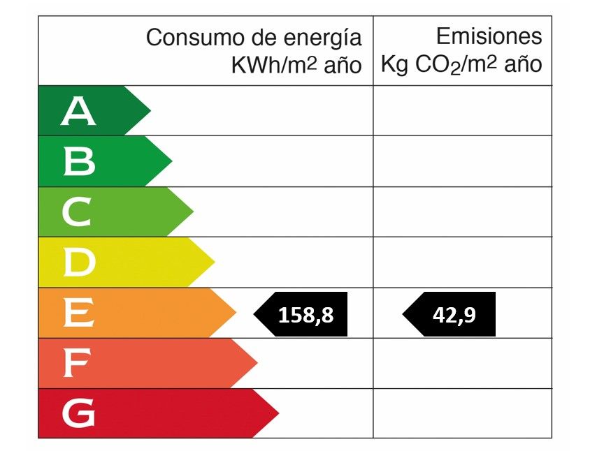 • Energy consumption value: 158.8 kWh/(m2*a) • CO2 emission: 42.9 kg/m2 • CO2 Emission Rating: E • Heating type: Heat Pump • Energy efficiency rating: E
