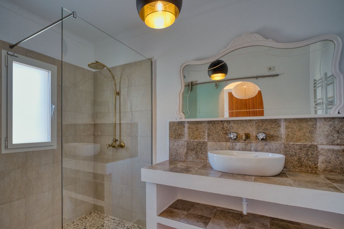 Just about 50 meters from the idyllic harbor of Colònia de Sant Pere, this completely modernized single-family house with a valid holiday rental license for four people is located. The ground-level property offers around 186 m² of living space and combines modern living comfort with Mediterranean flair. The main house features two spacious bedrooms and two stylishly designed bathrooms that meet the highest standards. The bright living area with an integrated dining area creates an inviting atmosphere for social evenings. Large windows provide plenty of light and open direct access to the terrace and the tastefully equipped kitchen - a real highlight for cooking enthusiasts. Several terrace areas invite you to relax and are directly accessible from the living room, kitchen, and master bedroom. The view sweeps sideways over the sparkling sea and the charming harbor - a perfect backdrop for sunny hours at the private pool. Air conditioning units in all living areas ensure pleasant temperatures, while a fireplace provides cozy warmth on cooler days. A separate apartment with its own living and sleeping area, bathroom, and separate entrance expands the space - ideal for guests or flexible use. The offer is rounded off by a practical garage with additional storage space and secure parking spaces for vehicles. A lovingly modernized house, ideal as a retreat for families or couples - with a dream location near the sea, stylish ambiance, and all the comforts for relaxing days on Mallorca.