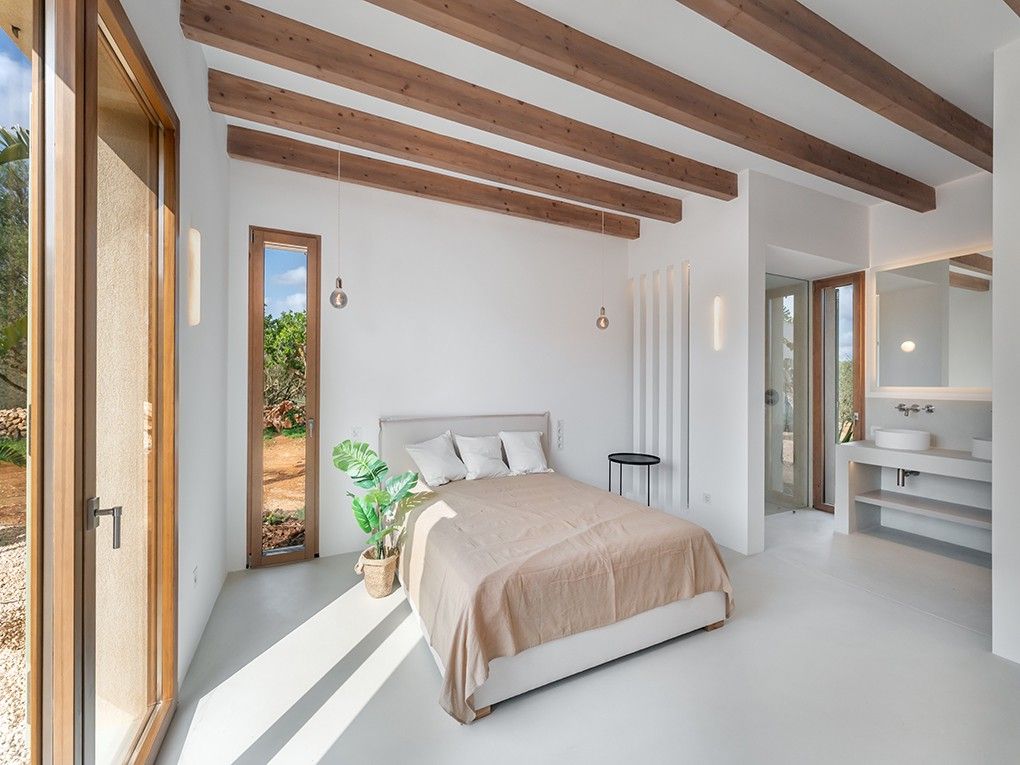 Es Revellar - one of the last finca projects with a major building licence. Let yourself be enchanted by an architectural masterpiece that combines modern, luxurious construction with traditional Mallorca aesthetics. Upon entering the house, you will quickly realise that the heart of the house is the spacious kitchen area. Here, in addition to a high-quality kitchen with Gaggenau and Bora appliances, you will find an open-plan dining area with space for 12 people and more. In addition to a cooking island, one of the property's two fireplaces provides the perfect ambience. The living area and the six spacious bedrooms extend over the ground floor; all areas are directly connected to the Mediterranean garden. The adjoining neighbouring property also offers the possibility of keeping horses, which makes the property particularly interesting for riding enthusiasts. The six bedrooms, which are spread out in all directions, offer pleasant comfort and privacy. All rooms have an en suite bathroom and their own terrace. In addition to the light-flooded kitchen as the centre of the house, you are directly connected to the cosy living room via a small inner courtyard - where the second fireplace awaits you. A playful detail of these rooms is that the fireplace is also visible from the outside. You can enjoy a direct view of the fireplace from two of the bedrooms. The lower level of the finca offers an extensive range of amenities. The staircase is framed by a beautifully designed wine cellar, equipped with sophisticated lighting. In addition to a large gym, a sauna, and a fully equipped bathroom, there is also a home cinema room, already pre-installed with the necessary fittings. The rooms provide the same level of comfort as the ground floor, thanks to natural skylights – this is made possible by courtyards that also allow for space for planting. The elaborate technology of the house is also located on the lower level, ensuring that no valuable living space on the ground floor is used. The property is equipped with state-of-the-art security technology, and an active ventilation system ensures a pleasant indoor climate. Additionally, the house features geothermal energy, comprehensive home automation controls, and underfloor heating (UFH). Sustainable energy generation is provided by a massive PV system with batteries. Outside, there is a carport and an electric vehicle charging station (car charger). A special highlight is the climate control system in the wine cellar – a dedicated system that ensures optimal storage conditions.