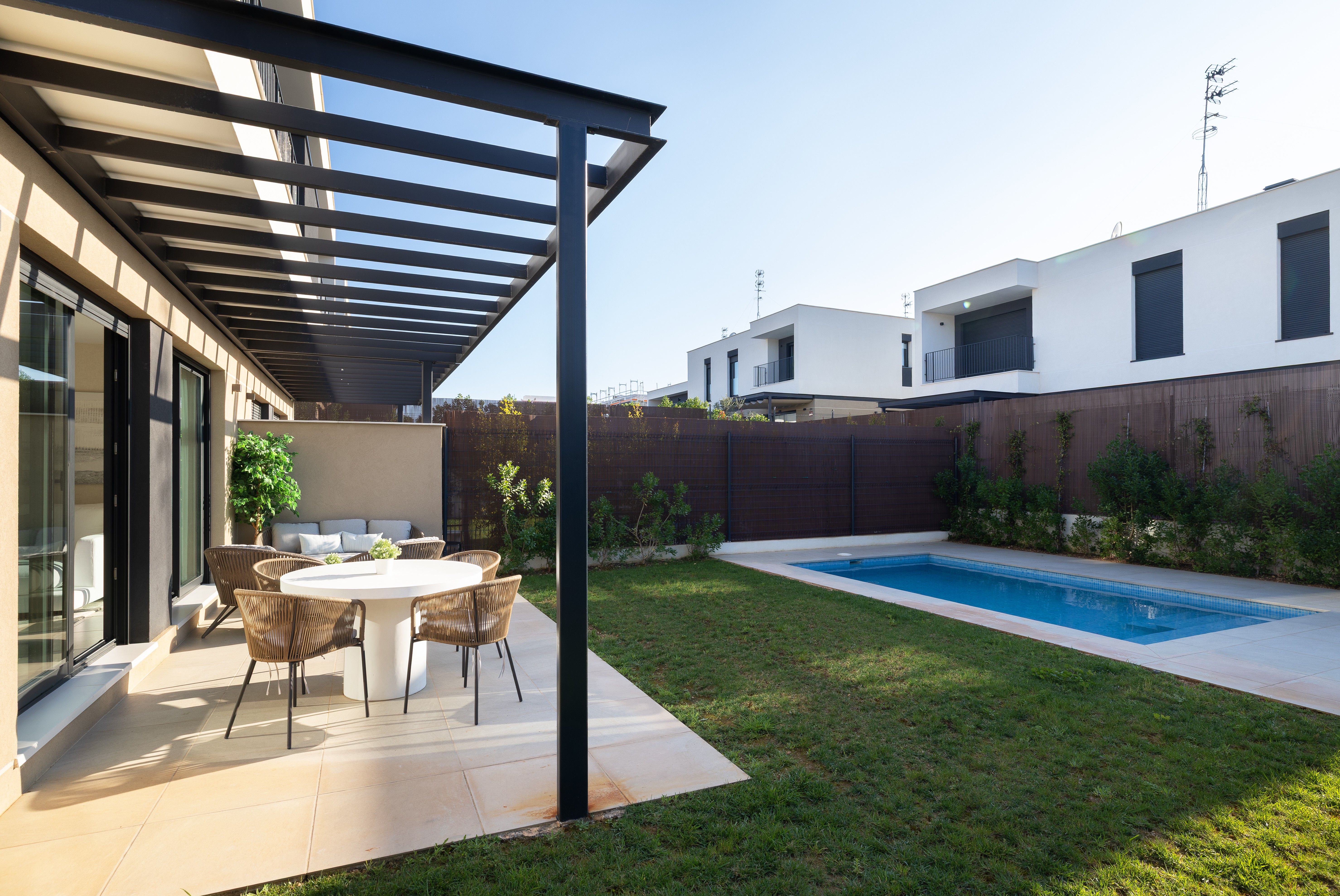 Type: House • Region: South • Construction year: 2024 • Total surface: 155 ㎡ • Total rooms: 5 • Bedrooms: 4 • Bathrooms: 3 • Living space: 155 ㎡ • Plot size: 300 ㎡ • Balconies: 1 • Parking: 2 • Terrace • Kitchen • Furnished • Swimmingpool • Heating: Central heating, Underfloor heating, Ducted air-conditioned • Heating type: Heat Pump • Floor type: Tiles, Laminate