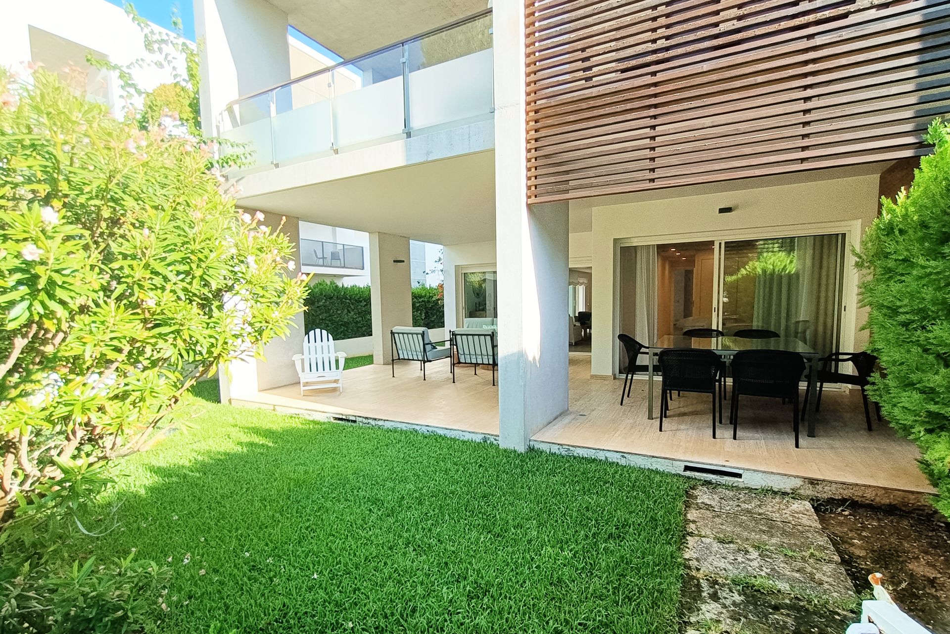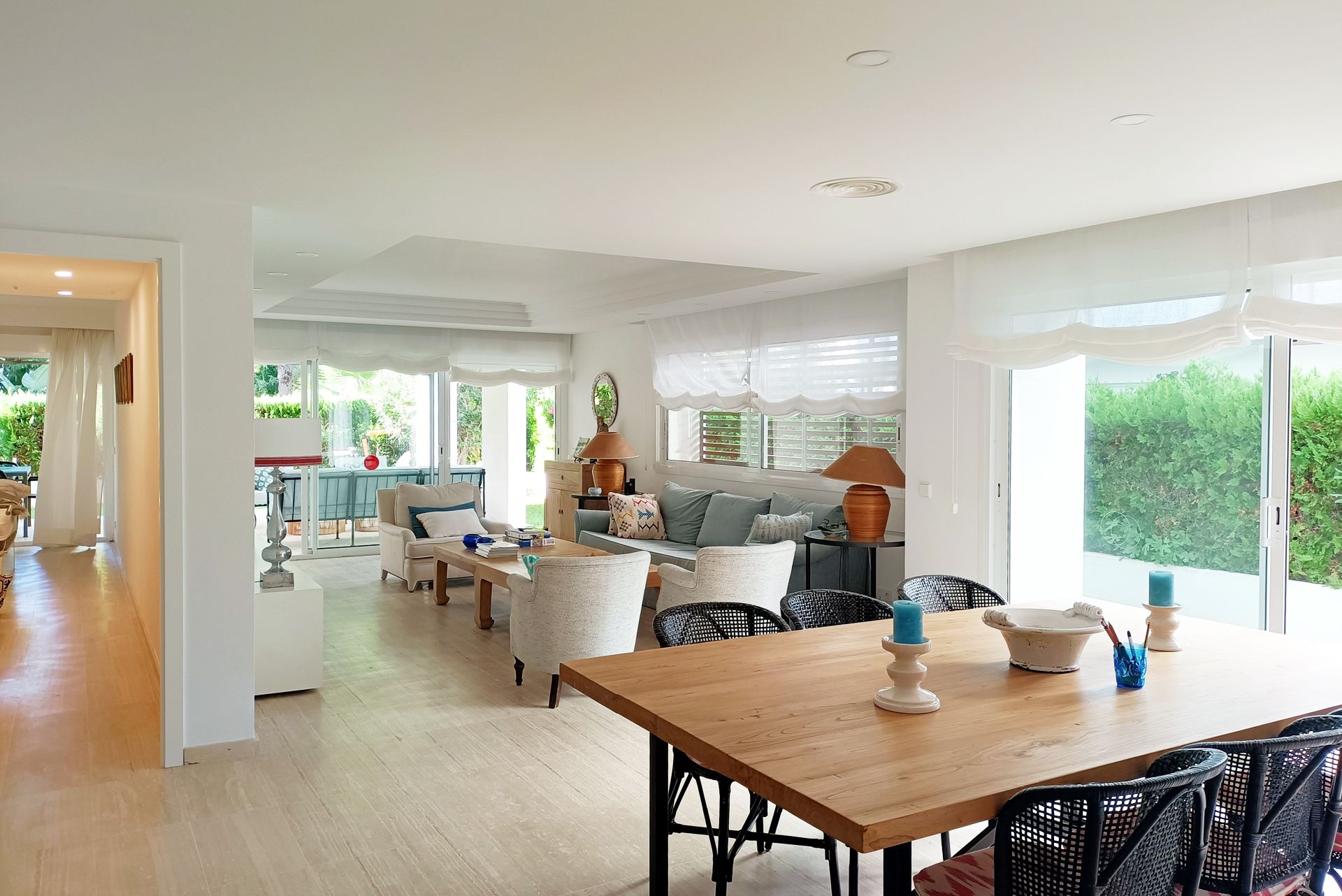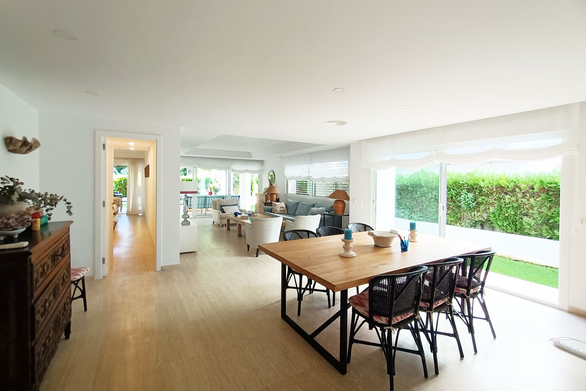 Elegant Ground-Floor Apartment in Bellresguard, Steps from the Beach. Located in the exclusive and peaceful area of Bellresguard, just steps from the beach and the charming Paseo de los Pinos, this ground-floor apartment stands out for its spaciousness, design, and quality. The property has four bedrooms: three doubles and one single. Two feature en-suite bathrooms, while the other two share a stylish additional bathroom. The bright open-plan living-dining area creates a cozy and sophisticated atmosphere, with direct access, as does the master bedroom, to a sunny terrace overlooking the landscaped gardens and the communal pool. The modern, fully equipped kitchen includes a breakfast area and a practical laundry room. Comfort features include air conditioning (hot/cold), electric blinds in every room, and soundproofed walls.