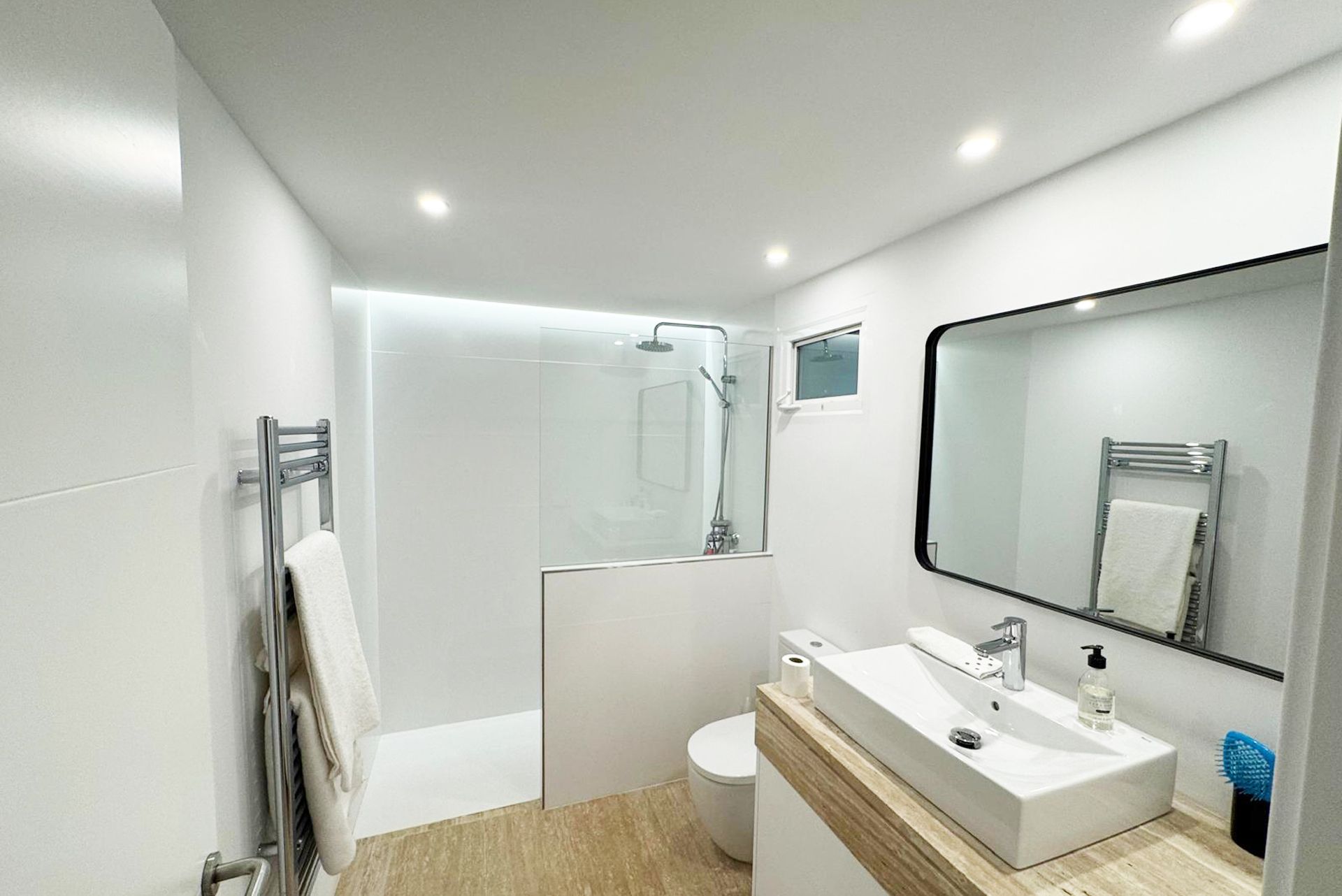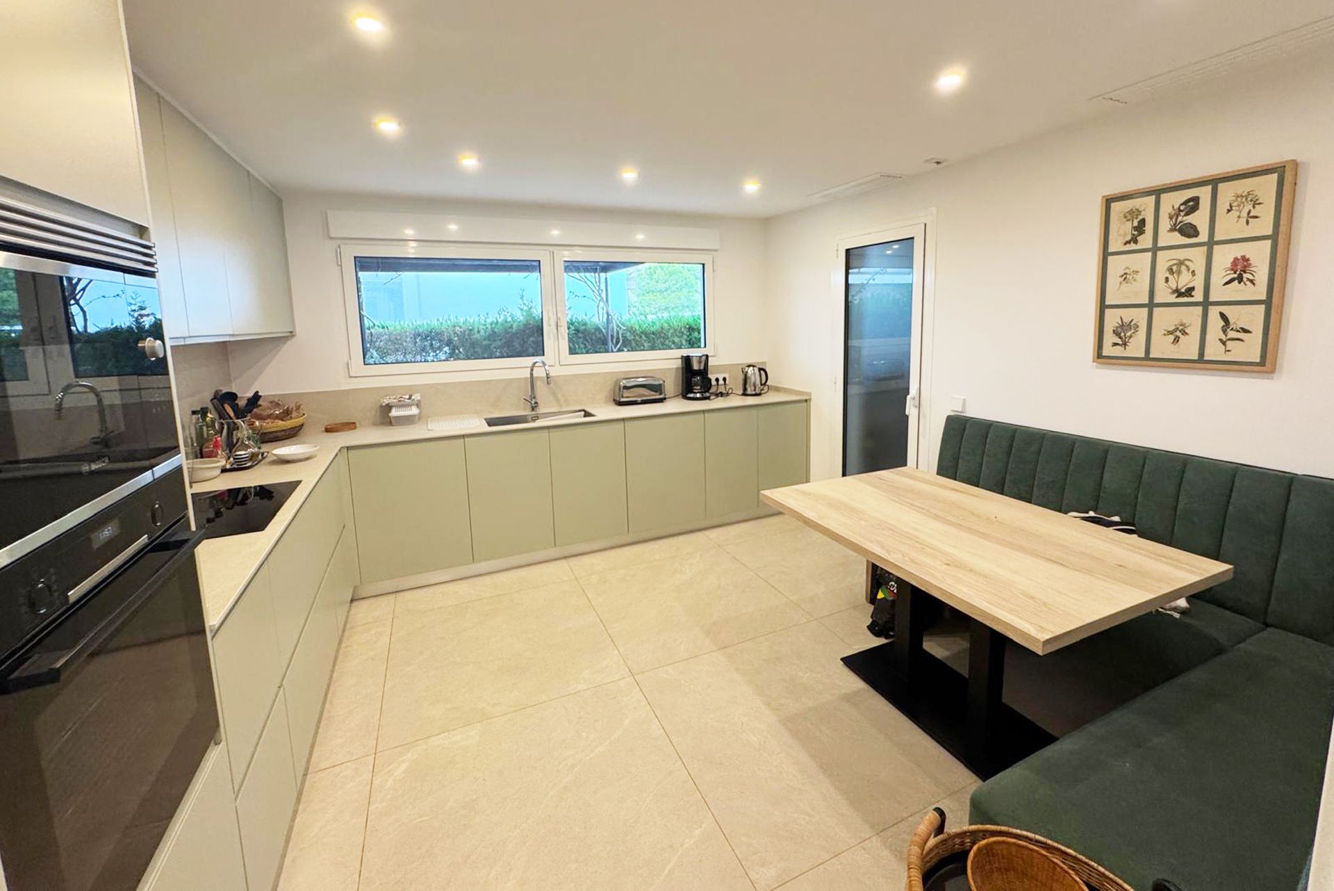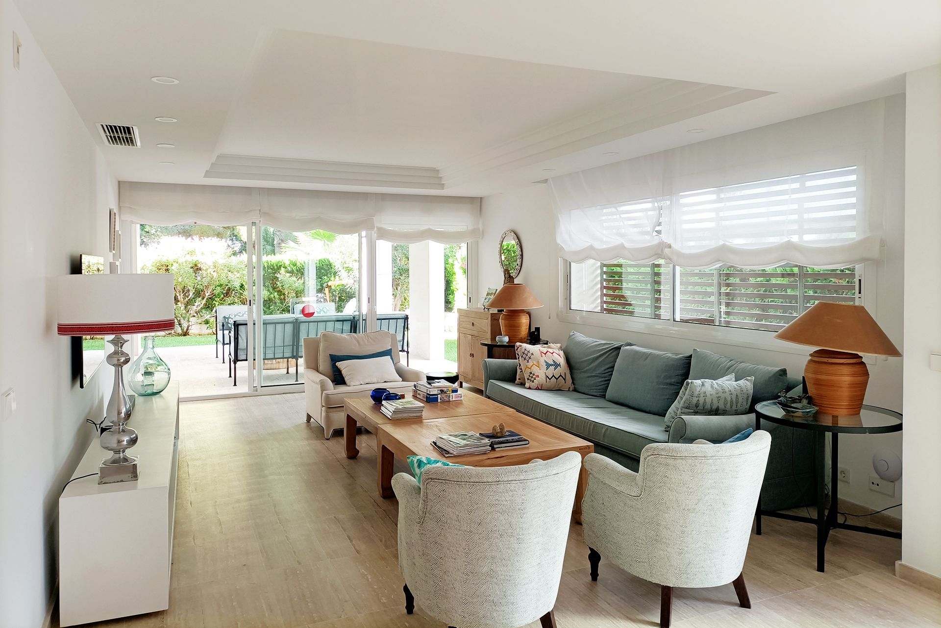 Elegant Ground-Floor Apartment in Bellresguard, Steps from the Beach. Located in the exclusive and peaceful area of Bellresguard, just steps from the beach and the charming Paseo de los Pinos, this ground-floor apartment stands out for its spaciousness, design, and quality. The property has four bedrooms: three doubles and one single. Two feature en-suite bathrooms, while the other two share a stylish additional bathroom. The bright open-plan living-dining area creates a cozy and sophisticated atmosphere, with direct access, as does the master bedroom, to a sunny terrace overlooking the landscaped gardens and the communal pool. The modern, fully equipped kitchen includes a breakfast area and a practical laundry room. Comfort features include air conditioning (hot/cold), electric blinds in every room, and soundproofed walls.