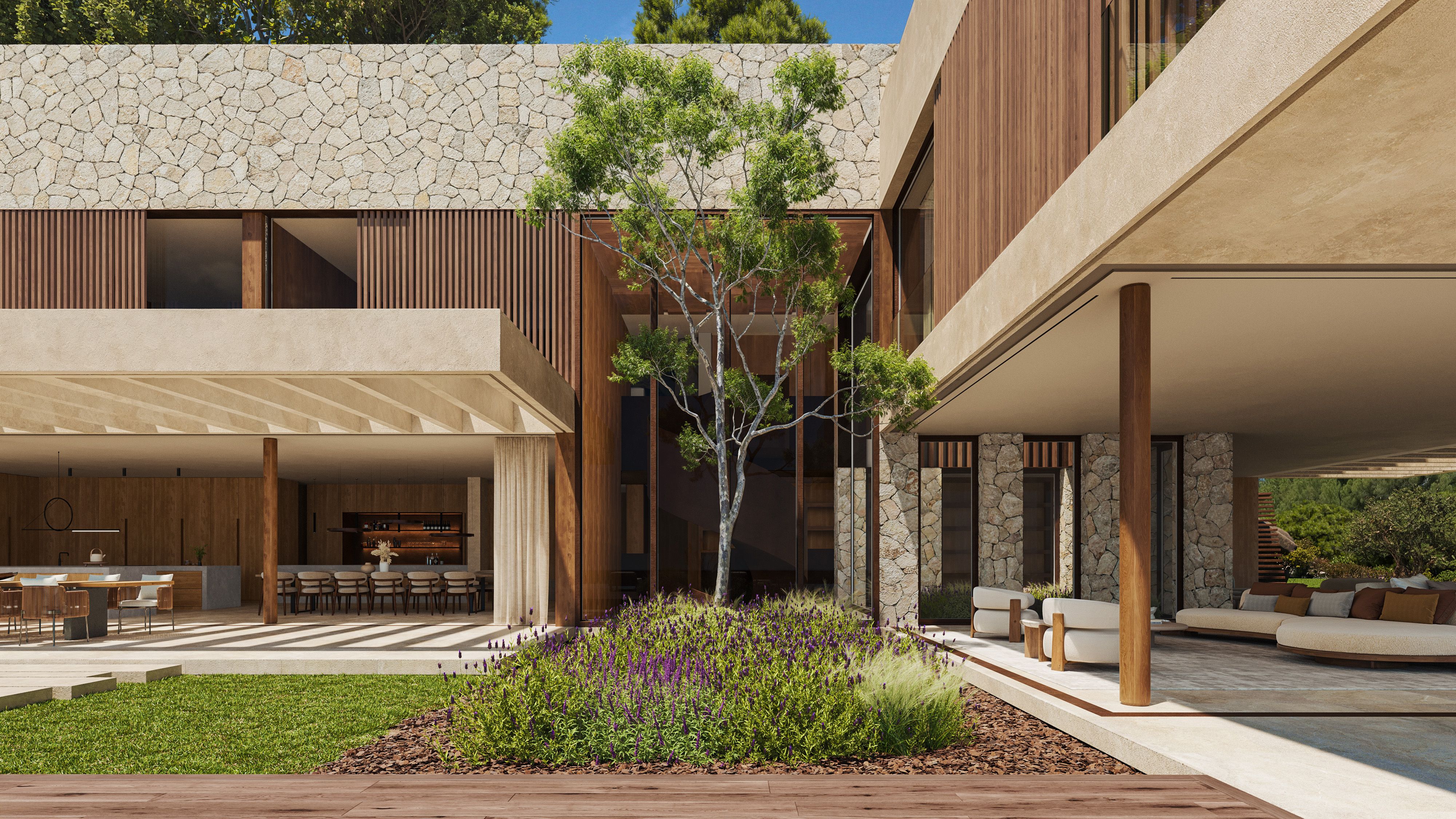 Experience luxury and innovation in one of the most sought-after locations in Europe. On over 2263 m² planned living and usable area you have the unique opportunity to realise your dream home - a place that leaves nothing to be desired and enables a life full of comfort and elegance. This plot and project is not only unique, but also a valuable investment in the future. With a rare building licence that can never be granted again in this size, this is a rare opportunity to create a property of unparalleled exclusivity. The architecture of this villa combines timeless elegance with modern lightness. The spacious living areas of the main house and guest house offer room for individual design and luxurious living. Advanced technology that can be used, such as windows that retract into the floor and sophisticated architecture of the project, create an atmosphere of unrivalled well-being. Located in the picturesque Camp de Mar region, this property offers a prime location with breathtaking views of the dazzling Mediterranean Sea, complete privacy and convenient access to the sea. The total area of the plot is an impressive 7804 m², of which 4357 m² are natural and 3446 m² are designated for the residence. The property comprises a main house and a guest house, which can be connected by an elegant gallery once completed. With a total area of 2263 m², this property not only offers impressive living spaces, but also two pools. The main house impresses with a spacious master area of approx. 100 m², which includes a private terrace of 27 m². The bedroom level offers three additional bedrooms, each with its own luxurious bathroom. One floor below, the spacious living area presents an elegant lobby, an open-plan living area with integrated kitchen, a bar, a preparation kitchen and a BBQ area totalling 263 m², all under impressive three-metre-high ceilings. The spacious terrace areas on the living level offer ideal relaxation opportunities with a 24-metre- long pool. A special ramp leads to the garage, which has space for 5 vehicles and an additional 400 m² for a home cinema, laundry area and technical rooms. The guest house below the pool accommodates a further four bedrooms, each with its own bathroom, over 150 m². An additional spa area of 263 m² and a further pool complete this spectacular offer. This project sets new standards in terms of luxury and comfort. The generously designed outdoor areas, two breathtaking infinity pools and the impressive terraces offer the perfect setting for individual fulfilment and relaxation. Every detail of the project has been planned with the utmost care and precision to create an unrivalled living experience. Here the dream of an exclusive luxury by the sea may come true.