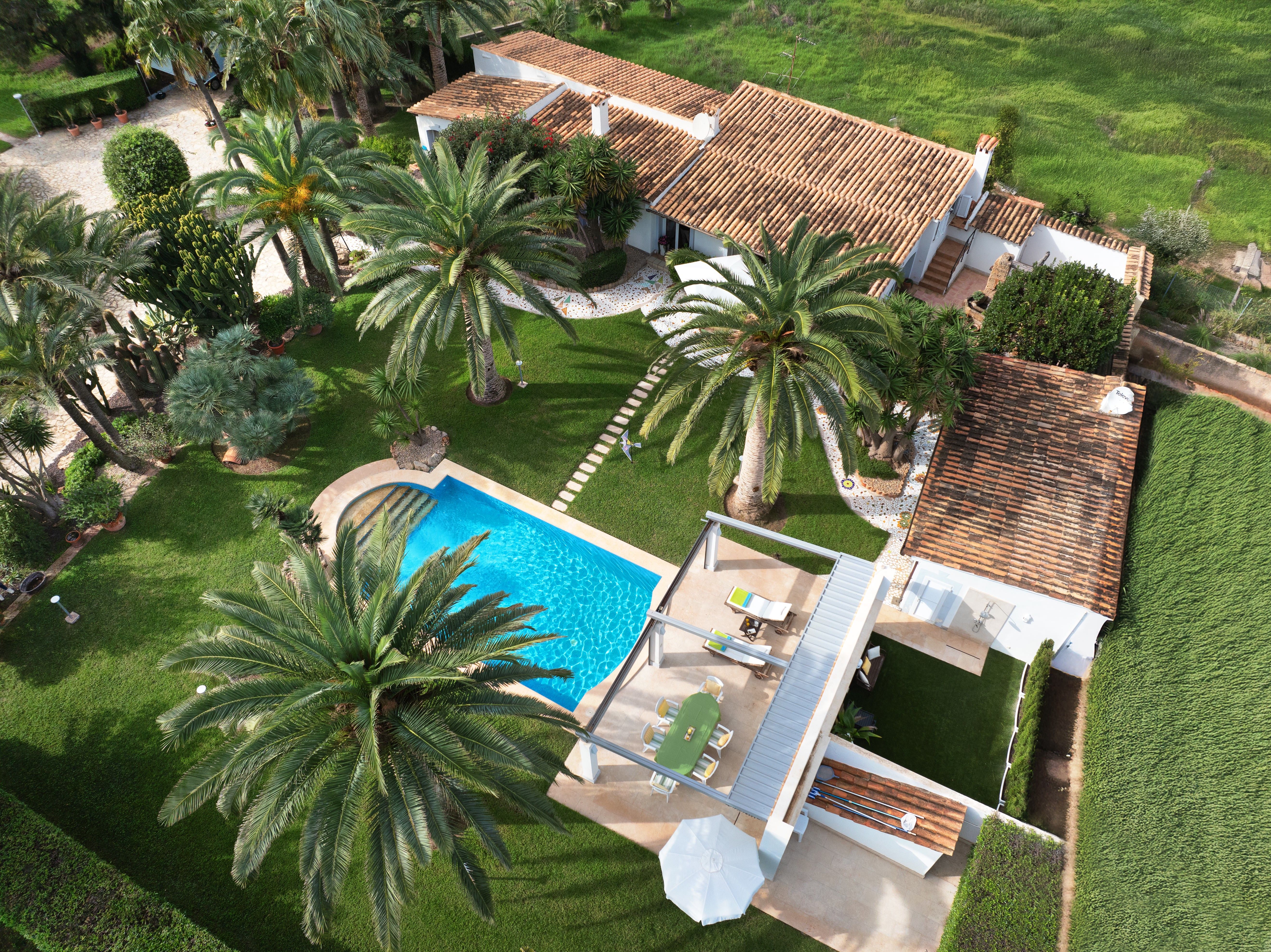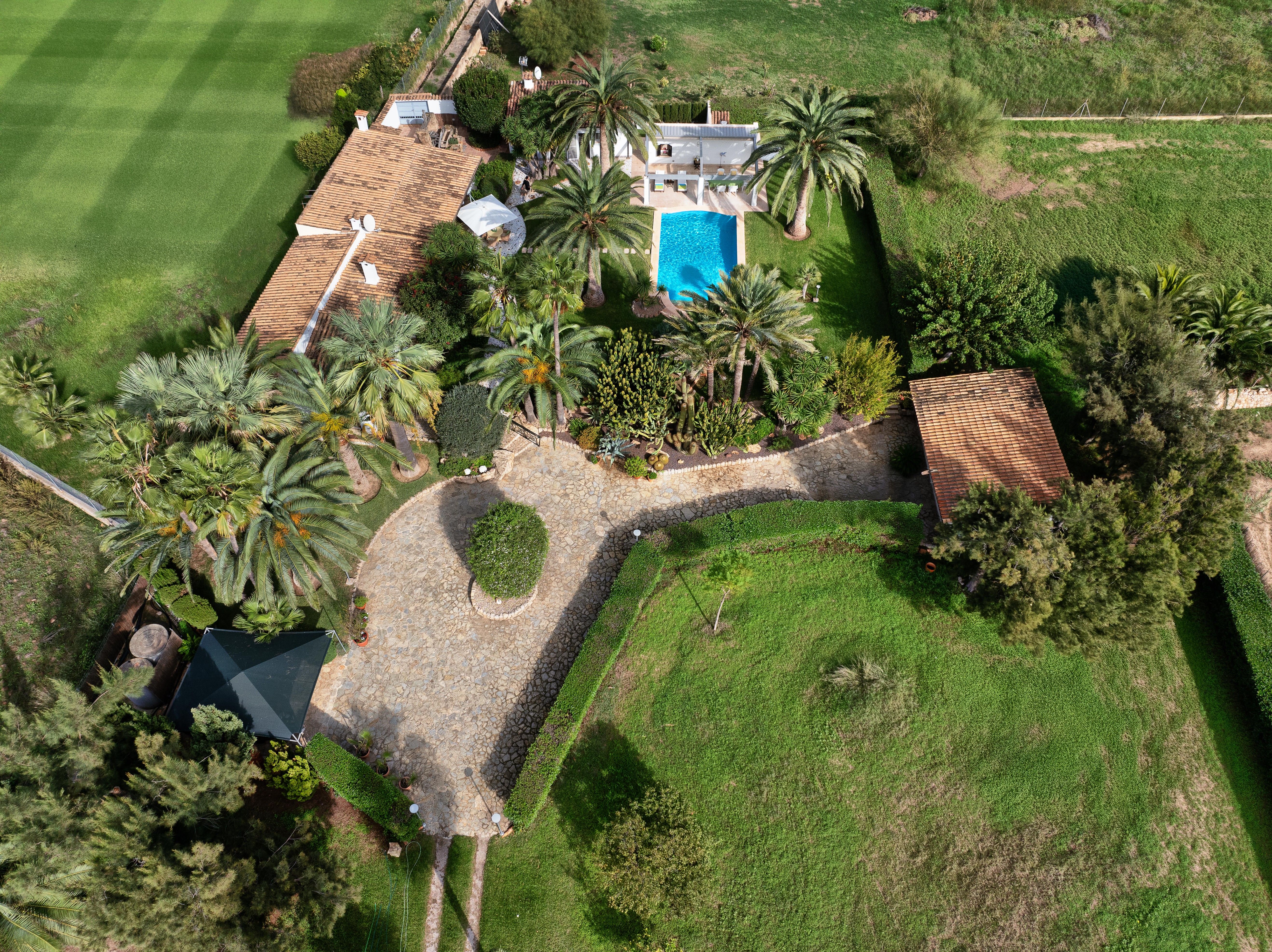 Type: Finca • Region: South West • Construction year: 1955 • Last restoration: 1998 • Total surface: 305 ㎡ • Total rooms: 5 • Bedrooms: 4 • Bathrooms: 4 • Living space: 248 ㎡ • Plot size: 8,071 ㎡ • Parking: 2 • Terrace • Guest Apartment • Kitchen • Fireplace • Air Conditioning • Swimmingpool • Guest toilet • Heating: Fully air-conditioned • Heating type: Oil • Floor type: Tiles, Stone