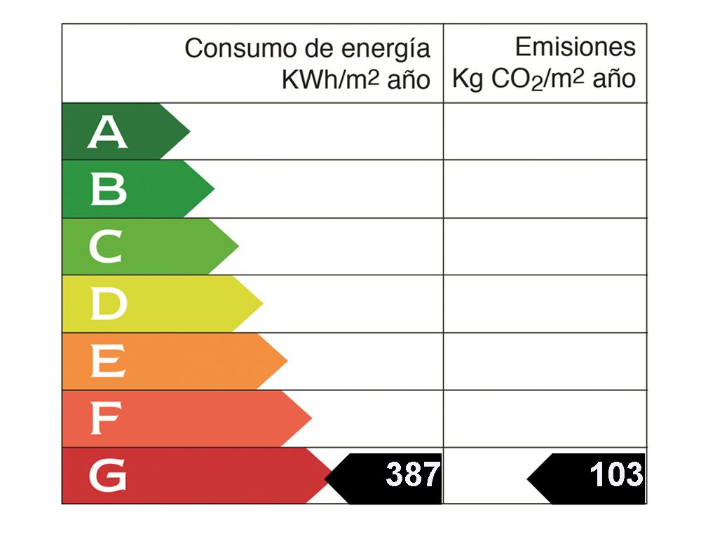 Year of construction: 1955 • Energy consumption value: 387.3 kWh/(m2*a) • CO2 emission: 103.2 kg/m2 • CO2 Emission Rating: G • Heating type: Oil • Energy efficiency rating: G