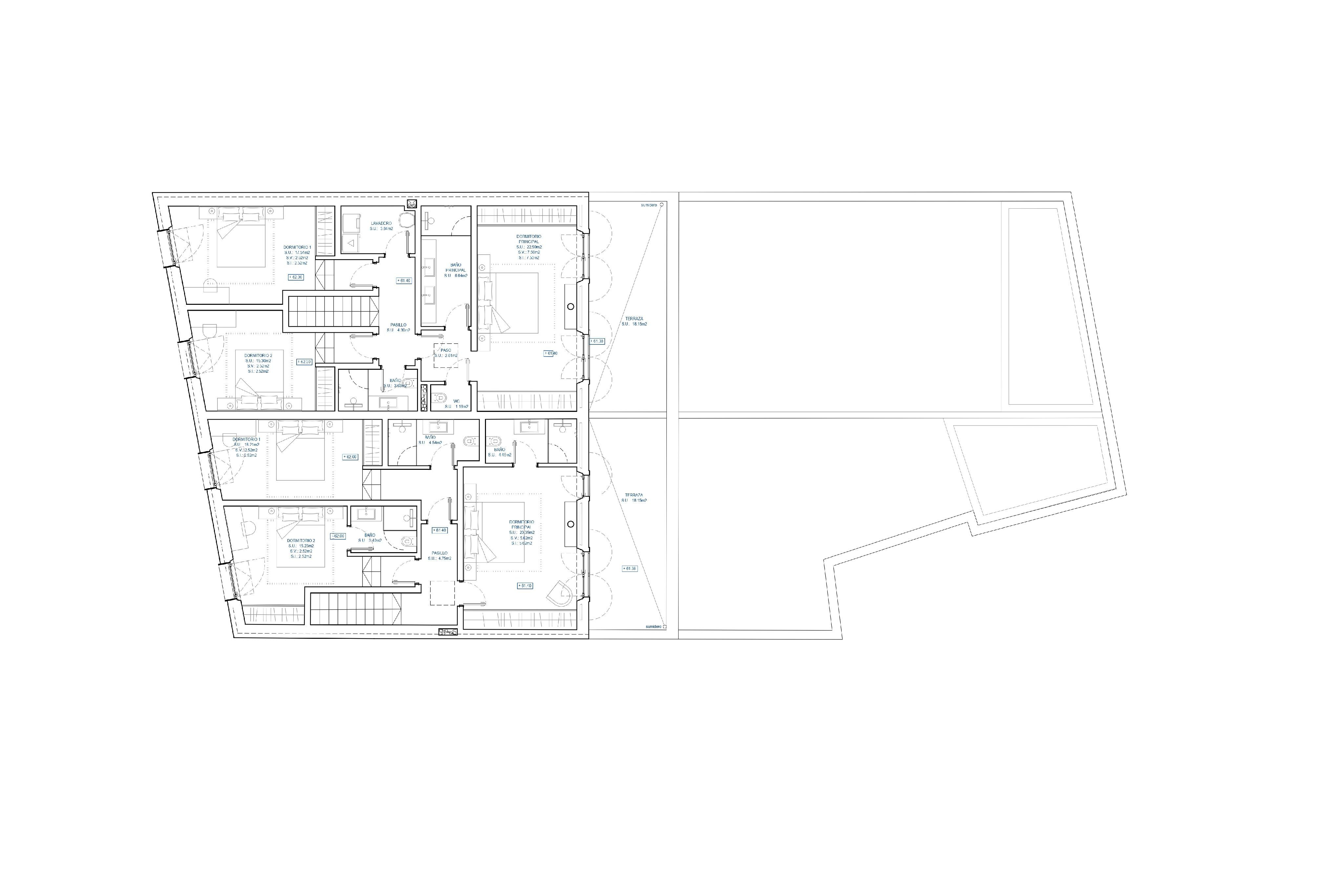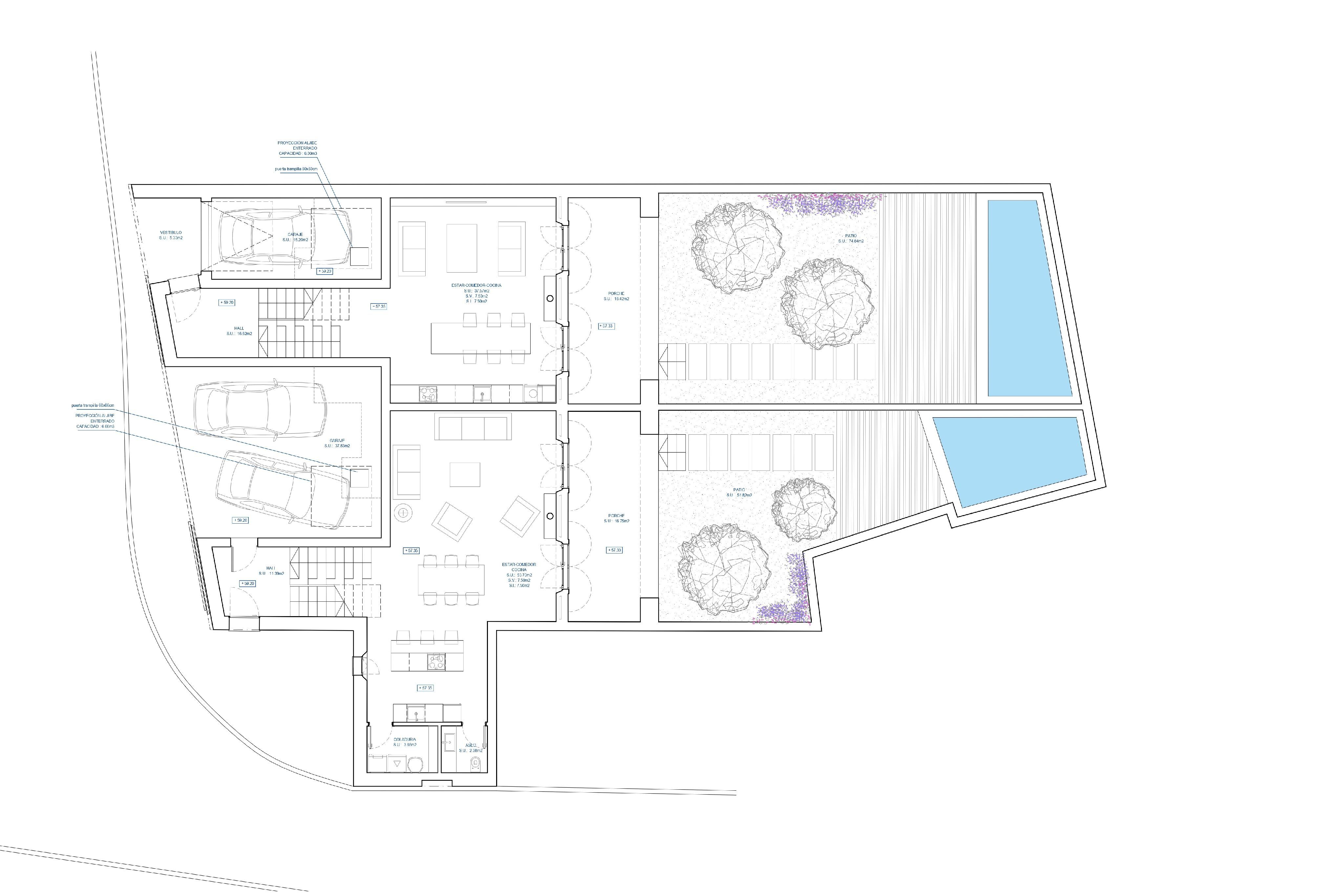There is a construction project for the building of two semi-detached houses, each with a living-dining area, three bedrooms, two bathrooms, a guest toilet, and storage space. For the outdoor area with a view of the landscape and the Tramuntana Mountains, a pool is planned. One half of the house is planned with a constructed area of approx. 215m2, the other with a constructed area of approx. 241m2. The license is in process and will be issued soon.