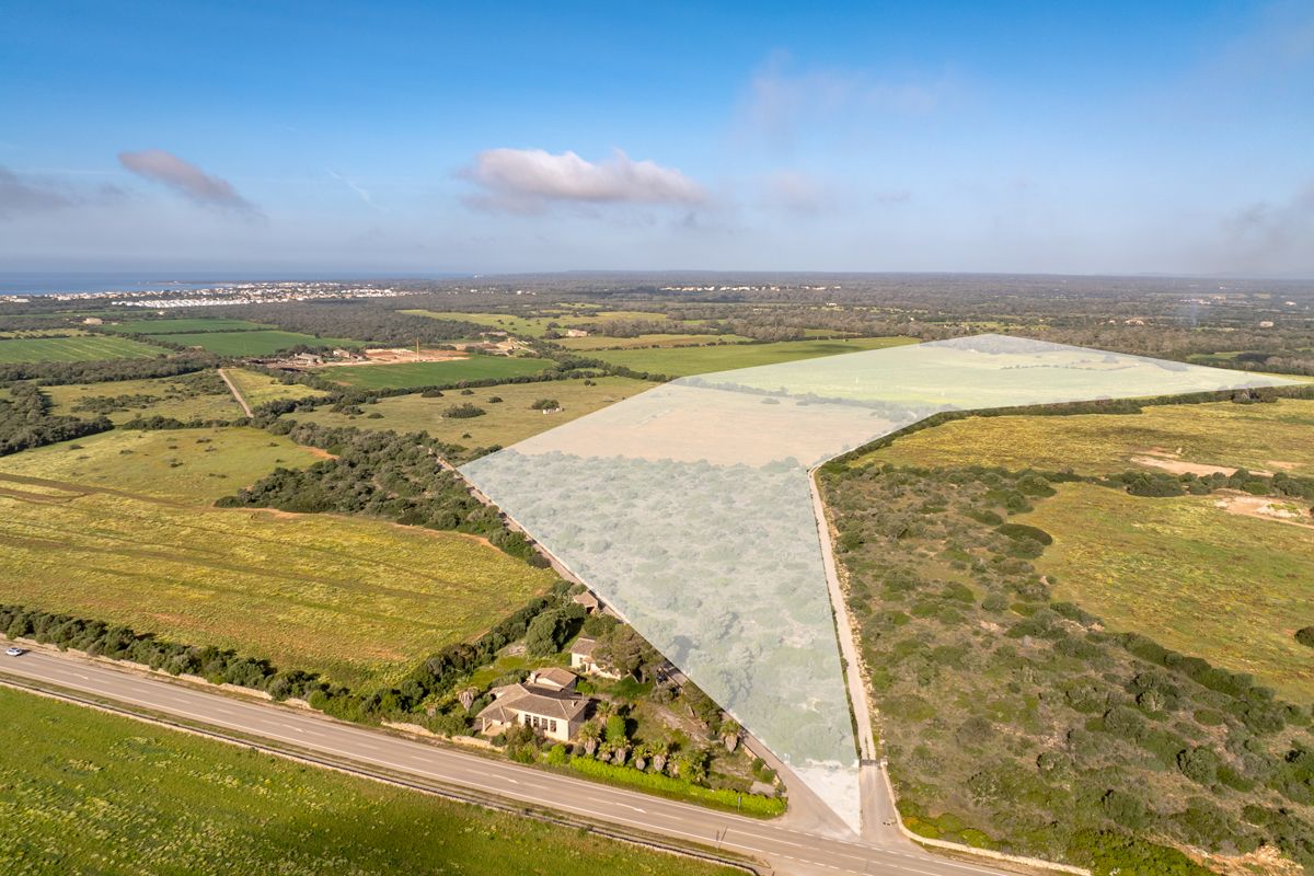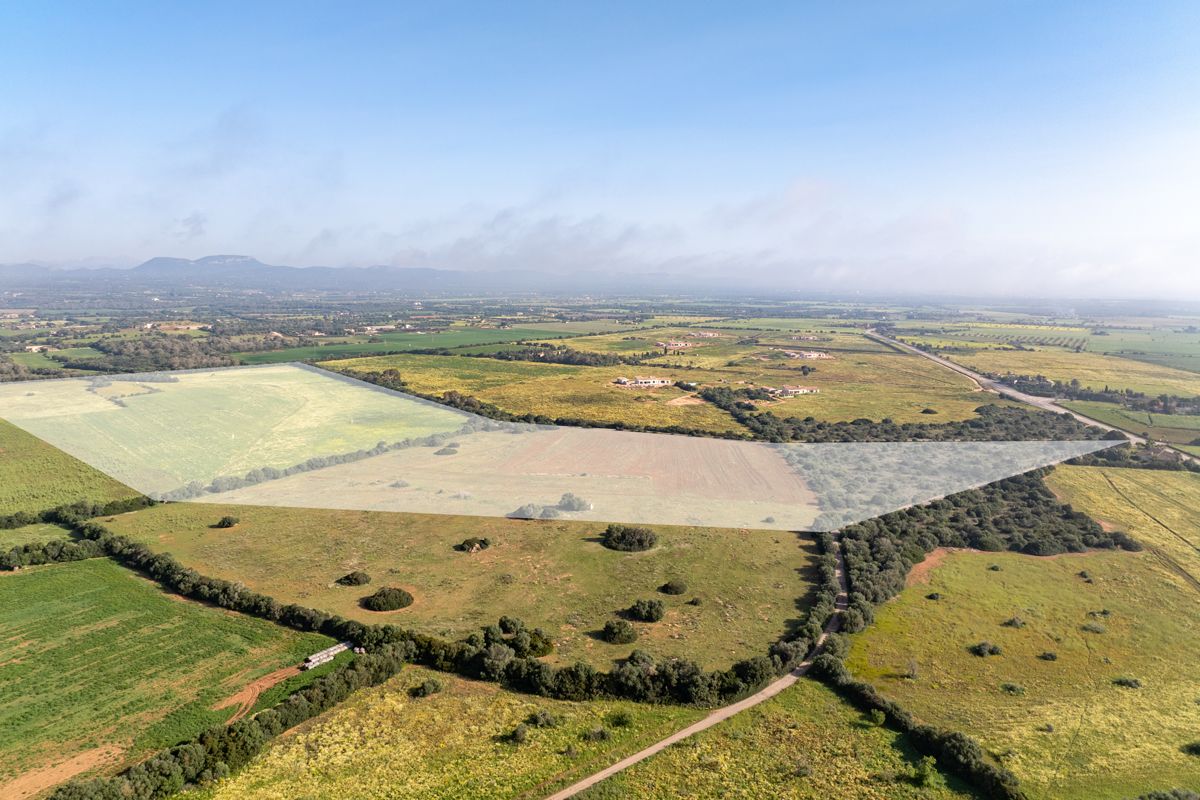 Just a few minutes by car from the well-known natural beach Es Trenc, this attractive building plot, measuring approximately 233,306 m², is situated in an absolutely quiet location. The marina of Sa Ràpita, located directly on one of Mallorca's most beautiful coastal sections with a view of the turquoise sea, is also just a few kilometers away. A building permit for an appealing project has already been granted. The construction of a single-story finca with a modern layout, approximately 467 m² in size, is planned. Access to the finca will be via an open terrace, connecting all living areas. The layout is planned as follows: an entrance area, a spacious living and dining area, a kitchen, a storage room, a utility room, four bedrooms – one with a dressing room – four bathrooms, a guest toilet, and a garage with space for three vehicles. The technical room is also to be housed in the garage. From the living area, one will reach a covered terrace that opens onto the sun terrace, where a pool of approximately 32 m² is planned. A legal well for water supply is already on site; an electricity connection is also available. Realize your dream of living in Mallorca with this exclusive project in a prime location – just minutes from Campos, the yacht clubs of Sa Ràpita and S’Estanyol, and some of the island's most beautiful beaches. The capital Palma and the international airport will be reachable in only about 40 minutes.