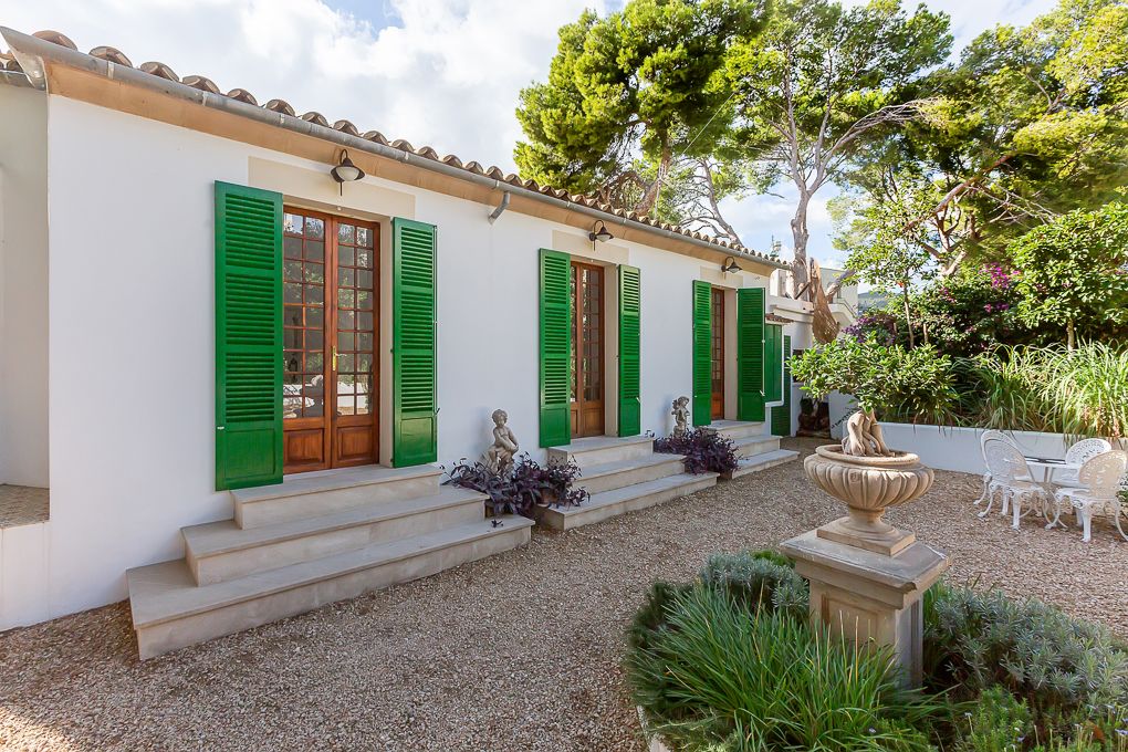 This wonderful property is within walking distance to Cala Major. It was built in 1930 and completely renovated in 2017, inside and outside, preserving the original character. The villa has a prestigious entrance with a well-kept garden of aromatic flowers. Through a beautiful staircase we reach the front area of the house where the pool is located and from where we have a beautiful view to the sea. The ground floor is divided into two living rooms, an open kitchen and a guest toilet. On the first floor we have 4 double bedrooms, 3 bathrooms (one en-suite) and a spacious living room. One of the bedrooms has a large terrace with stunning sea views. Next to the pool is a guest apartment with bedroom and bathroom.