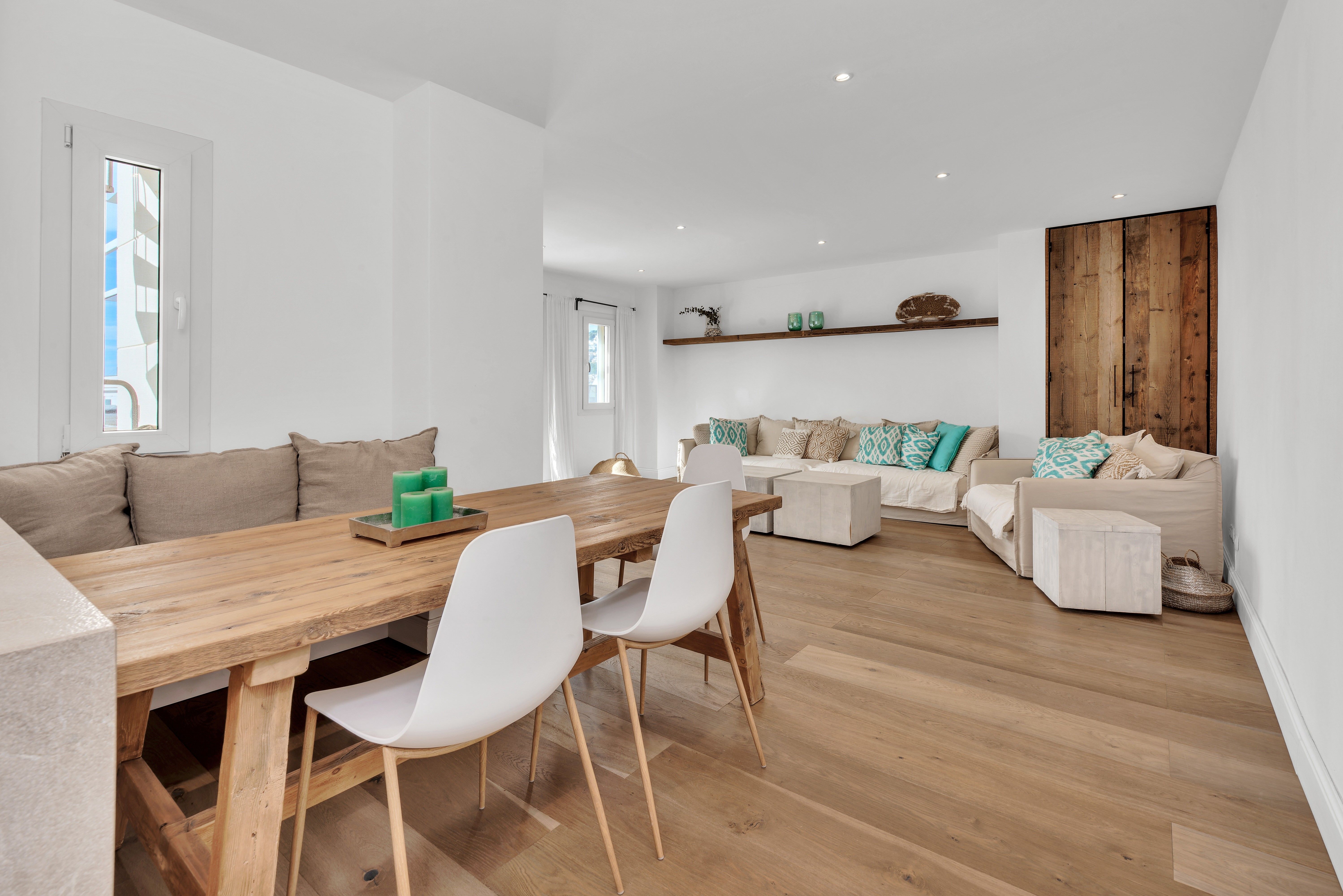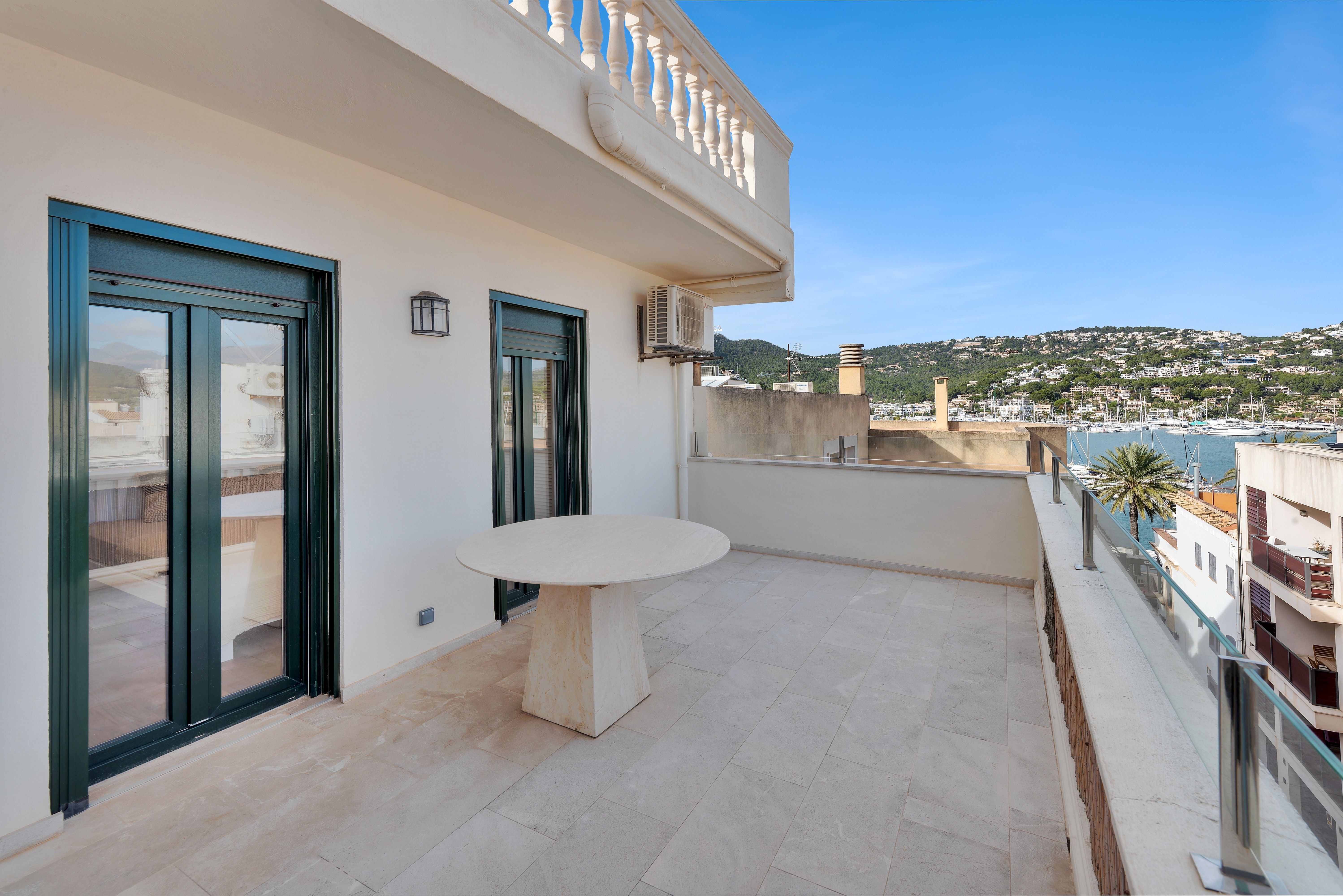 This completely renovated penthouse in the heart of Port Andratx impresses with its ideal southwest orientation and combines modern luxury with Mediterranean flair. The apartment has a total of 4 bedrooms and 3 bathrooms, 2 of them en suite, and offers a high level of comfort. The modern open kitchen blends seamlessly with the dining room and spacious living room, creating a bright and welcoming atmosphere. The living room opens directly onto the terrace, which offers the perfect space to spend hours relaxing outdoors. Another highlight is the roof terrace, with stunning views of the sea, the harbor and the surrounding mountains - a true retreat to end the day. The property has a garage space, which can be easily accessed by elevator. The central yet quiet location makes this penthouse particularly attractive: all the stores, cafes and restaurants of Port Andratx are just a few minutes' walk away, as is the idyllic harbor promenade, which invites you to take a relaxing stroll. A unique offer that combines modern living in a privileged location with an exclusive lifestyle. Other features include underfloor heating, air conditioning and a garage parking space.