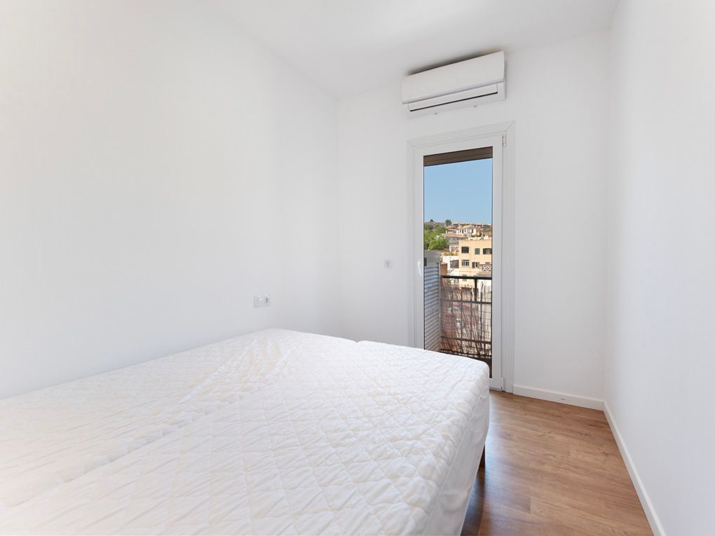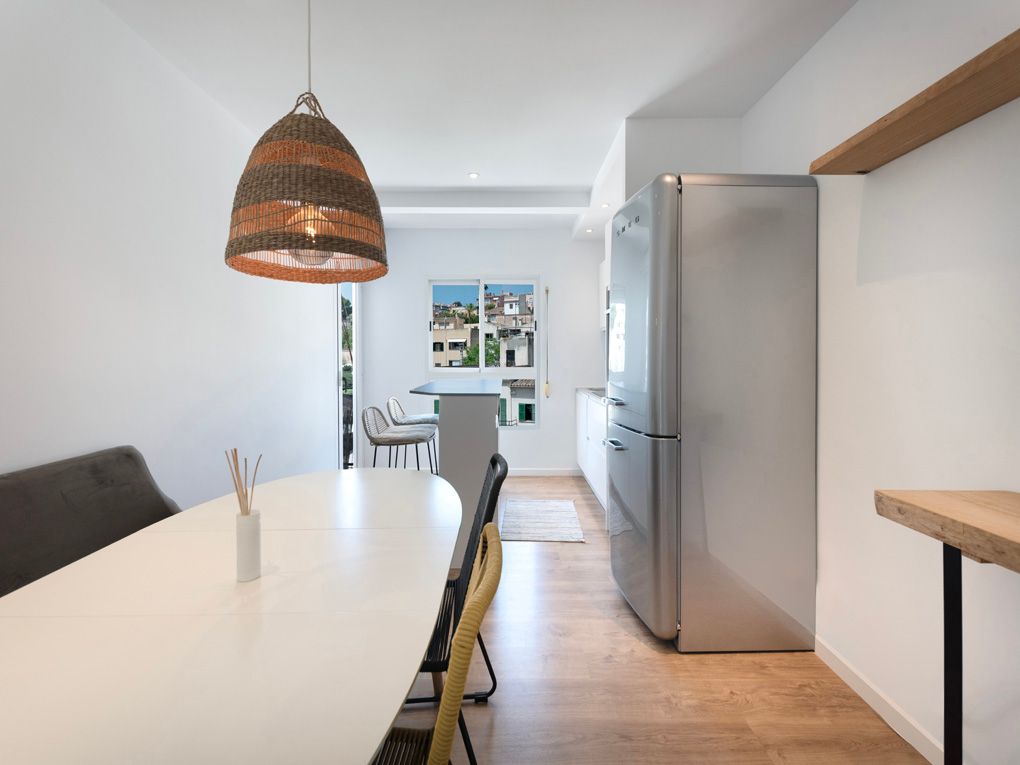In the heart of the emblematic El Terreno neighborhood, in Palma de Mallorca, is this bright renovated penthouse, a modern refuge with a Mediterranean soul. Located on the fifth floor, the property has been carefully renovated and offers a functional layout with two bedrooms, a full bathroom, an open kitchen with a dining area, a spacious terrace, and a balcony. From the terrace, there are clear views of the sea and the port; from the balcony, views of the park's greenery and the majestic Bellver Castle. Thanks to its orientation, the sun accompanies it throughout the day, creating a warm and welcoming atmosphere in every corner.