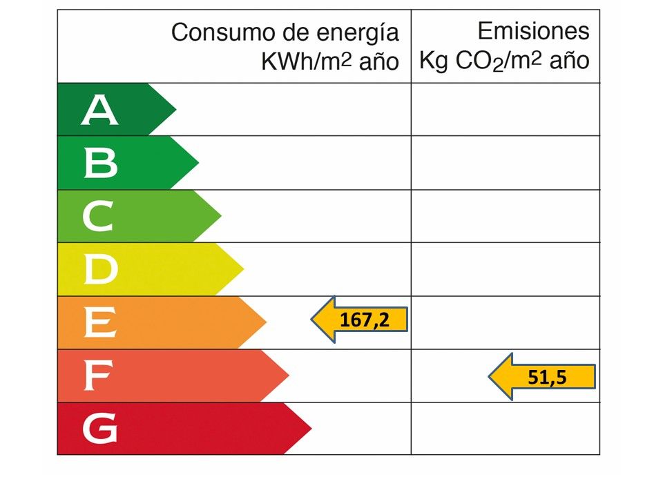 • Energy consumption value: 167.2 kWh/(m2*a) • CO2 emission: 51.5 kg/m2 • CO2 Emission Rating: F • Heating type: Electric • Energy efficiency rating: E