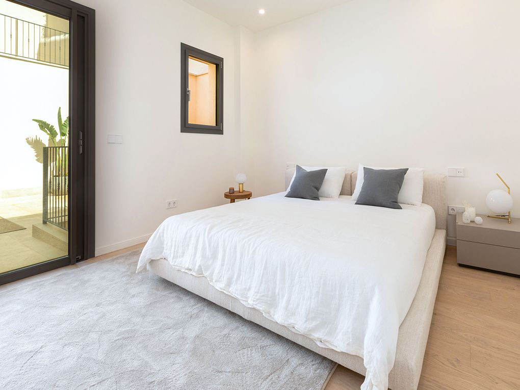 This exclusive townhouse boasts captivating sea views across the Bay of Palma and is ideally situated in one of the city’s most desirable neighbourhoods, El Terreno. Just steps away from Bellver Park, the vibrant district of Santa Catalina, the city centre, and the picturesque harbour promenade, the location offers the perfect blend of tranquillity and urban convenience.Spread over three levels, the property features generous terraces, a charming patio with Mediterranean vegetation, and a rooftop lounge complete with a plunge pool. From here, the panoramic views of the bay create a serene and luxurious retreat right in the heart of Palma.The architectural concept harmoniously combines contemporary design with Mediterranean elegance, resulting in a stylish and inviting atmosphere. Premium materials and exceptional craftsmanship are evident throughout the home. The townhouse includes 2 bedrooms, one bathroom and one WC, an open-plan living space with a fully equipped kitchen, and two underground parking spaces. Additional amenities include hot/cold air conditioning, underfloor heating, wooden and natural stone flooring, and top-quality fixtures and finishes.
