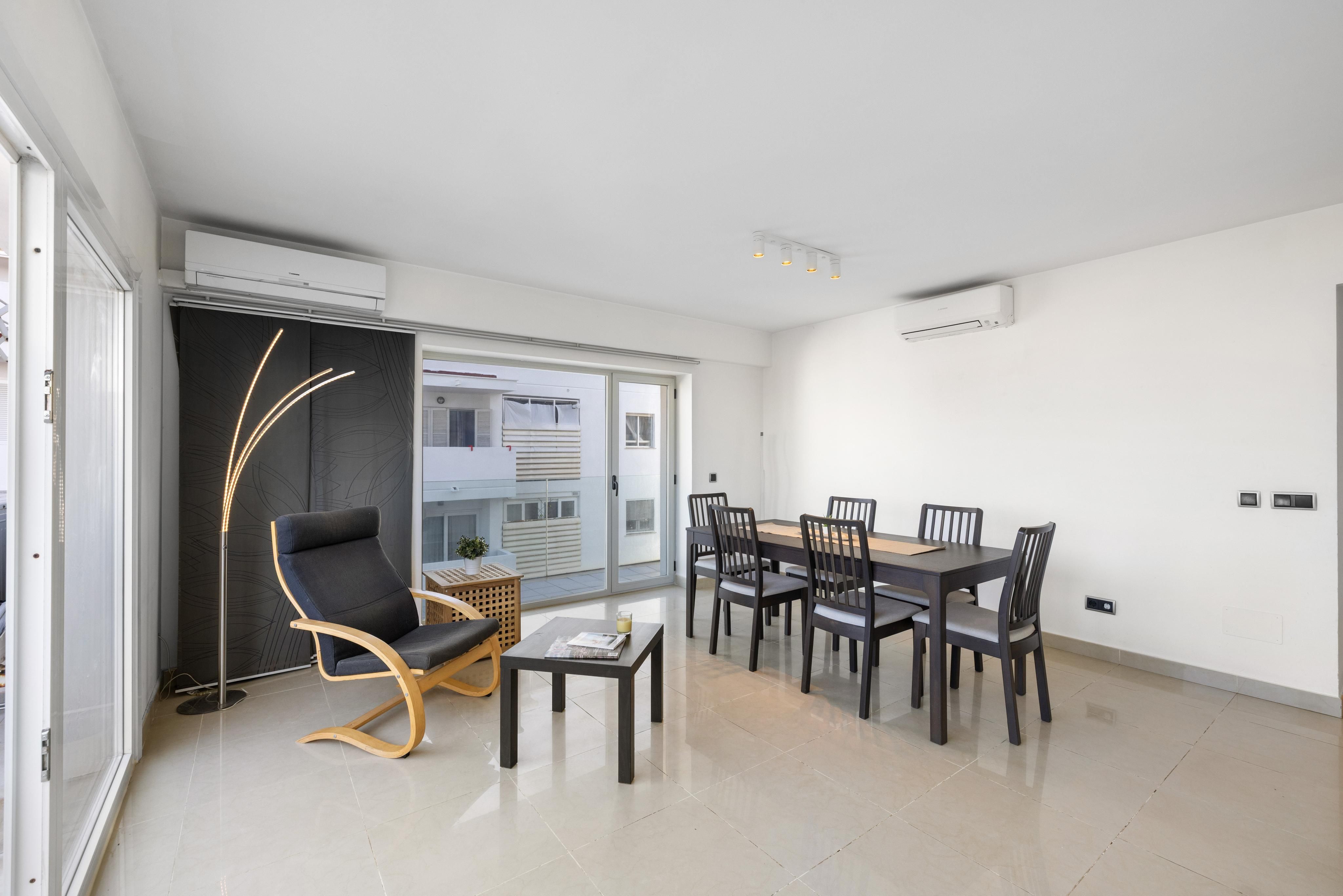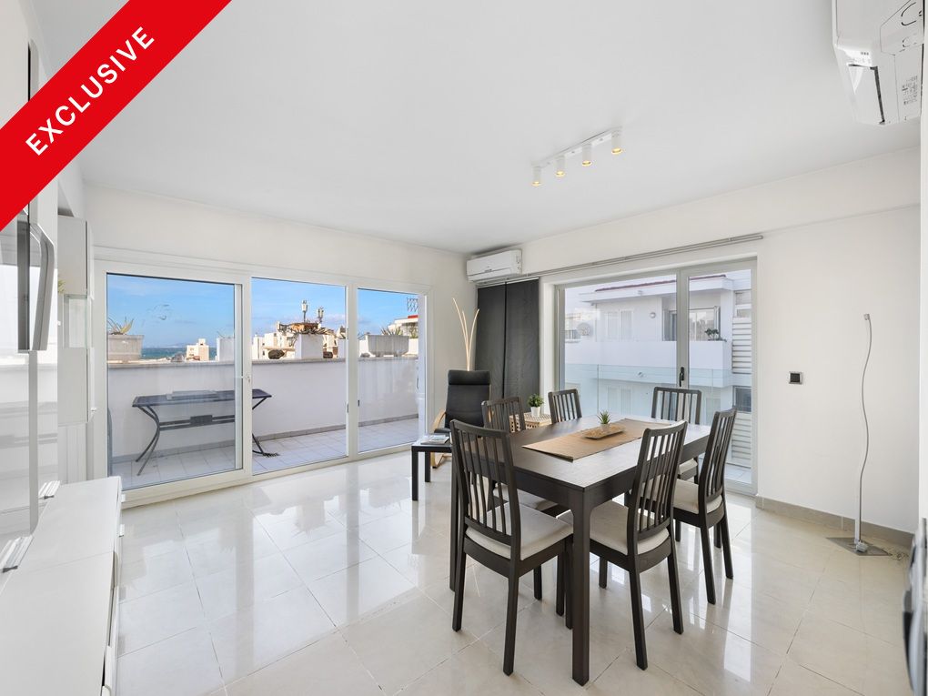 This bright apartment with access to a community pool and rooftop terrace is located in El Arenal, very close to the beach. The generous 97 sqm property features three bedrooms (the third of which can be used as an office), two bathrooms (including one en suite), and two terraces totaling 23 sqm, offering side sea views. The layout includes a fully equipped kitchen, a spacious living-dining area with direct access to a pleasant terrace, and two double bedrooms with built-in wardrobes. The kitchen and one of the bedrooms open onto the second terrace, which runs along part of the apartment and offers additional space to relax and enjoy the beautiful weather. Located in a building with a lift, the apartment also features hot/cold air conditioning, access to a communal swimming pool, and a shared rooftop terrace—ideal for sunbathing or taking in panoramic views. Ideally situated near essential services and infrastructure, and just a short drive from Palma and the airport, this property is perfect for those looking to enjoy the sea, scenic coastal walks, and the lively promenade with its wide variety of bars and restaurants.