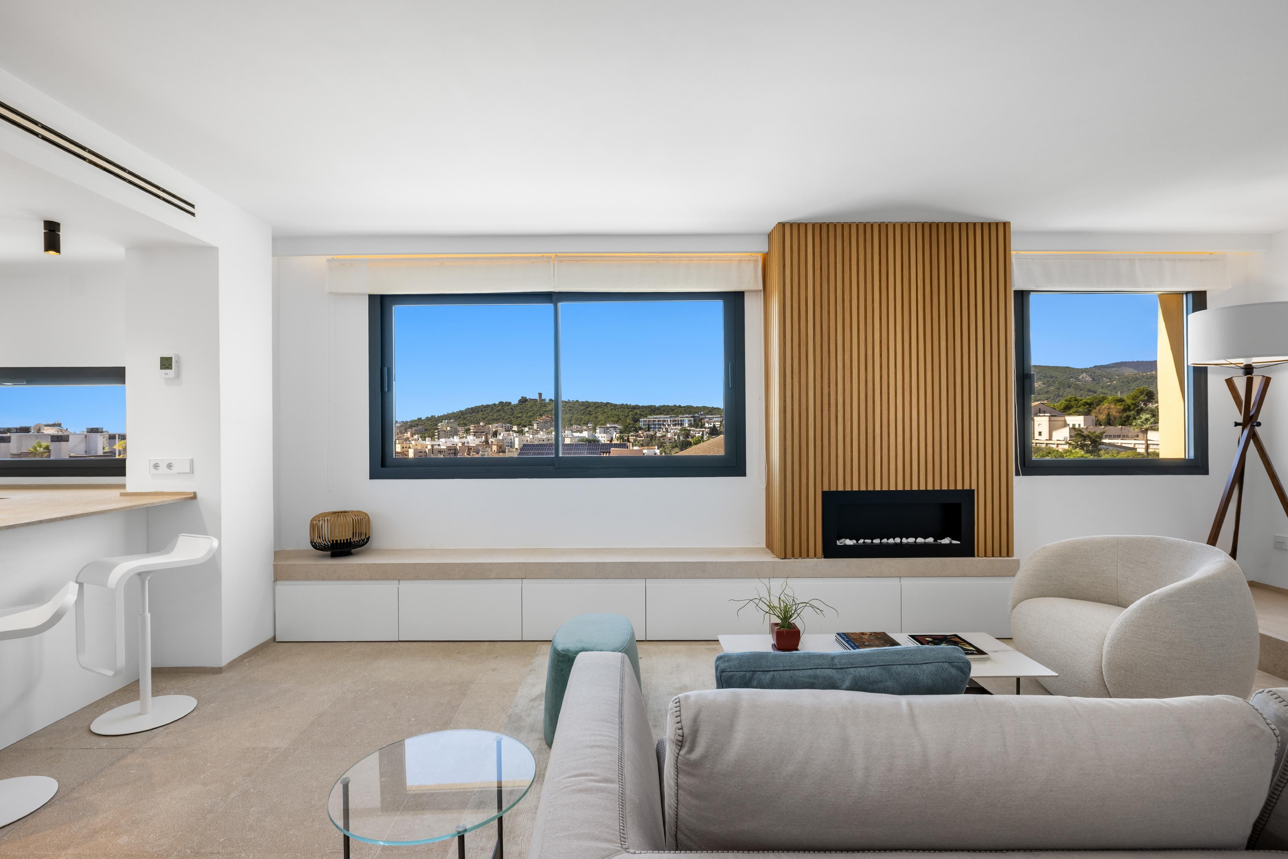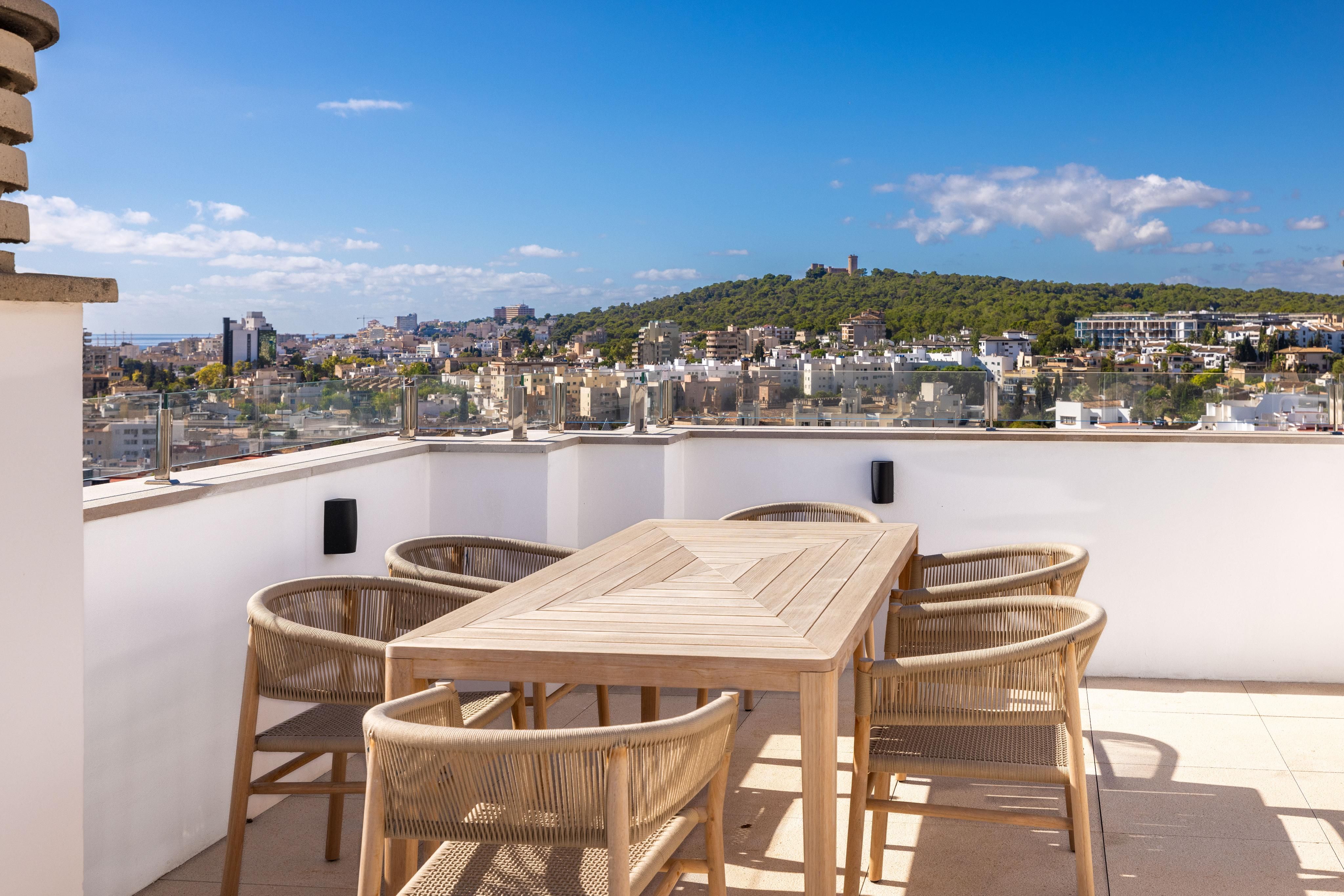 Type: Penthouse • Region: Palma • Construction year: 1980 • Last restoration: 2025 • Total surface: 155 ㎡ • Total rooms: 4 • Bedrooms: 3 • Bathrooms: 4 • Living space: 130 ㎡ • Parking: 2 • Kitchen • Fireplace • Elevator • Furnished • Barrier-free access • Guest toilet • Heating: Underfloor heating, Split air-conditioned, Ducted air-conditioned • Heating type: Gas • Floor type: Stone