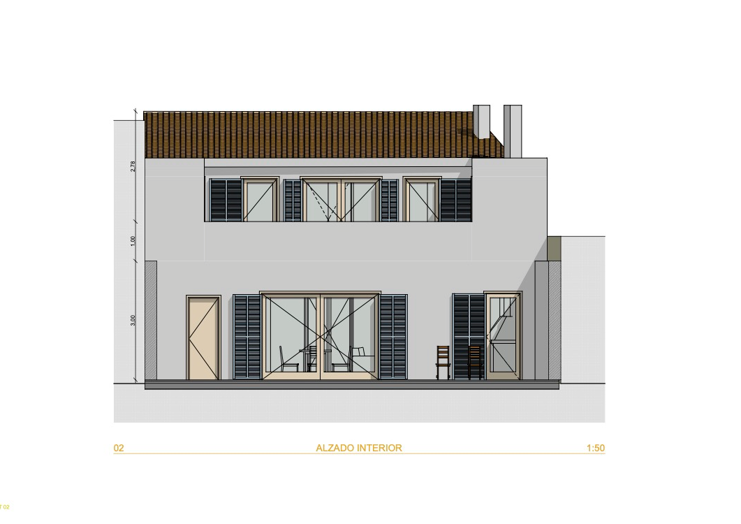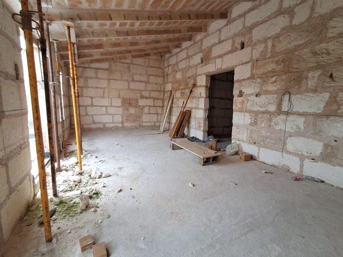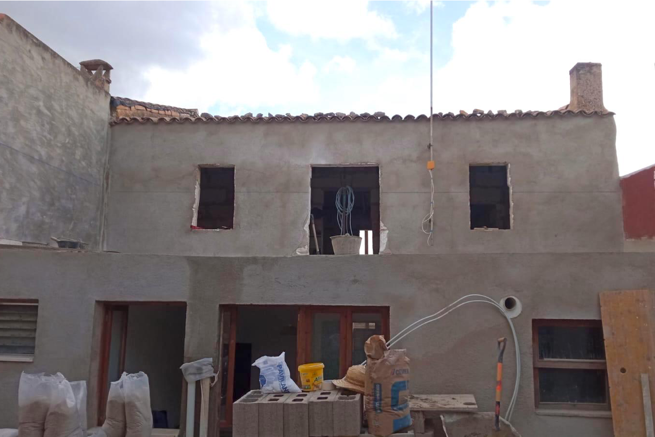 This centrally located townhouse with a garden in the authentic town of San Lorenzo in the northeast of Mallorca offers plenty of space for your own ideas. An approved expansion project is already available for the gutted house, which is being sold as-is. After the expansion plans are implemented, the property of 176 m² will feature a friendly and bright townhouse with a built area of about 200 m² and a living area of 154 m². The ground floor, with approximately 100 m² of living space, provides access to a garden where, according to the plans, a 12 m² pool could also be built. In addition to a spacious entrance area, the ground floor will include a living area, kitchen, dining room with a fireplace, and a guest room. The upper floor, with about 54 m² of living space and high ceilings, contains the sleeping area. Additionally, a balcony terrace of approximately 33 m² is planned. A special feature is the planned elevator that will conveniently connect the ground floor and upper floor, making the property ideal as a retirement residence.