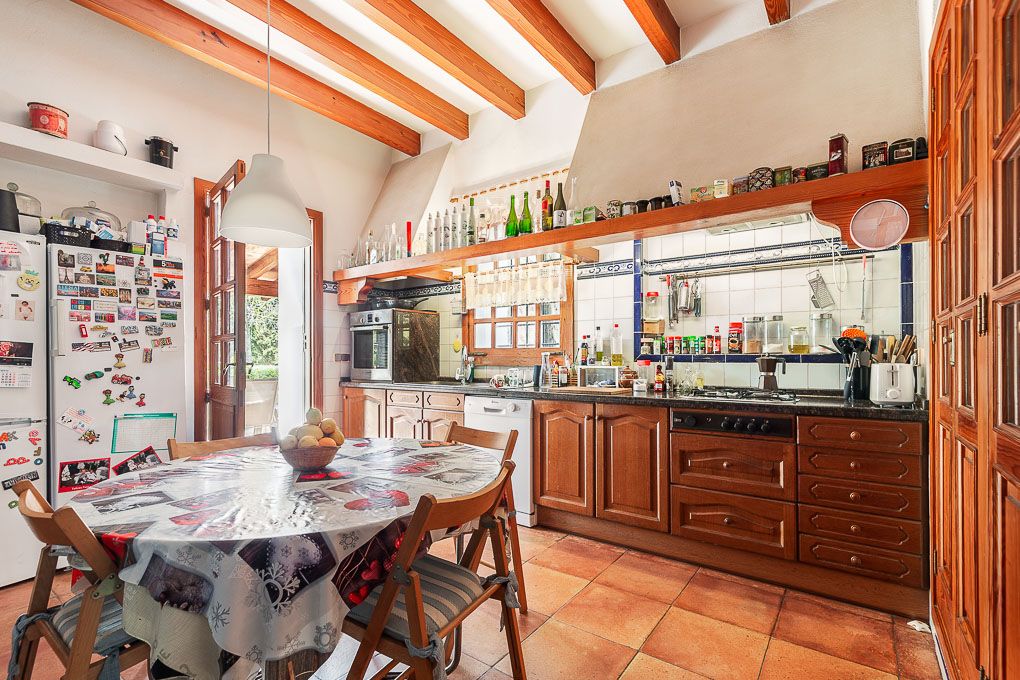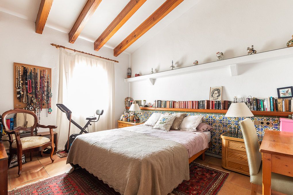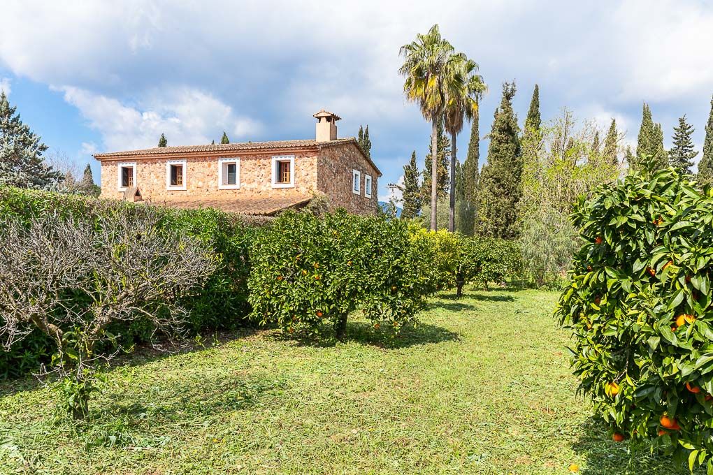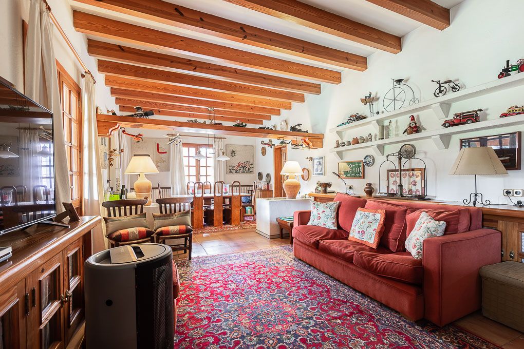 This finca is located close to the village, so one can easily get there on foot or by bike. The house was built in the late 80s, very solid, with natural stone walls, and very traditional in design. In addition to the main building, the well-maintained property has a garage, another annexe and a swimming pool. In the garden are partly very old trees, and overall, it is kept very private.