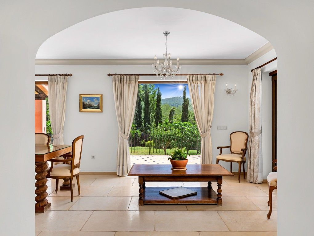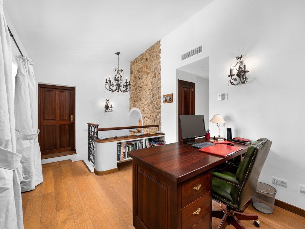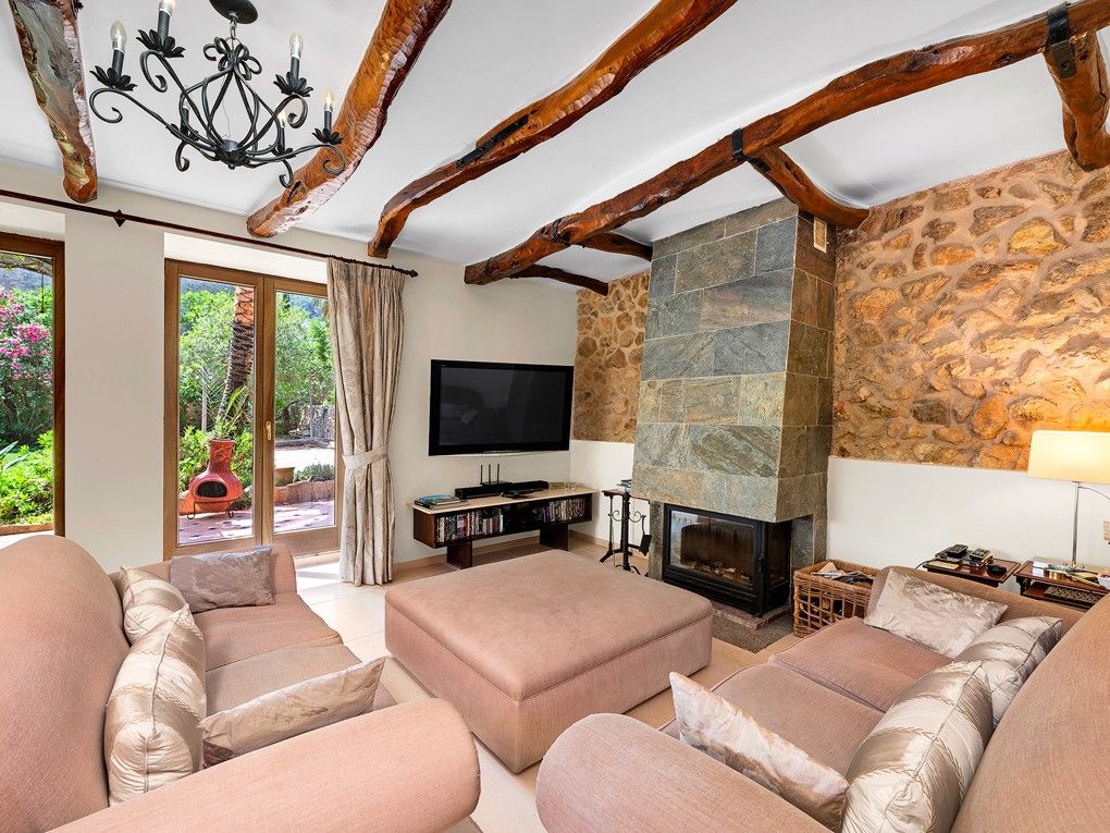 This traditional finca, located within a 10-minute walk of the charming village of S'Arracó and nestled in the breathtaking mountains of the Sierra de Tramuntana, offers a perfect blend of historic charm and modern luxury. The property has been completely reformed while maintaining the original character of the 100-year-old dwelling. When entering the property there is an inviting entrance hall with beamed ceilings, a cozy wood-burning fireplace and exposed stone walls. The Jerusalem limestone flooring with underfloor heating adds a touch of elegance and warmth while the fully integrated air conditioning ensures comfort all year round. The hall leads to the first floor which is covered with solid Havana oak flooring enhancing the traditional yet sophisticated ambiance. The finca features a study area with full internet connectivity and fibre optic, making it perfect for both study and remote work. The master bedroom suite offers an ensuite bathroom and a private terrace overlooking the garden and mountains, providing a serene retreat. Two additional bedrooms, each with their own ensuite bathroom, ensure ample space and privacy for family and guests. Set in beautifully mature gardens, the property includes an orchard with a variety of fruit trees, adding to its charm and appeal. The finca also boasts its own well, a water softener, and an efficient irrigation system, ensuring lush greenery all year round. This superbly reformed finca offers a unique opportunity to experience the perfect harmony of tradition and modernity in a stunning location. Further features include solar panels that heat domestic hot water and an electric water heater, garage for 2 cars and car parking for more than 20 cars.