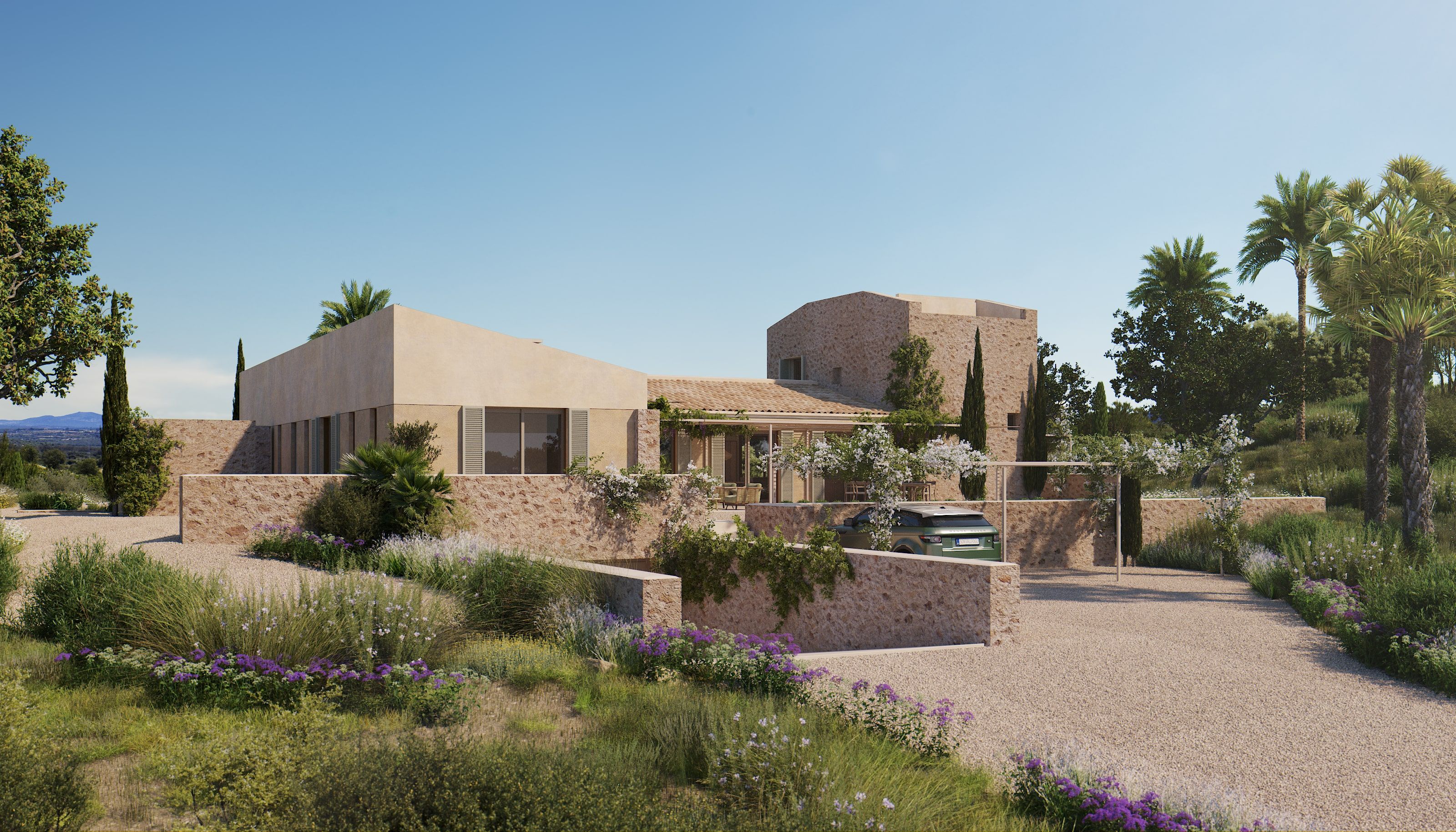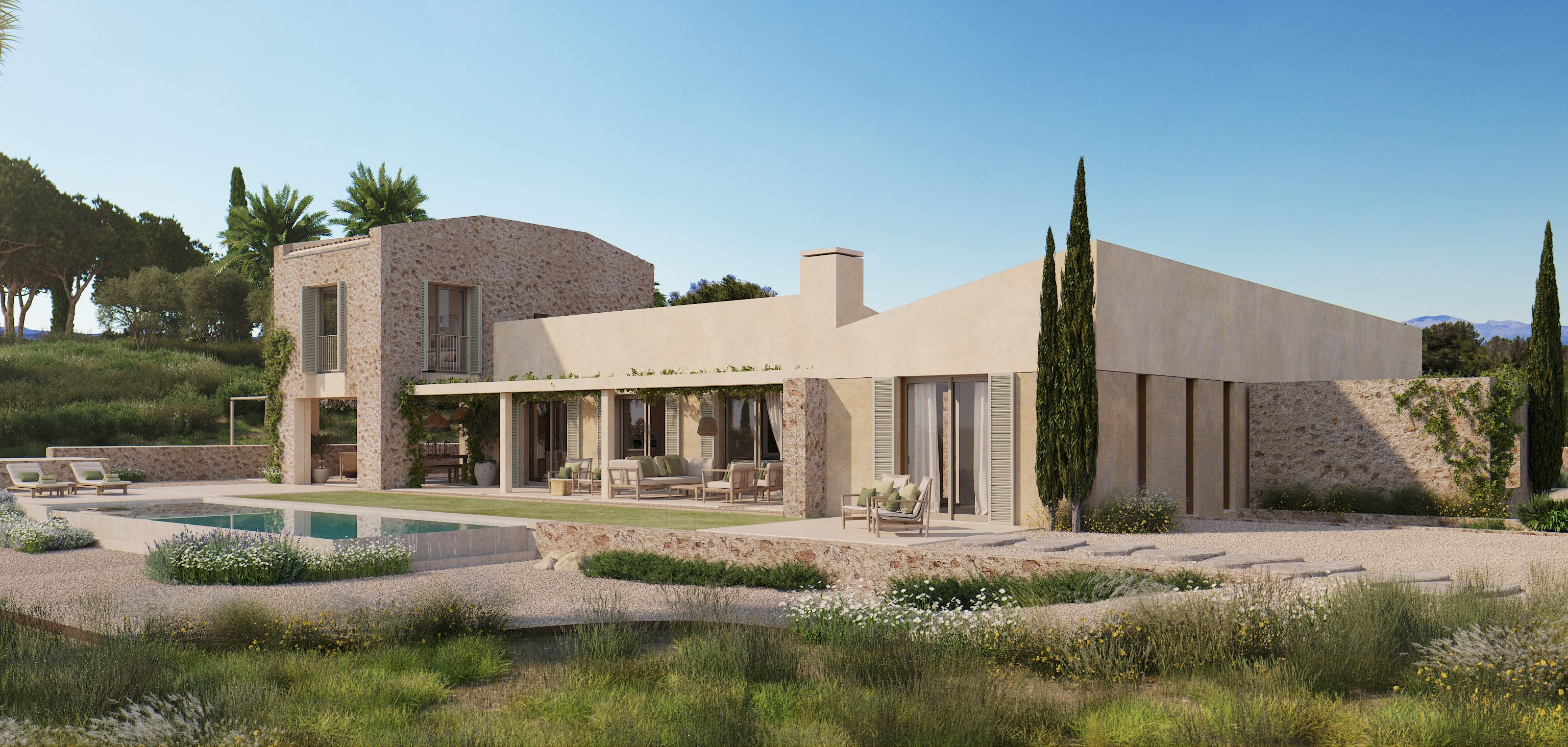 Type: Finca • Region: Central • Construction year: 2026 • Last restoration: • Total surface: 466 ㎡ • Total rooms: 5 • Bedrooms: 4 • Bathrooms: 6 • Living space: 466 ㎡ • Plot size: 1,7 ㏊ • Parking: 3 • Terrace • Kitchen • Fireplace • Swimmingpool • Heating: Central heating, Underfloor heating, Ducted air-conditioned • Heating type: Heat Pump • Floor type: Stone