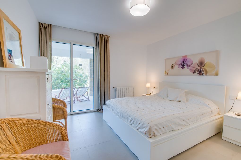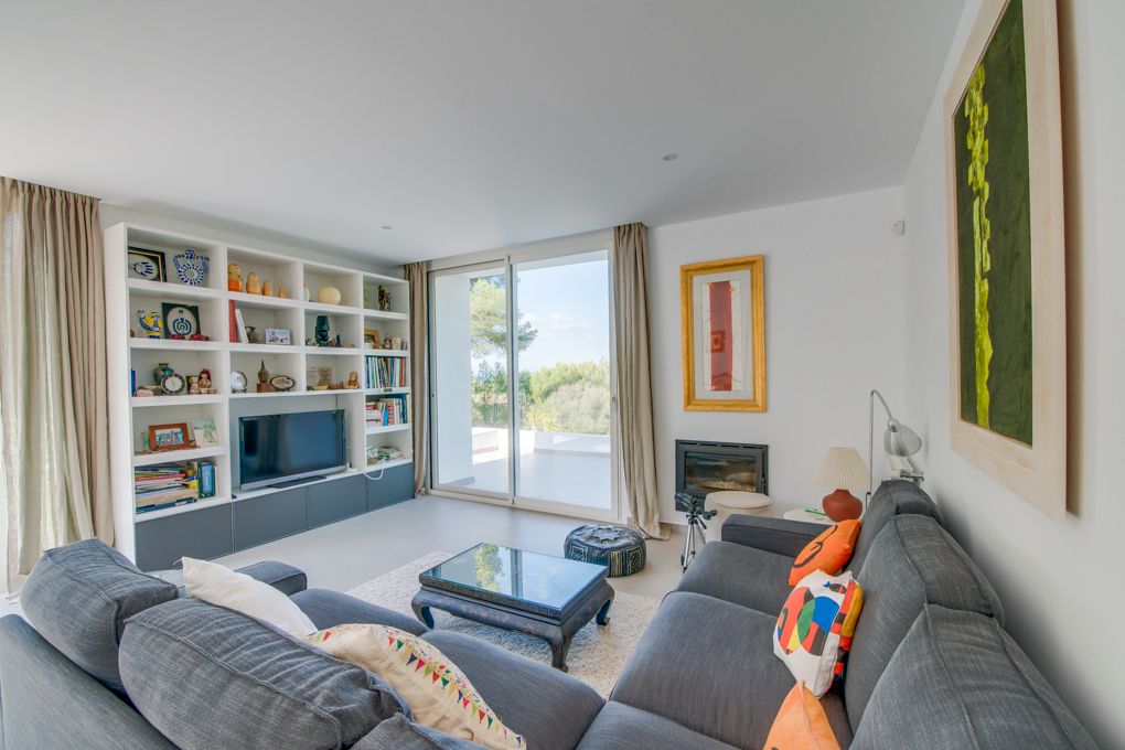 This detached villa is located in a quiet residential area of Betlem on a plot of just over 1,000 m². Nestled in the typical landscape of the Llevant region in the northeast of Mallorca, the property offers plenty of tranquility, sun, and privacy. A place where you arrive and instantly unwind. Between 2016 and 2019, the house was extensively restored. The Ibizan style is reflected in bright rooms, clear shapes, and natural materials. Everything appears open, friendly, and well thought out, without being overloaded. The atmosphere is modern, yet warm and very Mediterranean, just as one would wish on Mallorca. The total built area is approximately 325 m², of which about 250 m² is living space. The villa has four bedrooms and three bathrooms. The layout is practical and pleasant, both for personal use and for guests or holiday rentals. A covered porch on the ground floor extends the living space outdoors and provides a sheltered place for meals or relaxing hours in the open air. The outdoor area is designed to be low-maintenance and geared towards relaxed island living. The swimming pool forms the centerpiece of the outdoor area and invites you to spend many hours in the sun. Above the pool is a beautiful chill-out area, ideal for reading, unwinding, or long summer evenings. A space that inspires you to live outside and enjoy the Mallorcan lifestyle. A garage on the ground floor is also available. A special added value is the existing rental license for eight people. This makes the property suitable both as a private holiday residence and as an attractive investment.