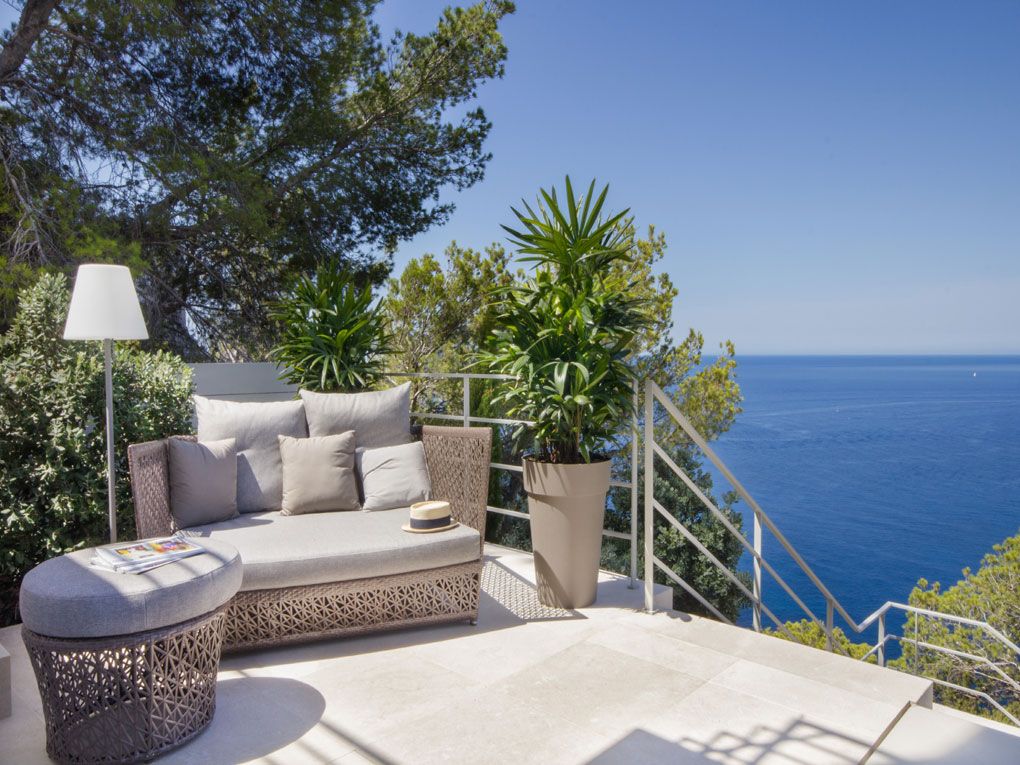 Located on a beautiful plot on the slopes of Cala Llamp, this property provides a breathtaking panoramic view, allowing you to watch the sun setting over the sea all year long – whether over Sa Dragonera in summer or over Ibiza in winter. And yet from the inside one also has magnificent views.