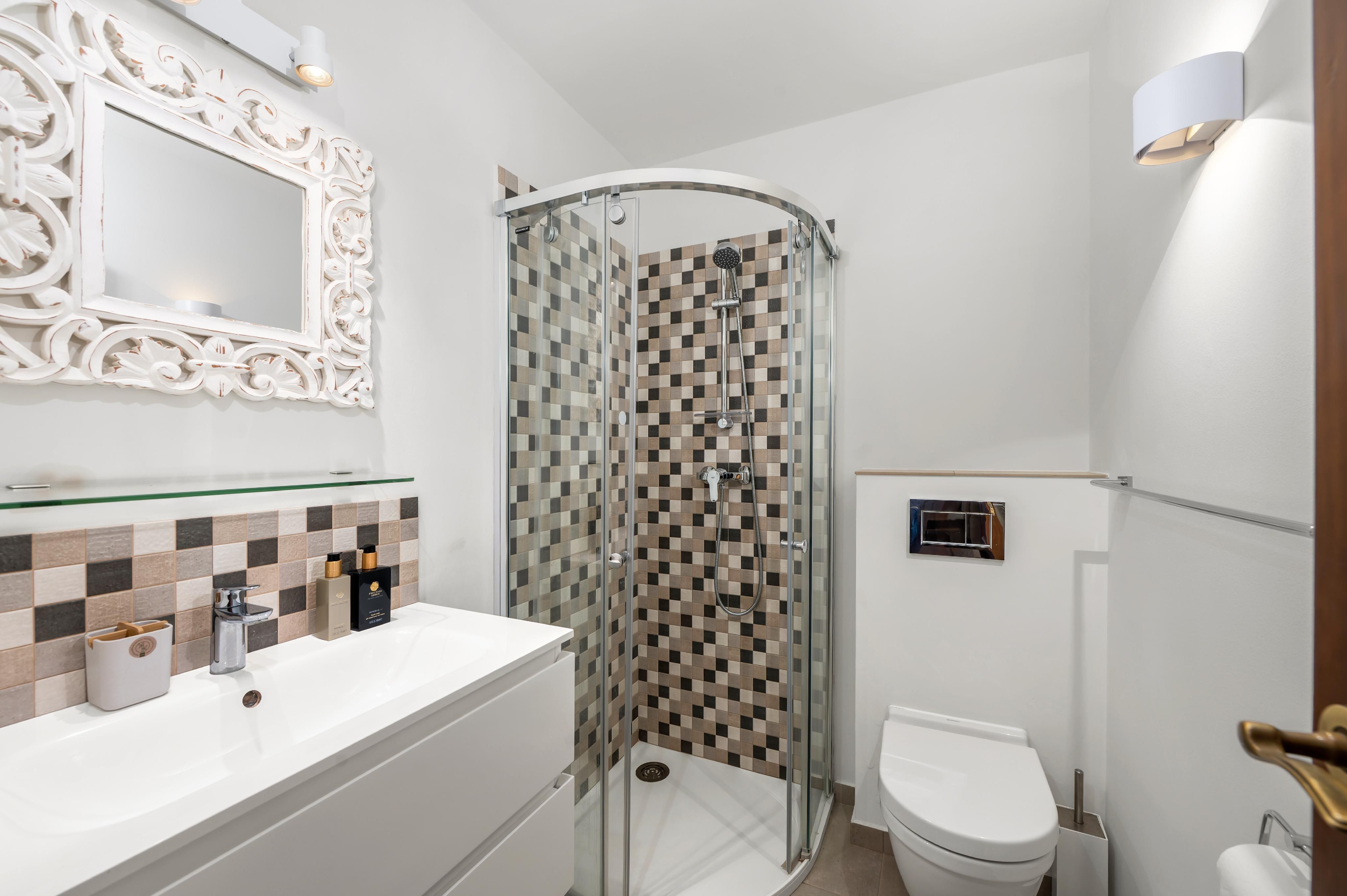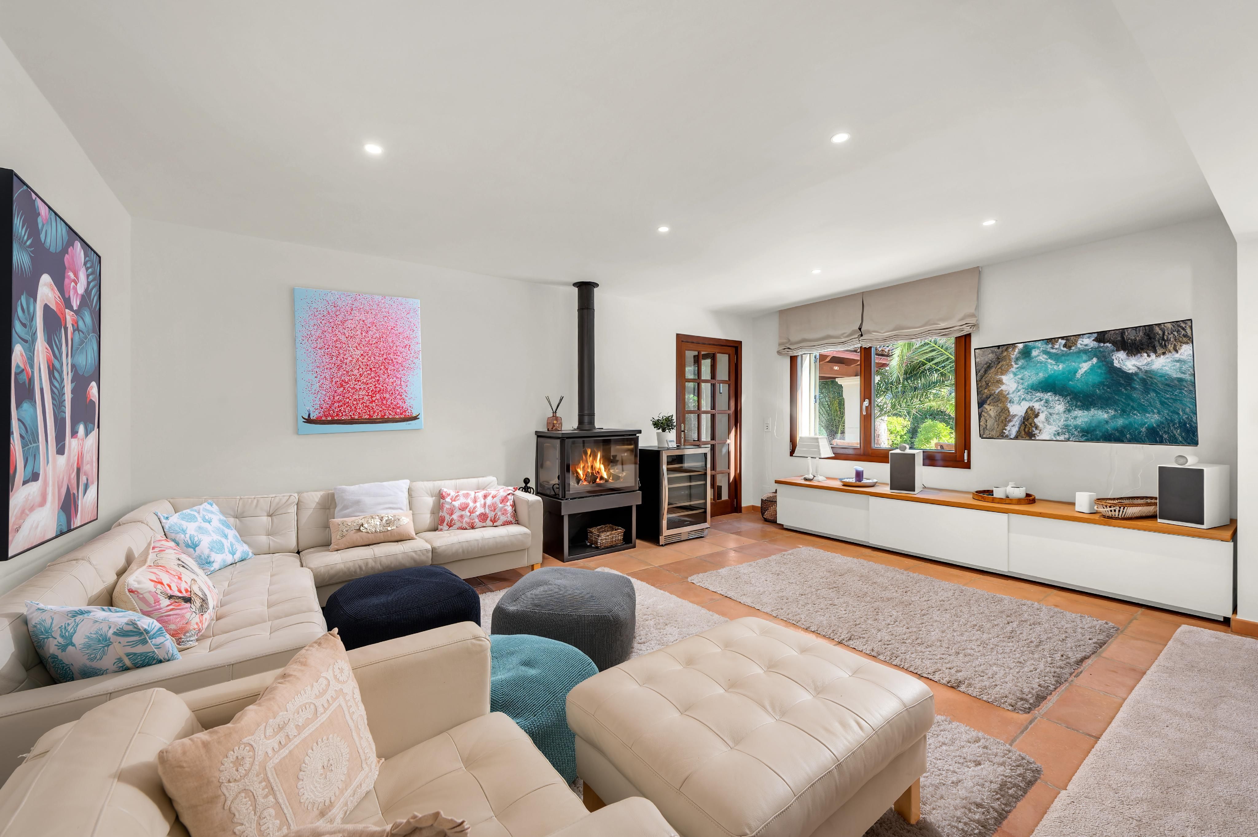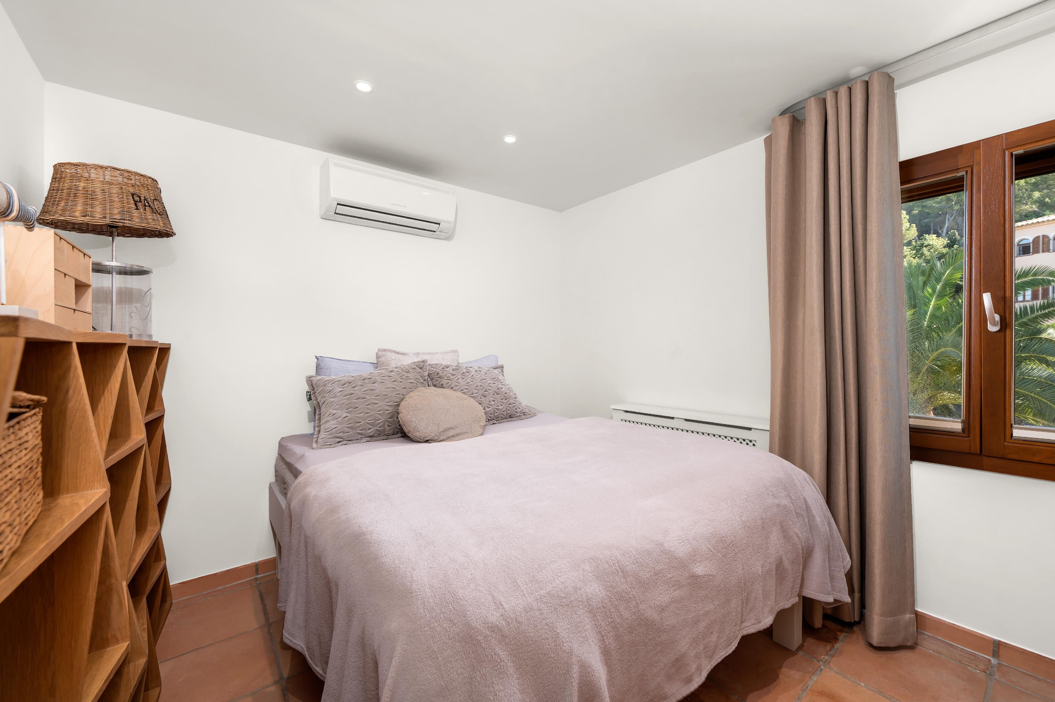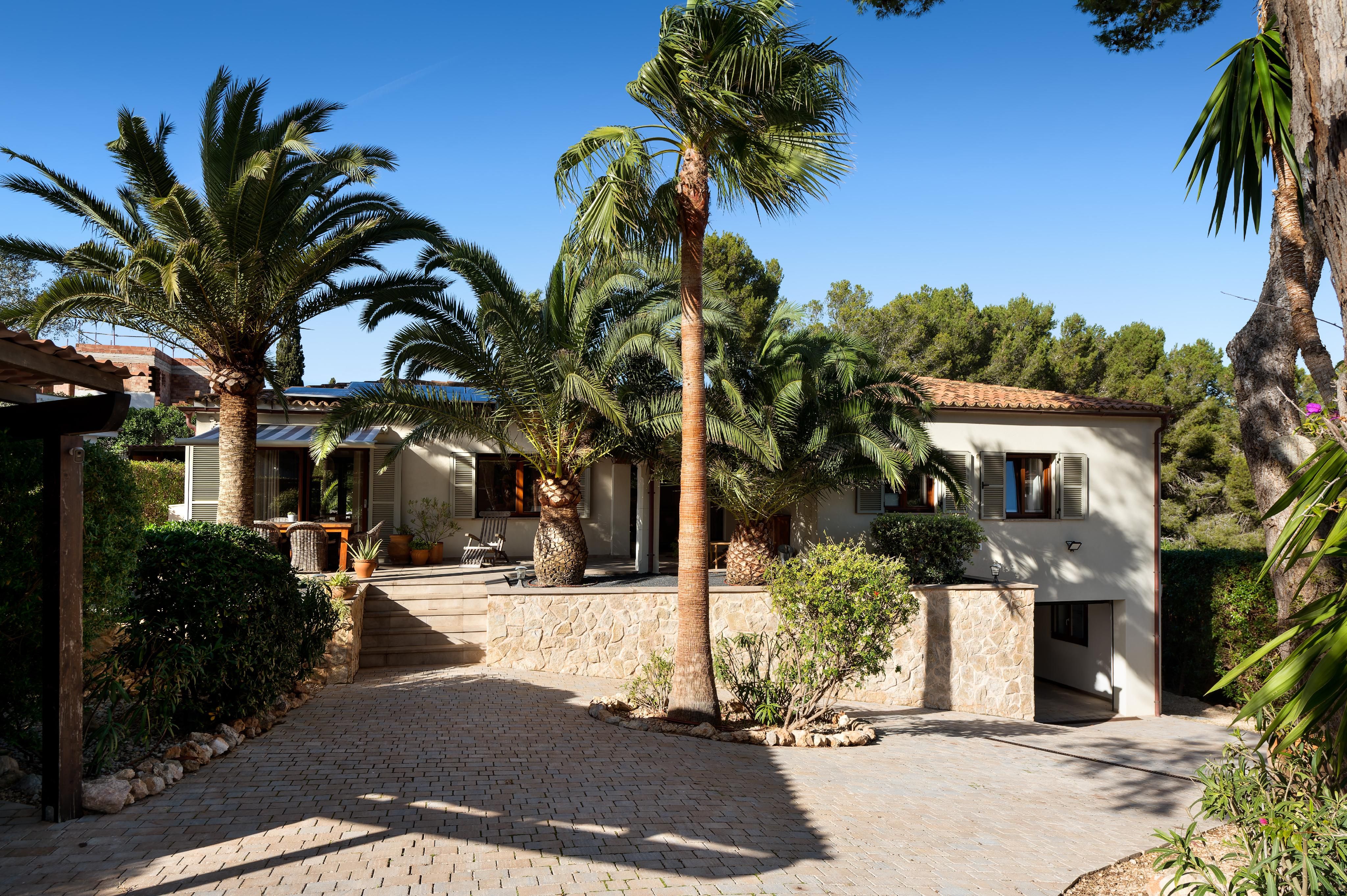 This recently high-quality renovated bungalow-style villa is located close to the town center in a quiet and highly sought-after residential area of Santa Ponsa. Inside, the villa impresses with a spacious living and dining area offering direct access to the covered terrace as well as the beautiful garden and pool area. The property features three bedrooms, including one with a walk-in dressing area and an en-suite bathroom, an additional bathroom, and an attractive front patio. Furthermore, there is a guest studio with its own bathroom, a laundry room, a spacious garage with a separate storage room, and an additional equipment room. The comprehensive renovation includes, among many other features, complete interior and exterior insulation, property drainage, a new driveway and garage door, high-quality new wooden windows, a saltwater swimming pool, a solar installation, an ice bath barrel with electric cooling, and much more. Additional features include air conditioning (hot/cold), oil-fired central heating, and a wood-burning stove. An all-around fantastic home, ready to welcome its new owner.