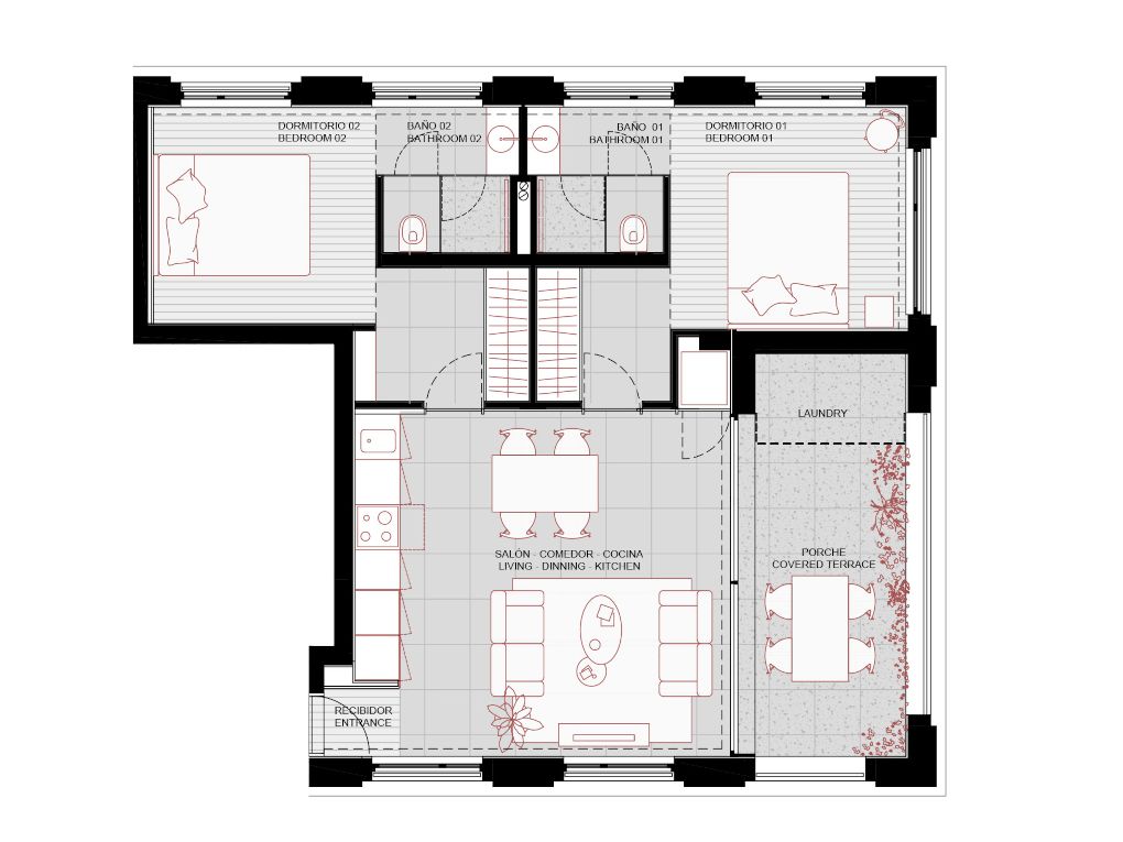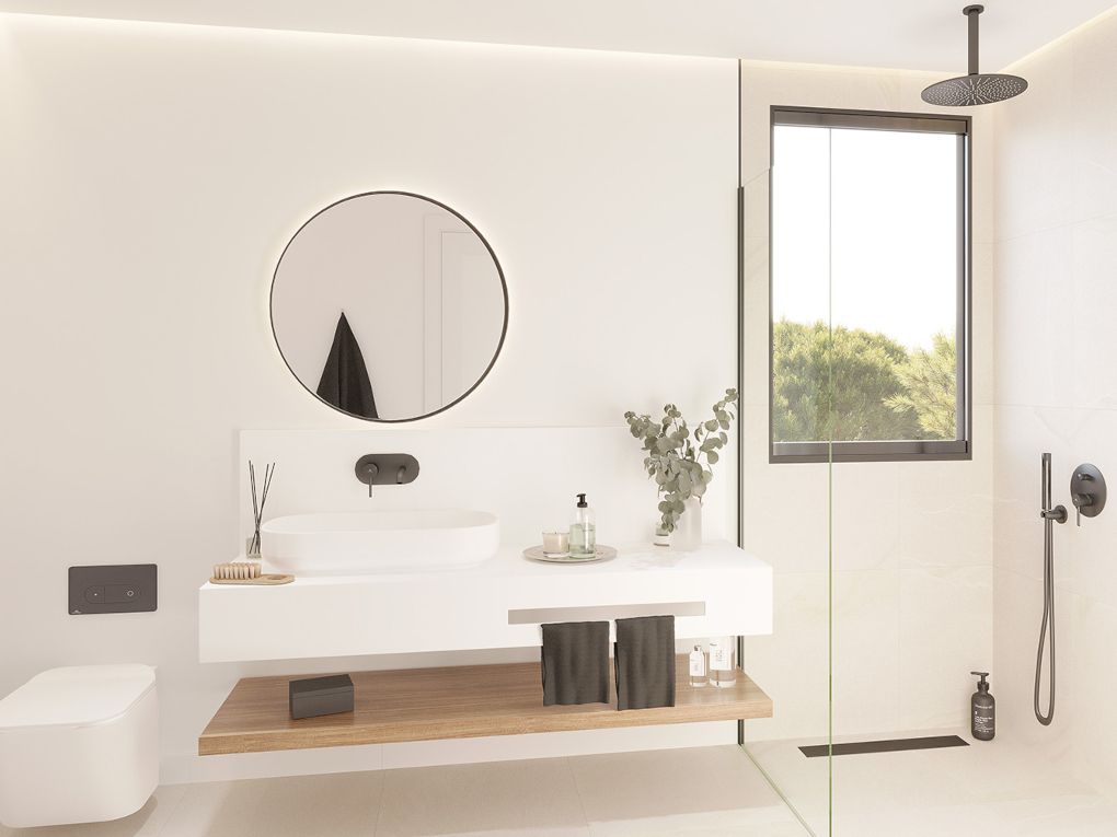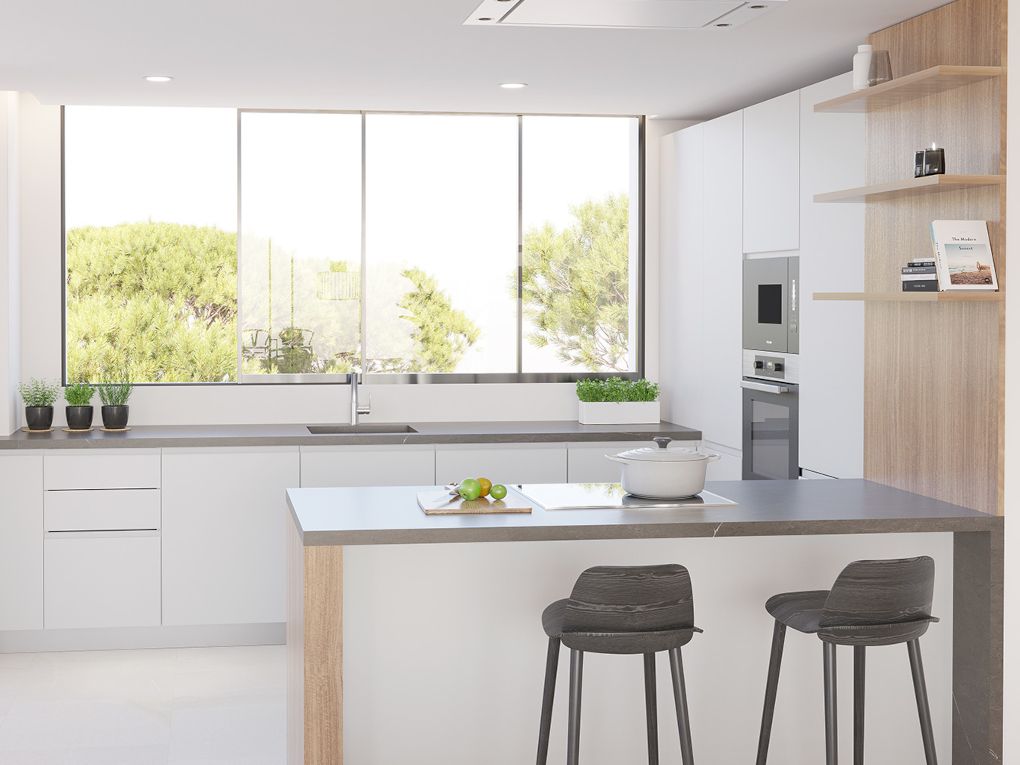 In Son Armadams, a quiet district of the island's capital Palma, only a few minutes' walk from the beautiful Bellver Castle and the extensive green park surrounding it, the small modern residential complex "Bellver Oaks" is being built with 6 apartments and a penthouse as well as an inviting pool area. The port of Palma, the trendy Santa Catalina district and the city centre are within walking distance. Various shops and restaurants are right at the doorstep. Beautifully landscaped outdoor areas in this project offer every resident the opportunity to enjoy the year-round mild island climate to the fullest in their own property. Bellver Oaks has two apartments per floor, except on the third floor, where a spacious penthouse apartment extends over the entire level. All units have open and modern layouts with 2 or 3 bedrooms, 2 bathrooms and a south-facing terrace. The penthouse also offers a spacious roof terrace with a private pool and magnificent views of Bellver Castle. The extras include: Floor-to-ceiling windows, underfloor heating, hot/cold air conditioning, porcelain tiles and high-quality kitchens by Porcelanosa with built-in Neff appliances, indirect lighting, and many more. The purchase price also includes one parking space (penthouse two) per apartment and a storage room in the underground garage. Bellver Oaks offers you all the comfort of a modern new development combined with all the advantages that the island capital Palma has to offer.