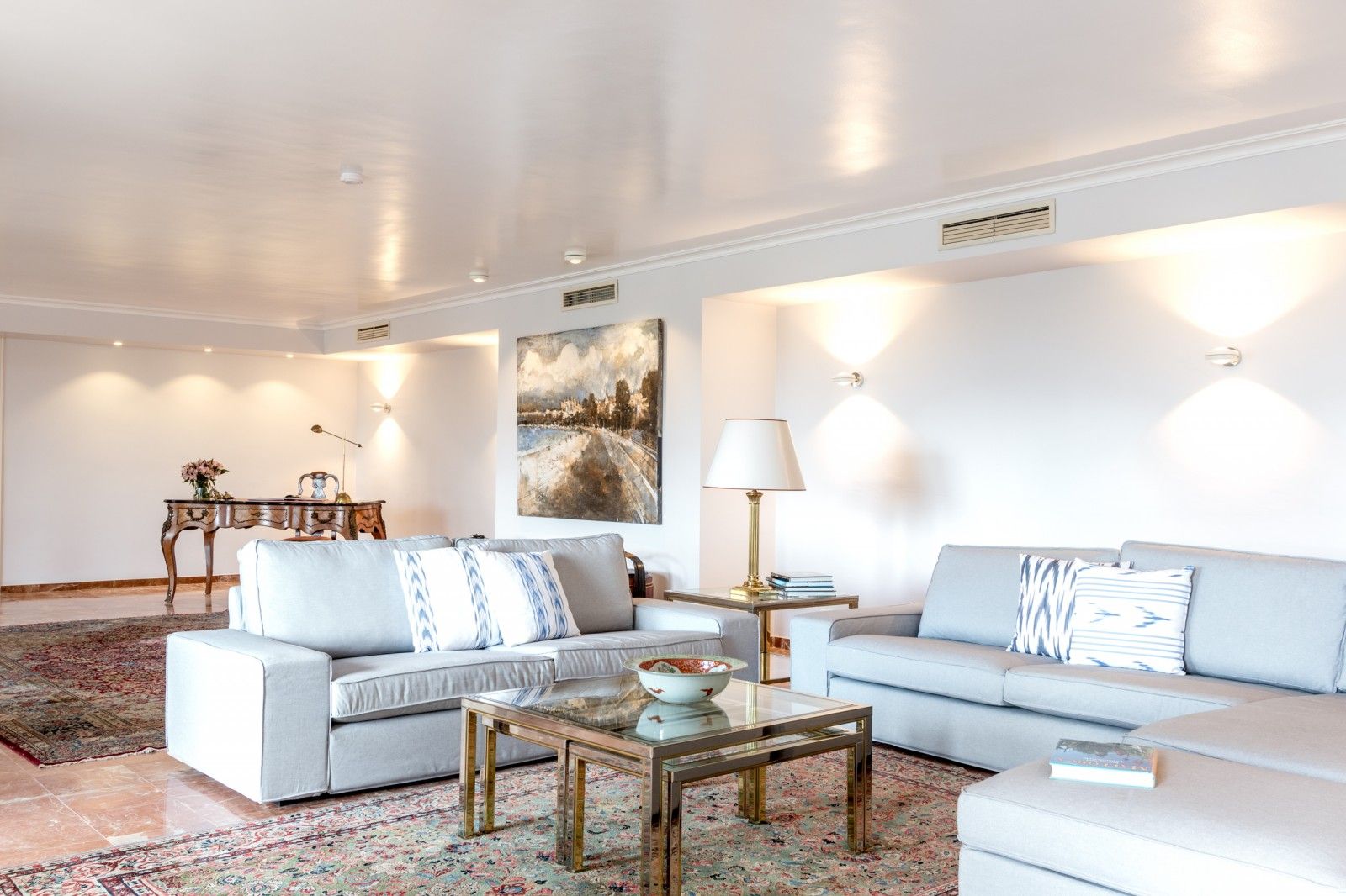 • Luminoso y amplio salón amueblado con gusto, sofás elegantes, chimenea y gran televisión.