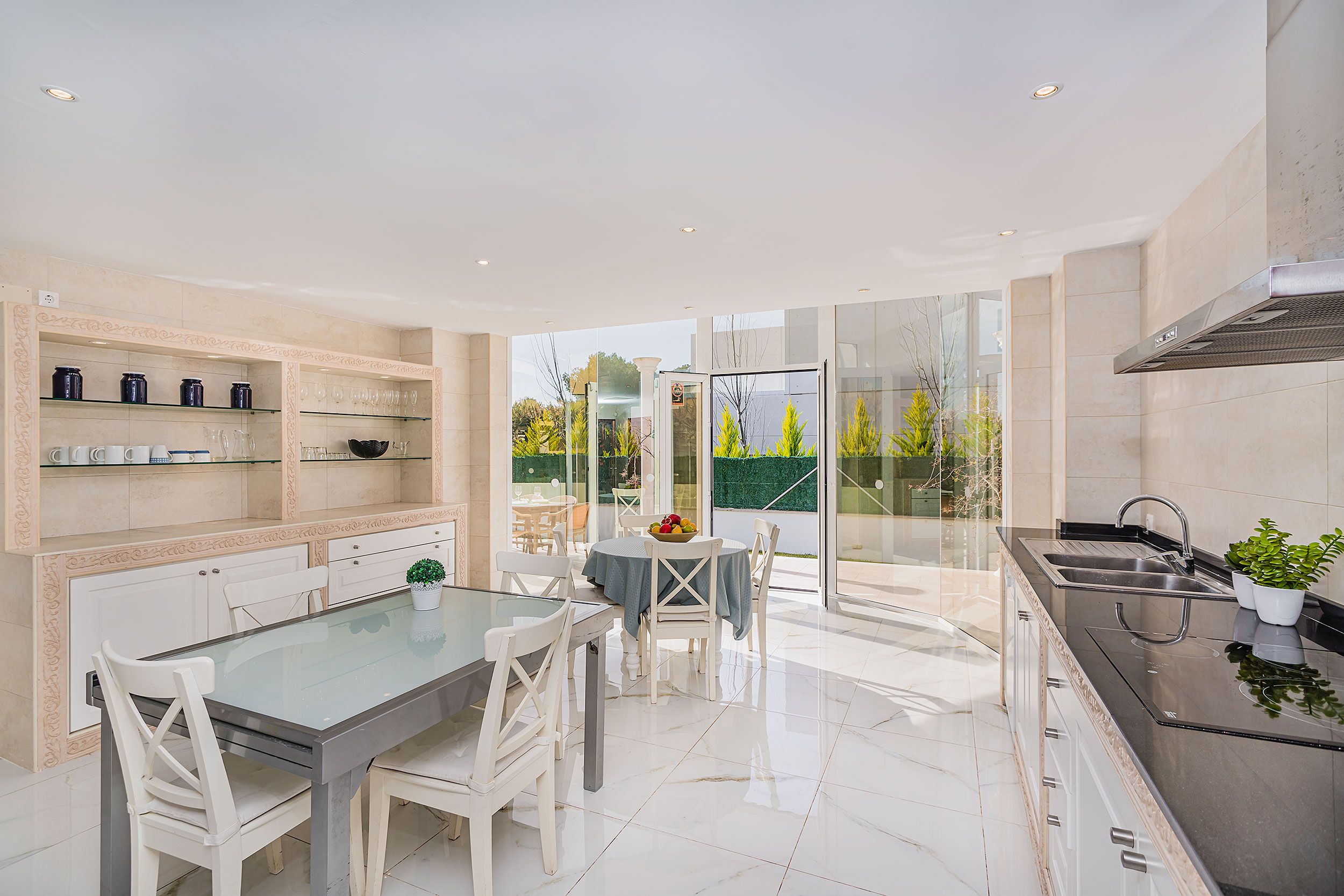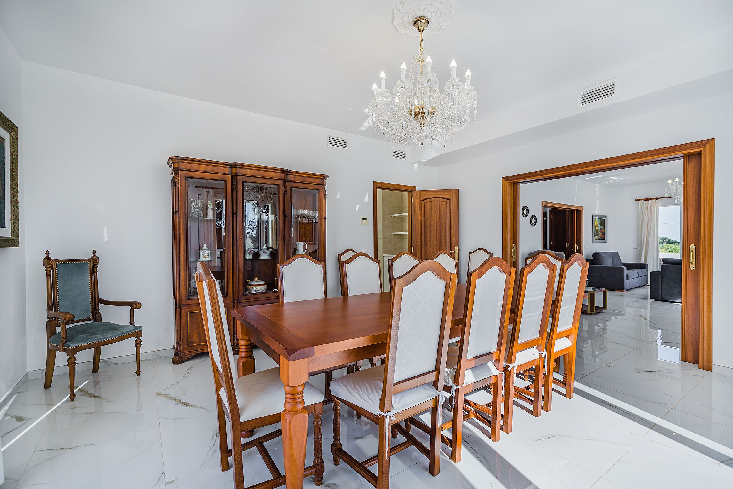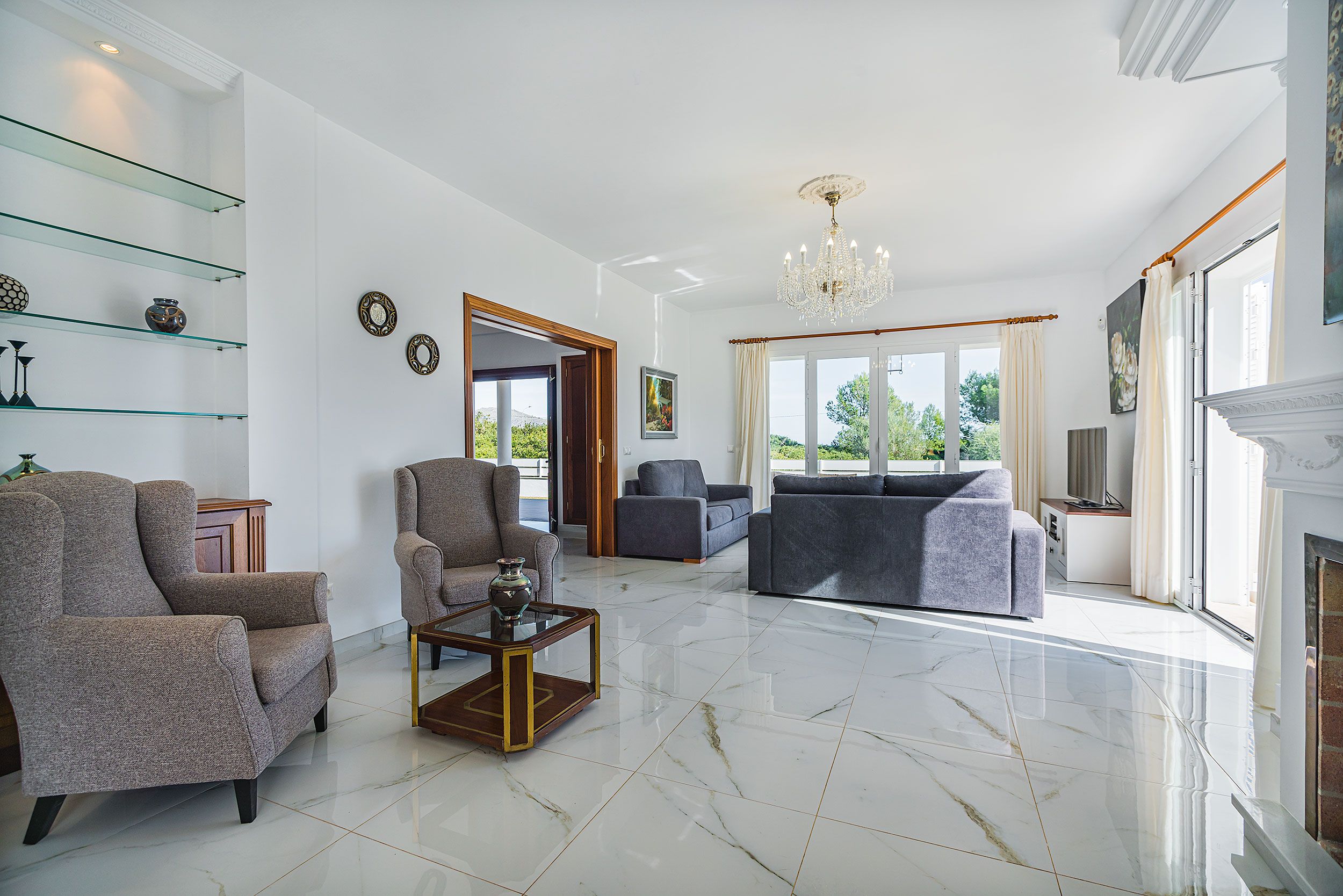 Suelos de mármol y espacios interiores luminosos que transmiten amplitud y elegancia.