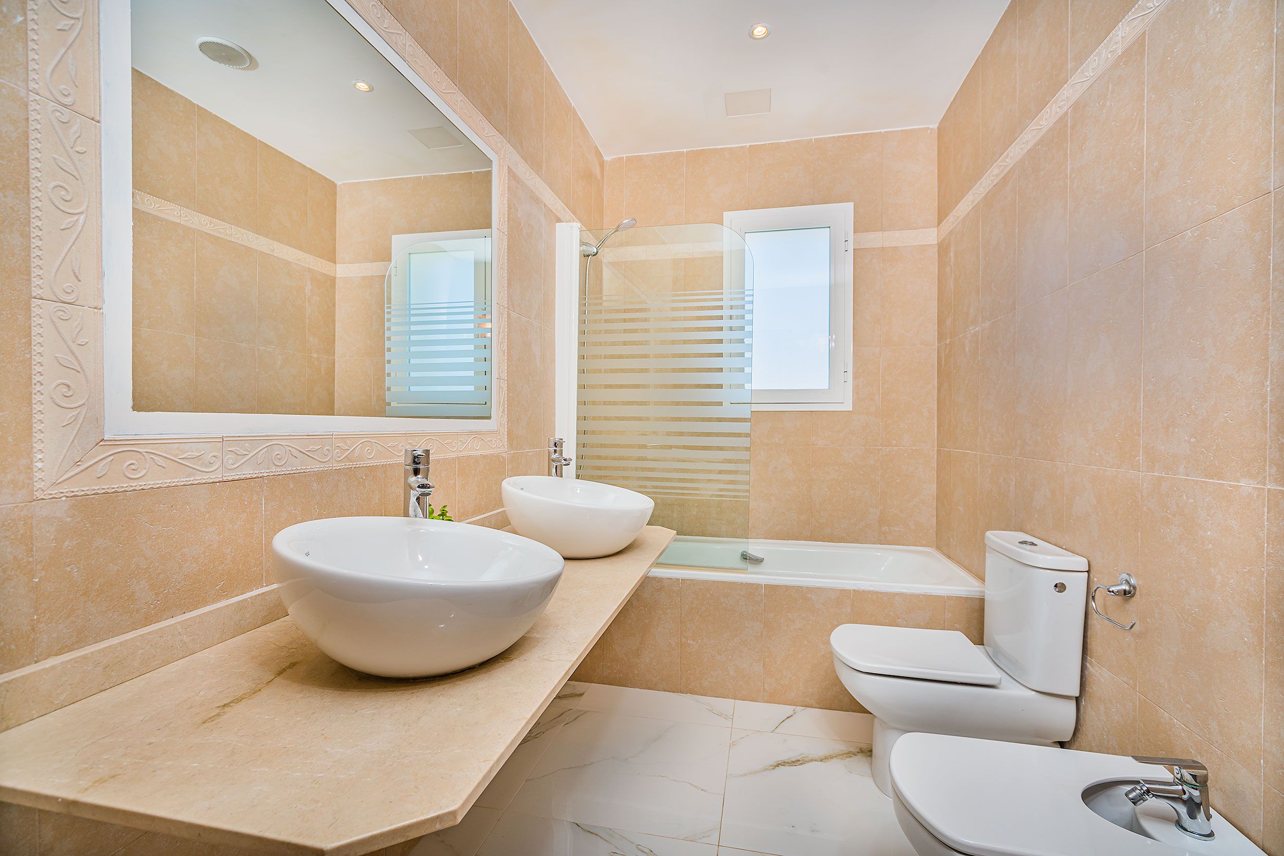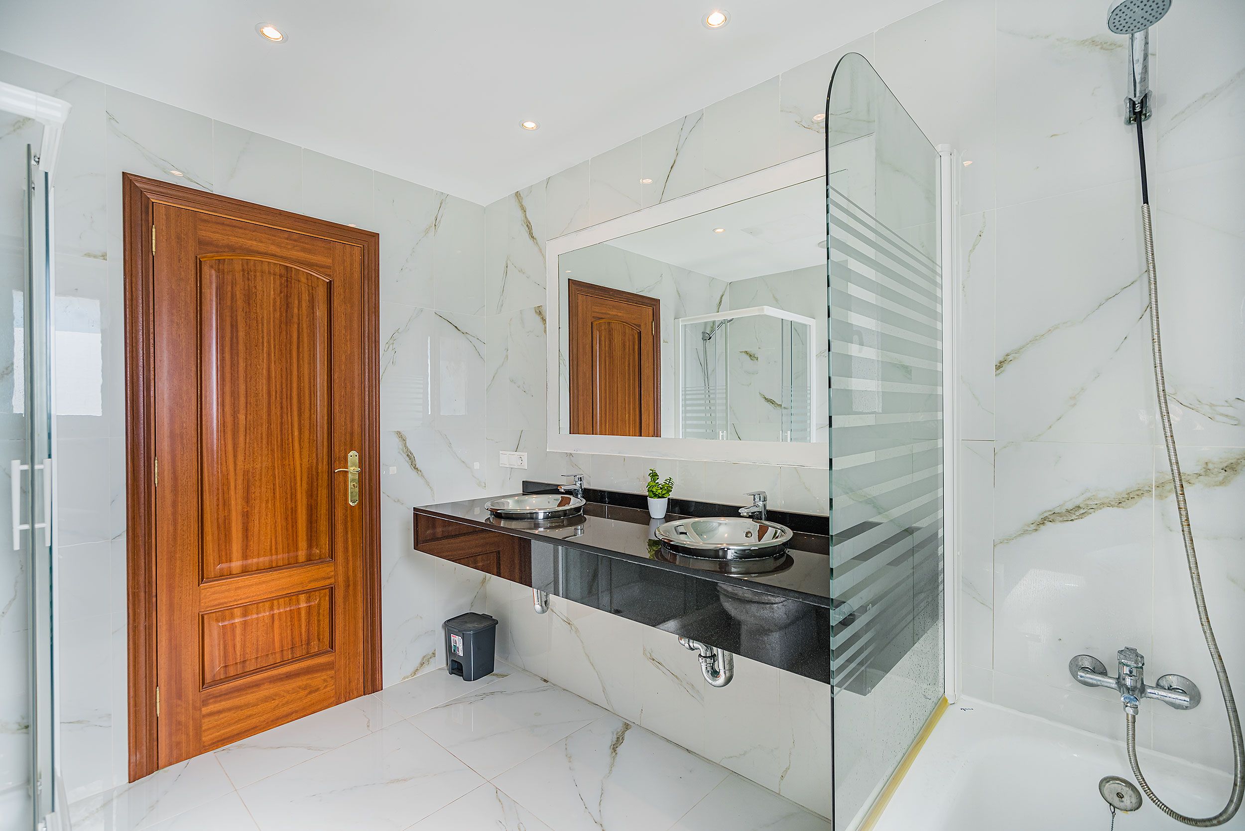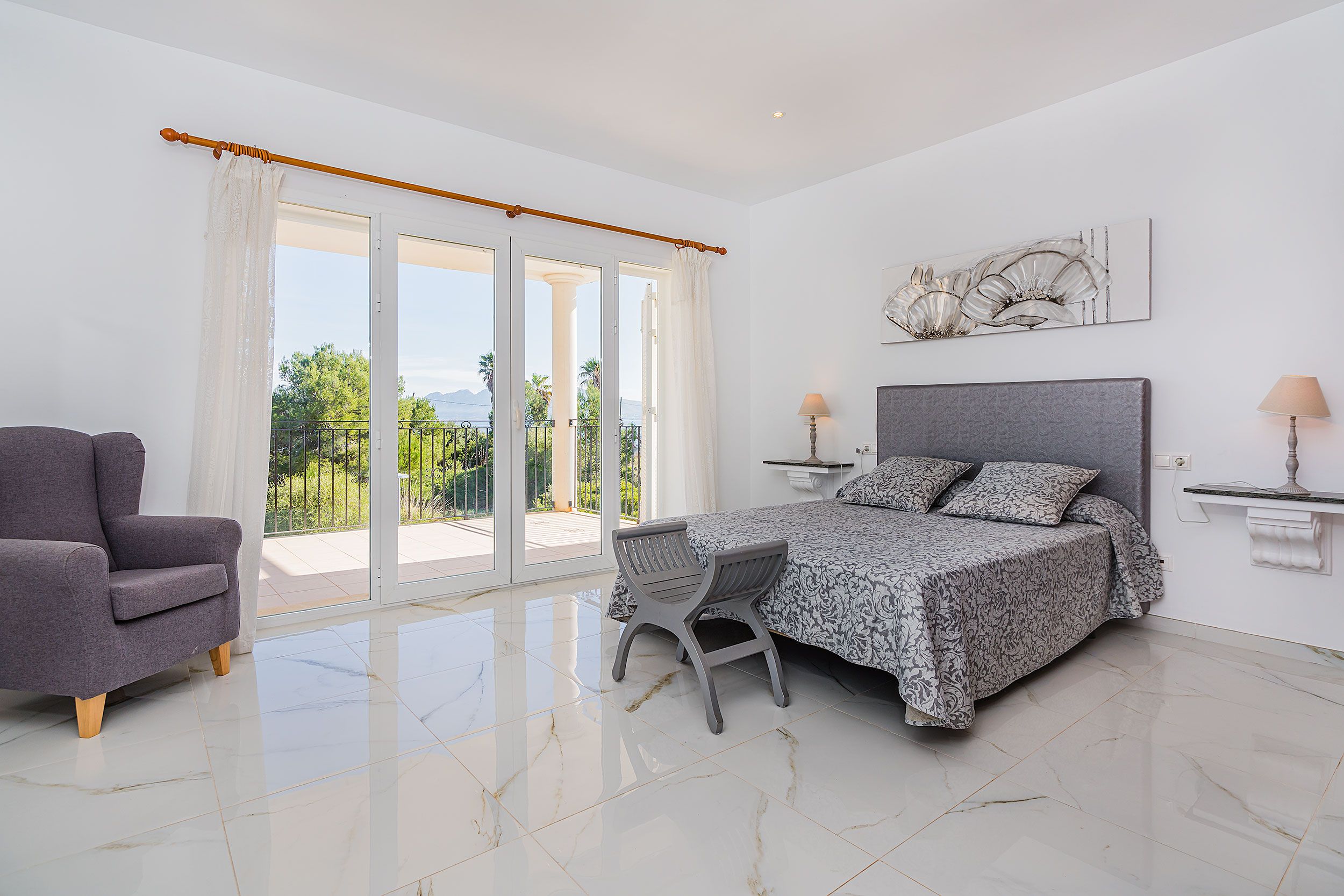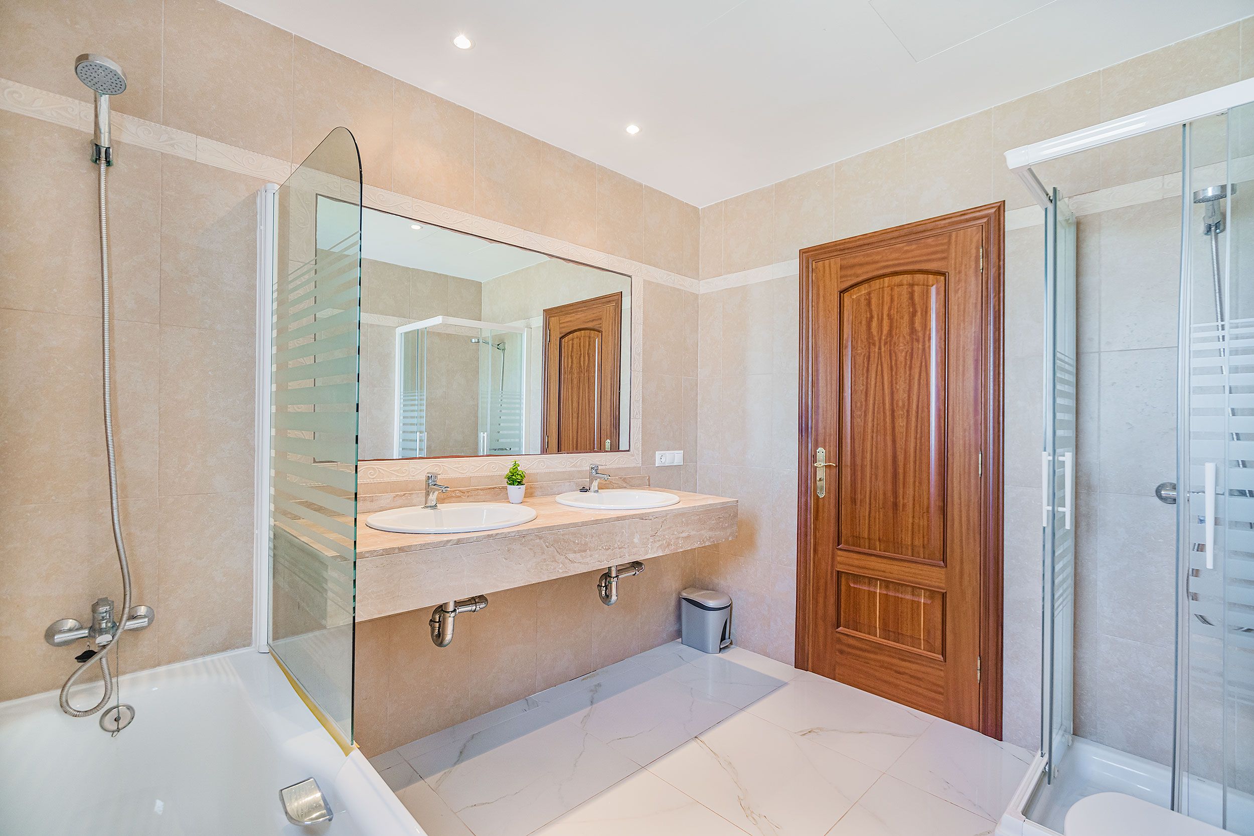 Suelos de mármol y espacios interiores luminosos que transmiten amplitud y elegancia.