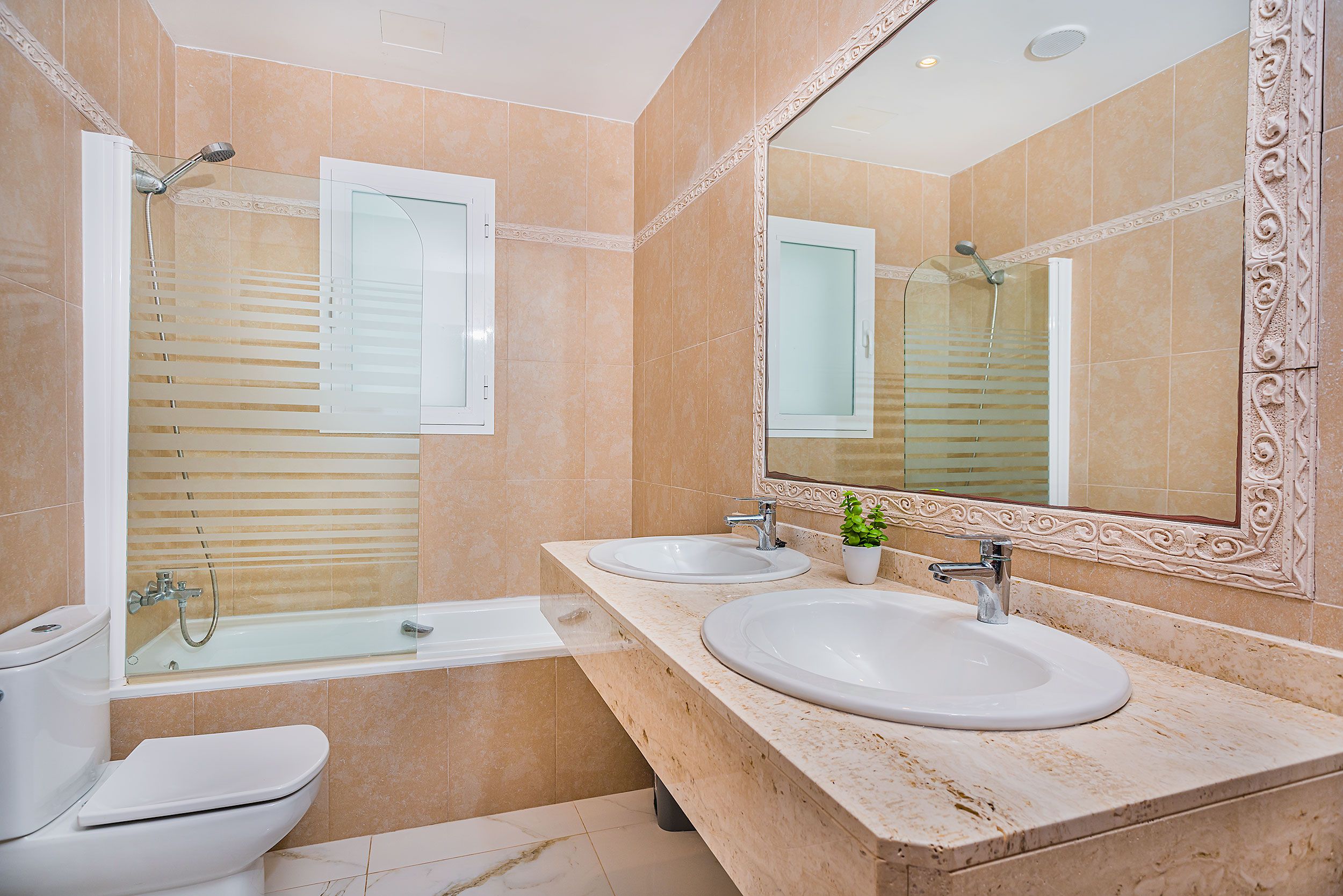 Dos baños completos, uno de ellos en suite.