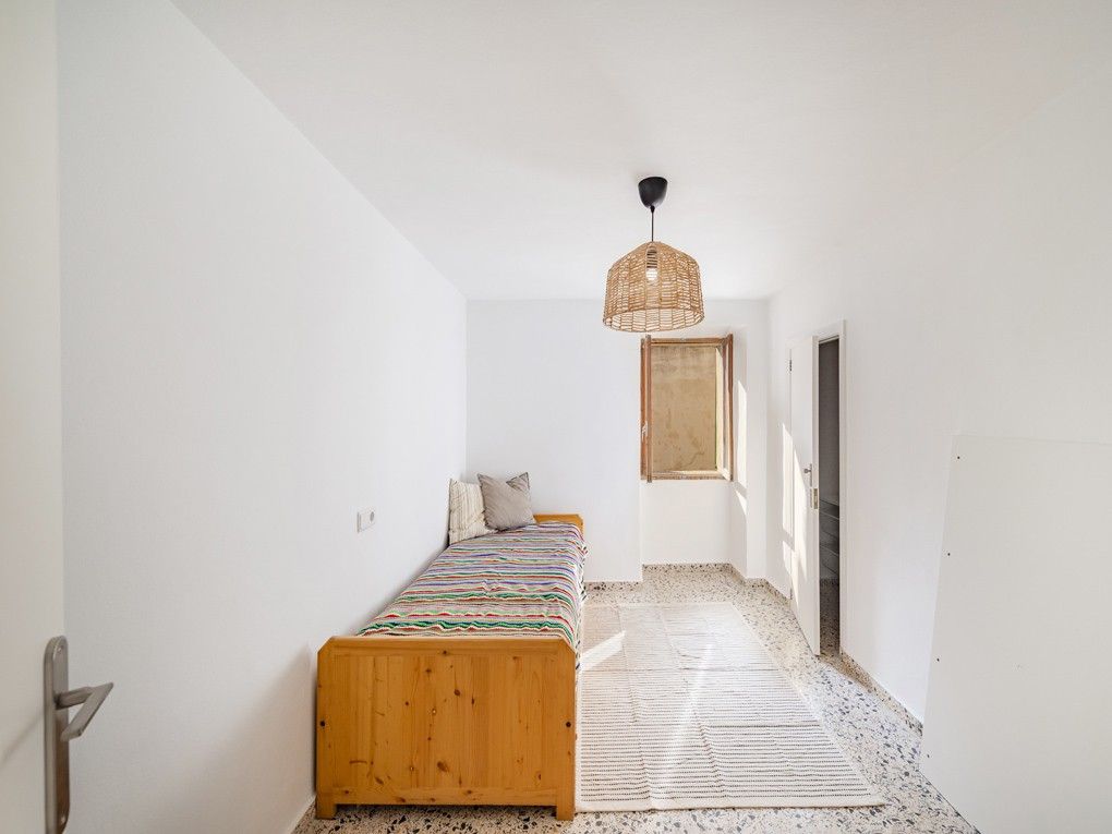 El apartamento incluye un baño con ducha, accesible tanto desde el pasillo como desde el dormitorio principal, lo que añade comodidad. El dormitorio principal se abre a una pequeña terraza privada, ideal para disfrutar del aire fresco.
