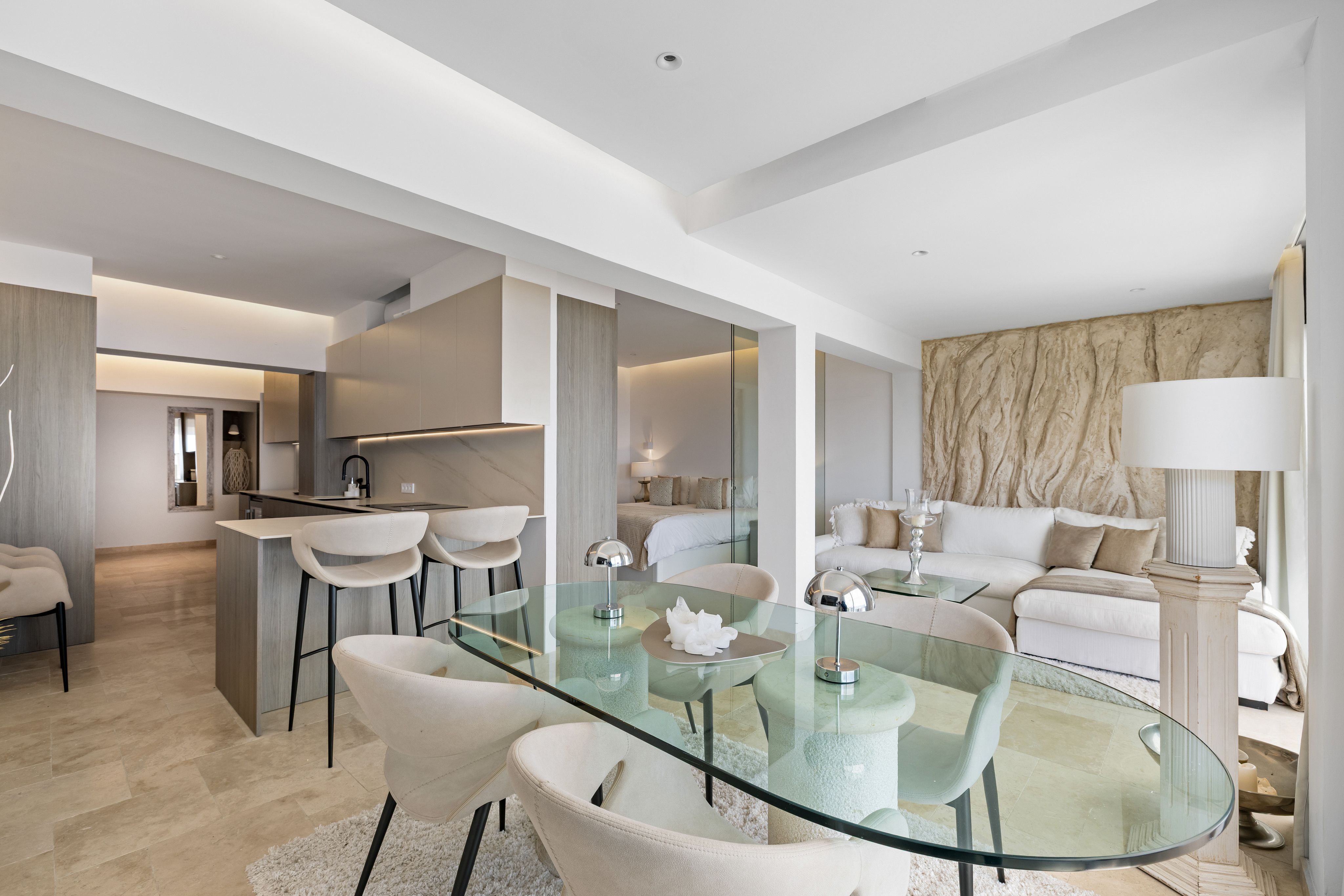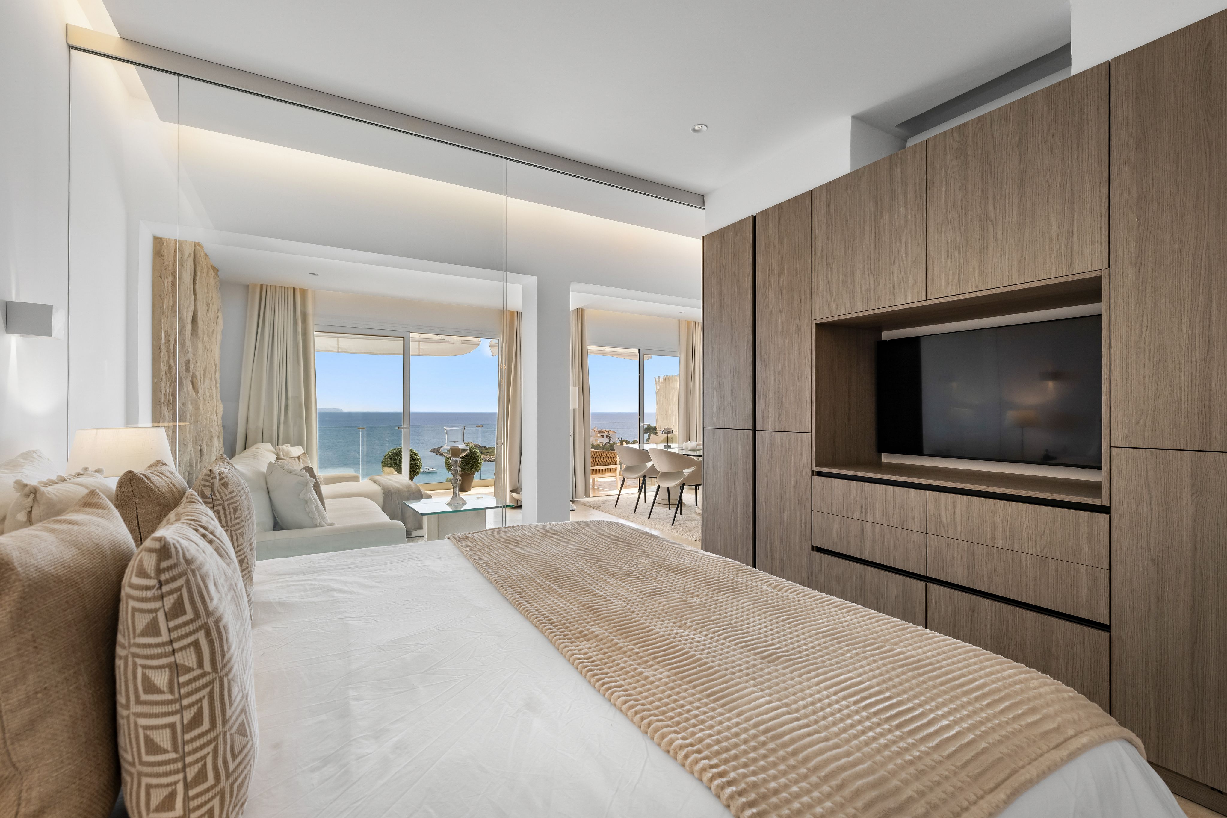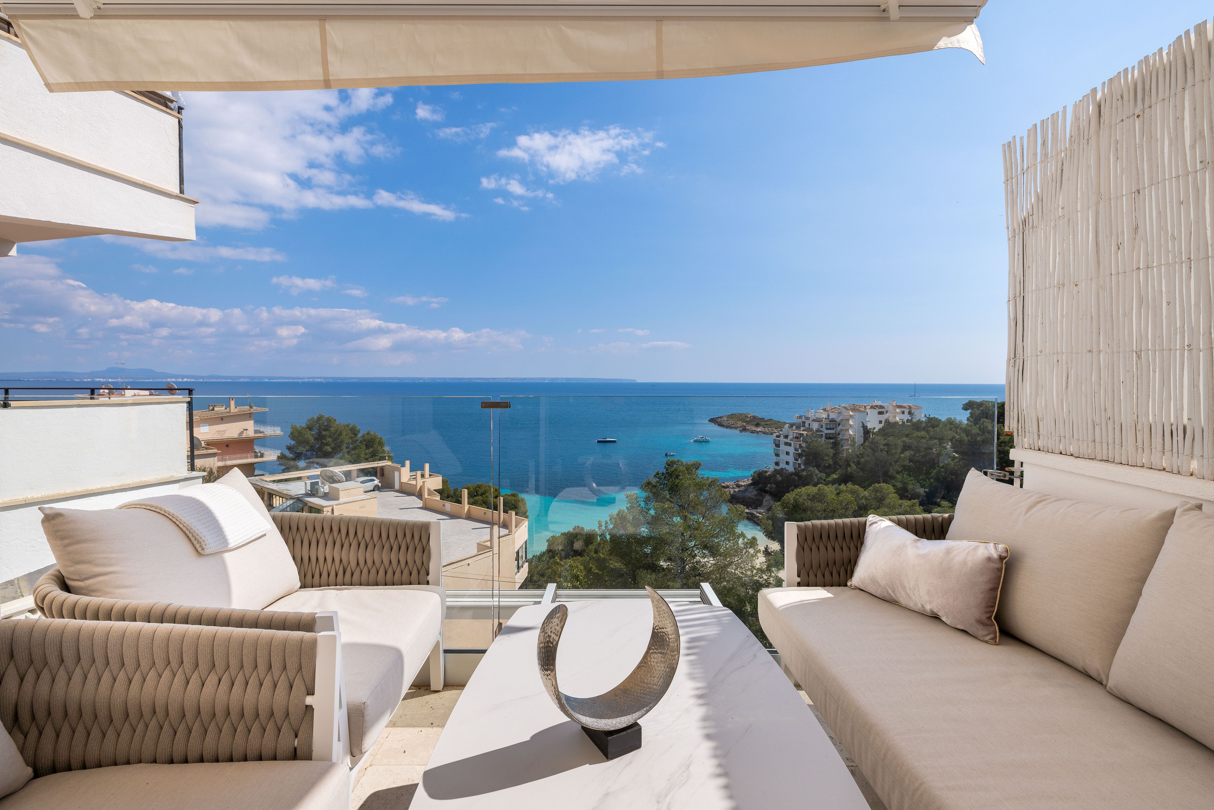 Esta preciosa propiedad se encuentra en una comunidad con pocos vecinos en la codiciada zona de Illetas, justo al lado de Puerto Portals, uno de los enclaves residenciales más exclusivos y demandados del suroeste de Mallorca. La propiedad ofrece dos dormitorios y dos baños y disfruta de una privilegiada orientación sur, lo que permite que la vivienda se inunde de luz natural durante todo el día. La terraza privada, con vistas abiertas al mar y a la bahía, crea el escenario perfecto para relajarse o disfrutar de inolvidables atardeceres sobre el Mediterráneo. El interior ha sido concebido con una estética contemporánea y elegante, donde el salón-comedor y la cocina se integran en un único espacio abierto, sofisticado y funcional. Cada elemento ha sido cuidadosamente seleccionado para crear una atmósfera refinada y acogedora. La vivienda ha sido completamente renovada en 2025 con materiales de primera calidad, un diseño atemporal y un gusto extraordinario. Destacan los suelos de piedra natural, que aportan carácter y elegancia a la propiedad. Entre sus prestaciones adicionales se incluyen aire acondicionado frío/calor para un confort óptimo durante todo el año, así como una plaza de aparcamiento exterior situada en el edificio anexo. Una propiedad excepcional que combina diseño, calidad y una ubicación privilegiada junto al mar, ideal como residencia permanente o como segunda vivienda en una de las zonas más deseadas de la isla.