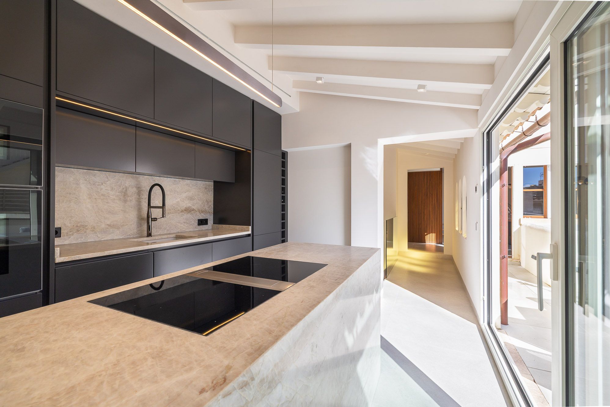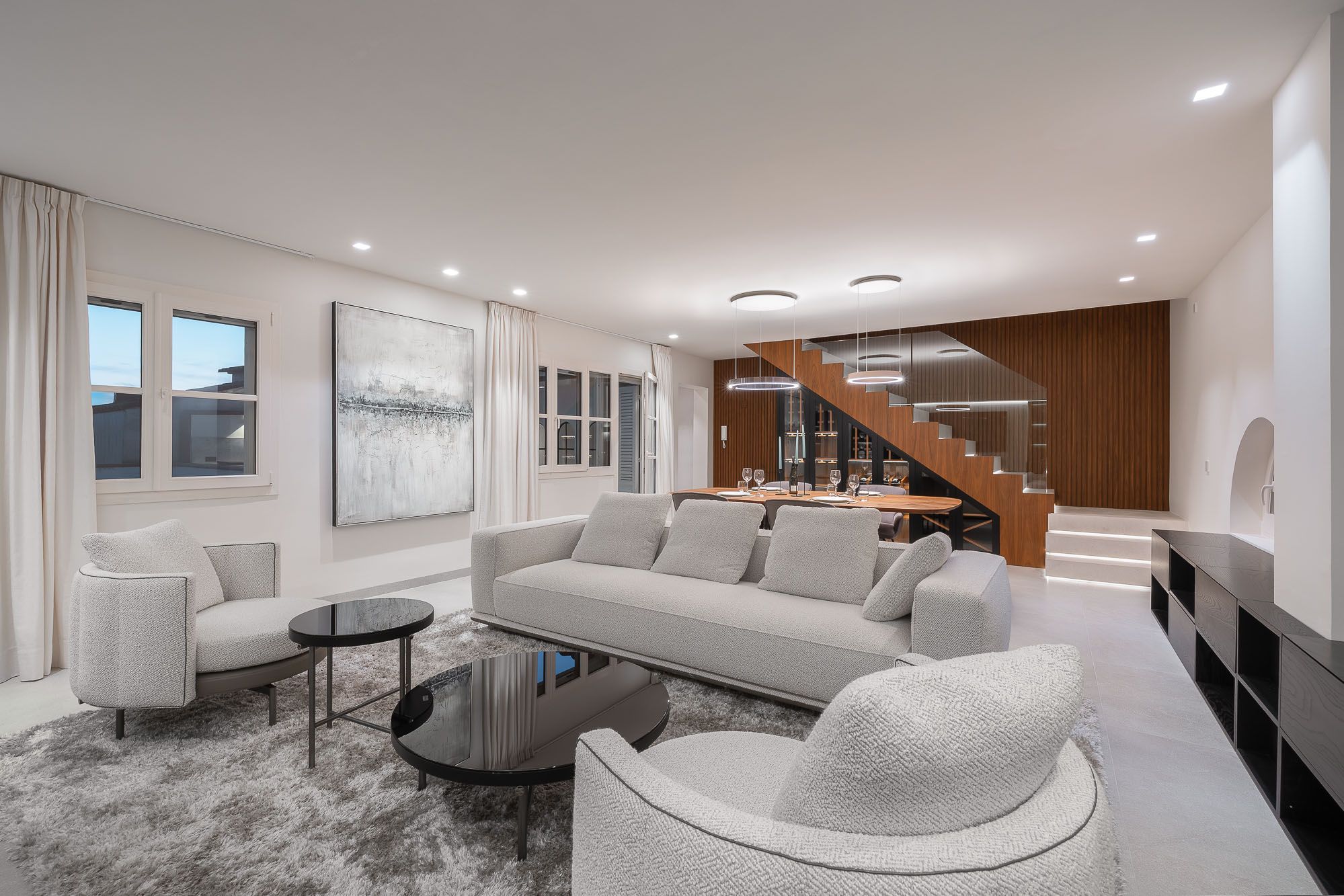 Este singular ático dúplex con dos terrazas privadas ha sido recientemente reformado y está situado en una calle tranquila a pocos metros del ayuntamiento de Palma. Detrás de un gran portal de madera en este hermoso edificio del casco antiguo encontramos un patio empedrado tradicional y una escalera exterior. Un ascensor conduce directamente al piso en la última planta. El ático tiene dos terrazas. Una terraza en la planta baja es accesible desde la cocina y el salón. Desde la terraza privada de la azotea con piscina (opcional), se puede echar un vistazo al mar, pasando por la catedral y sobre los tejados del casco antiguo. Tres dormitorios ofrecen espacio para la familia y los amigos. El ático, elegantemente reformado, está amueblado con materiales de la más alta calidad e inundado de luz. El ascensor, la plaza de aparcamiento y las terrazas privadas completan a la perfección esta oferta excepcional y única.